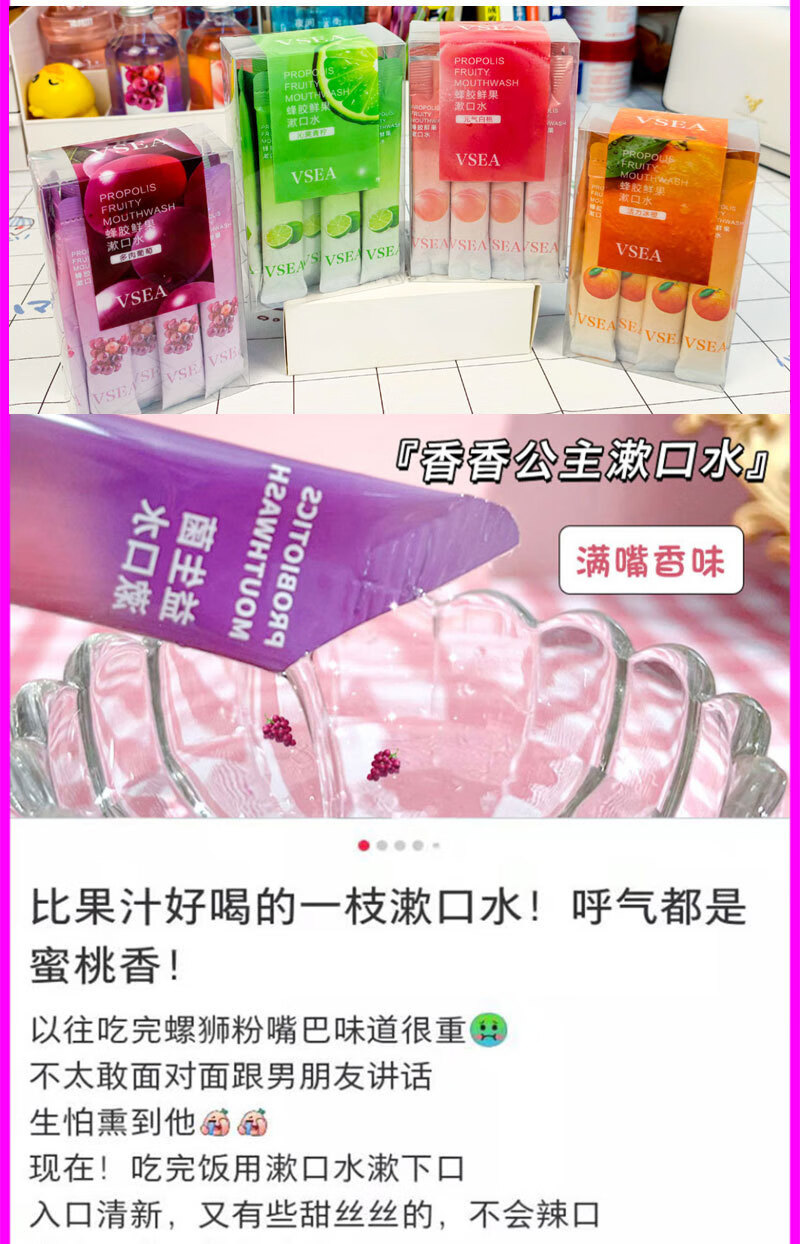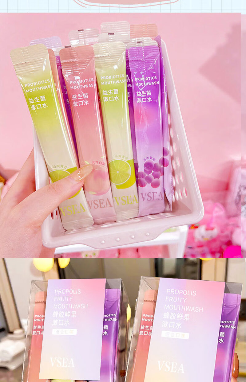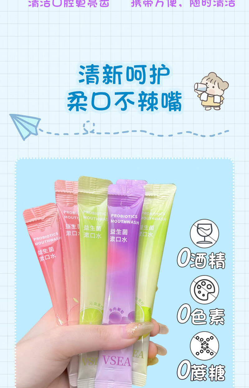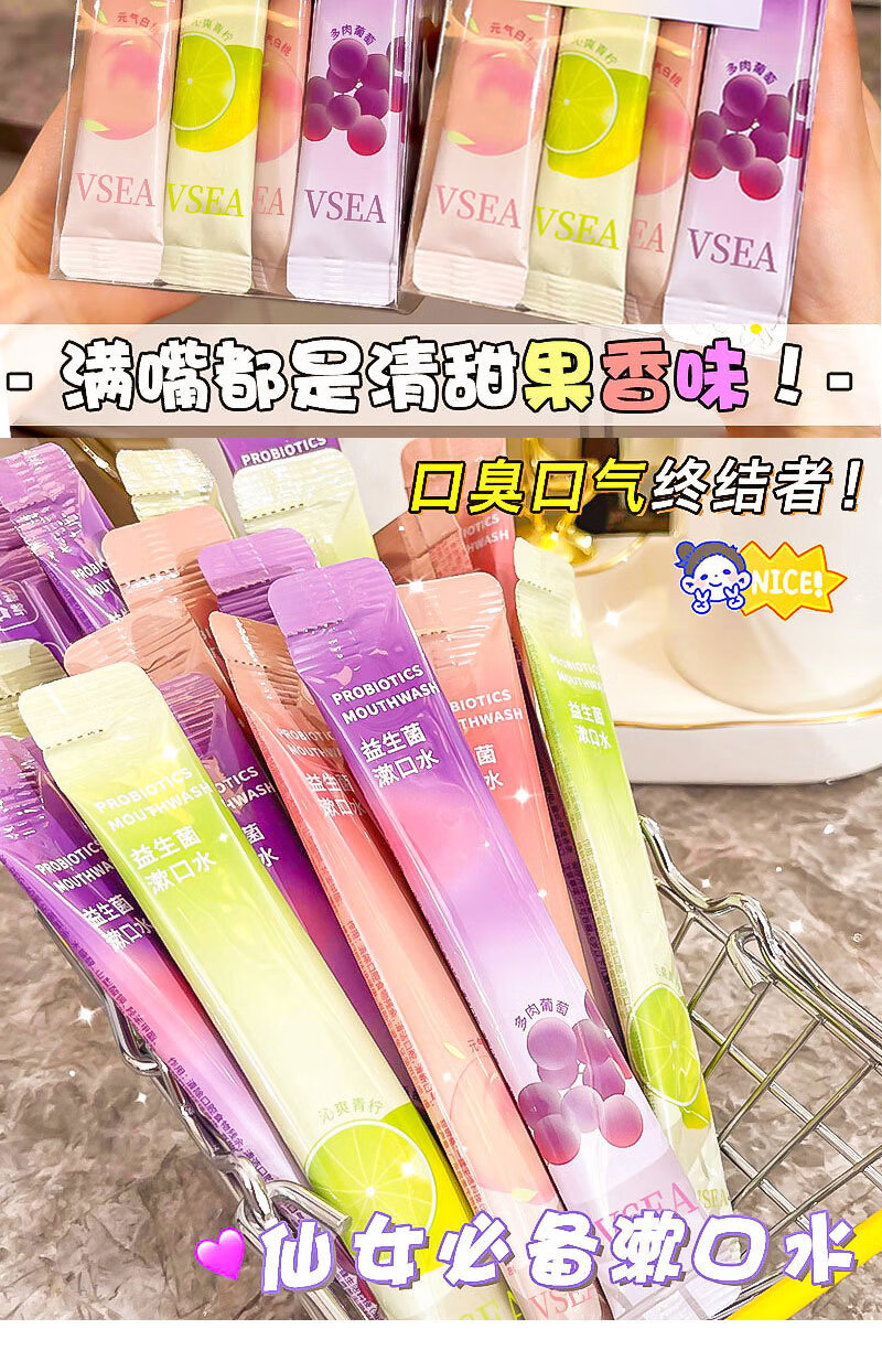 VSEA益生菌漱口水冰凉果香清洁清新水蜜涑口水桃除口臭便携鲜果 冰橙鲜果漱口水 三盒装(60支)