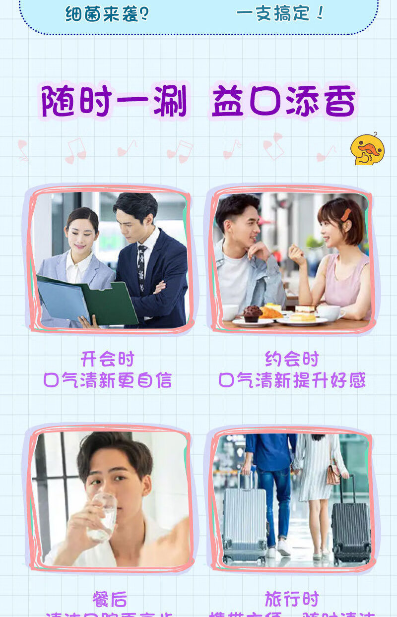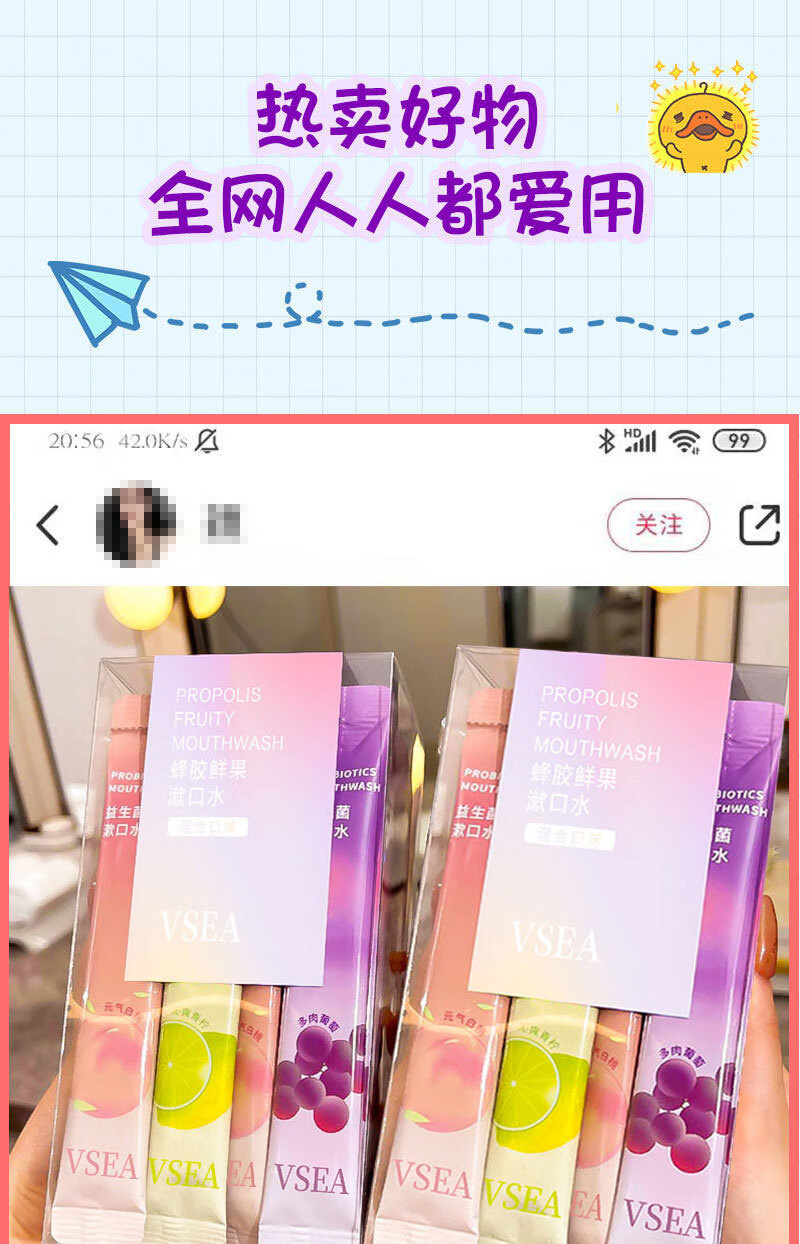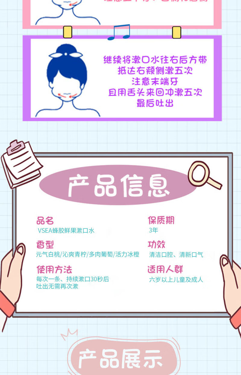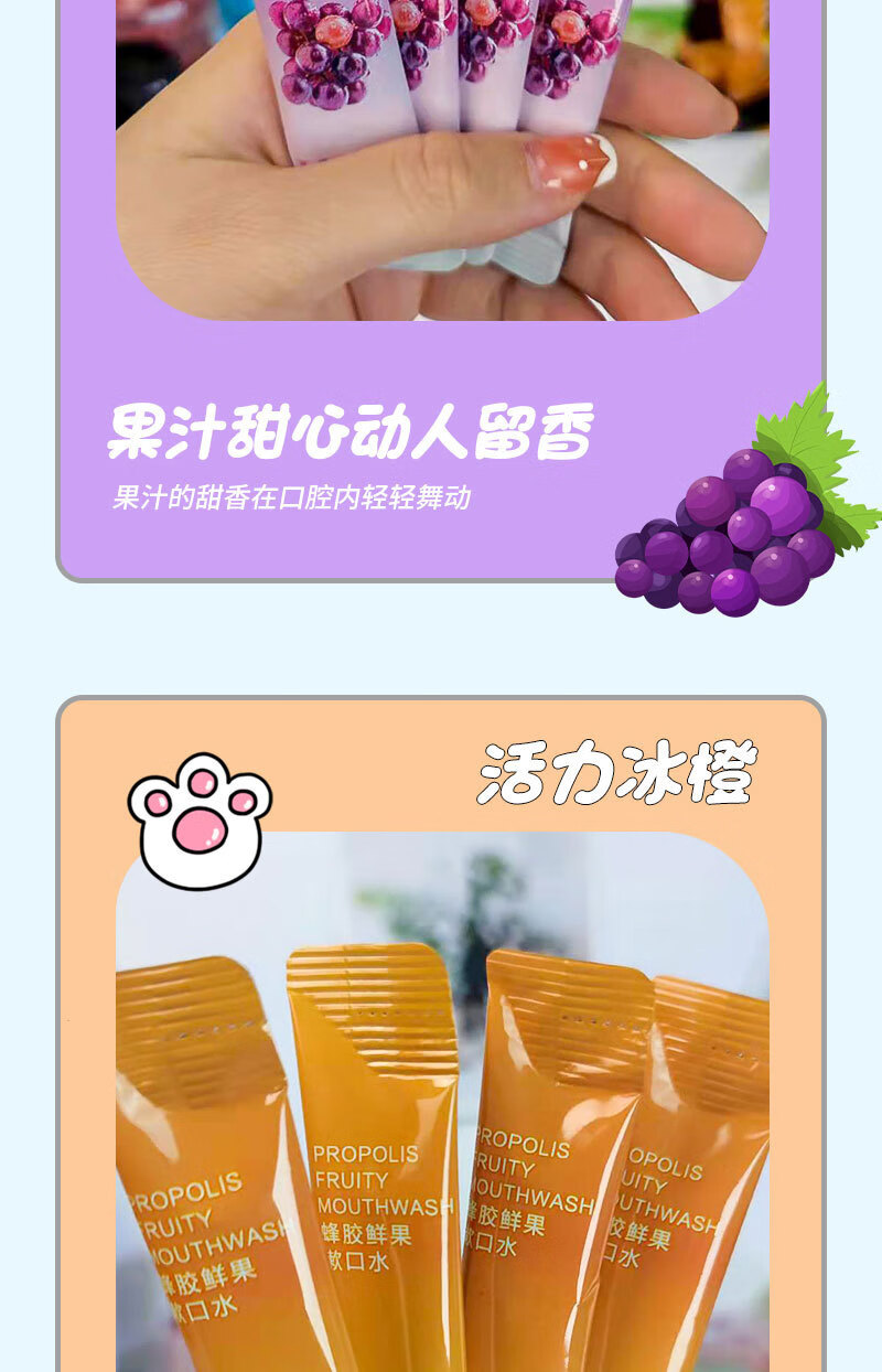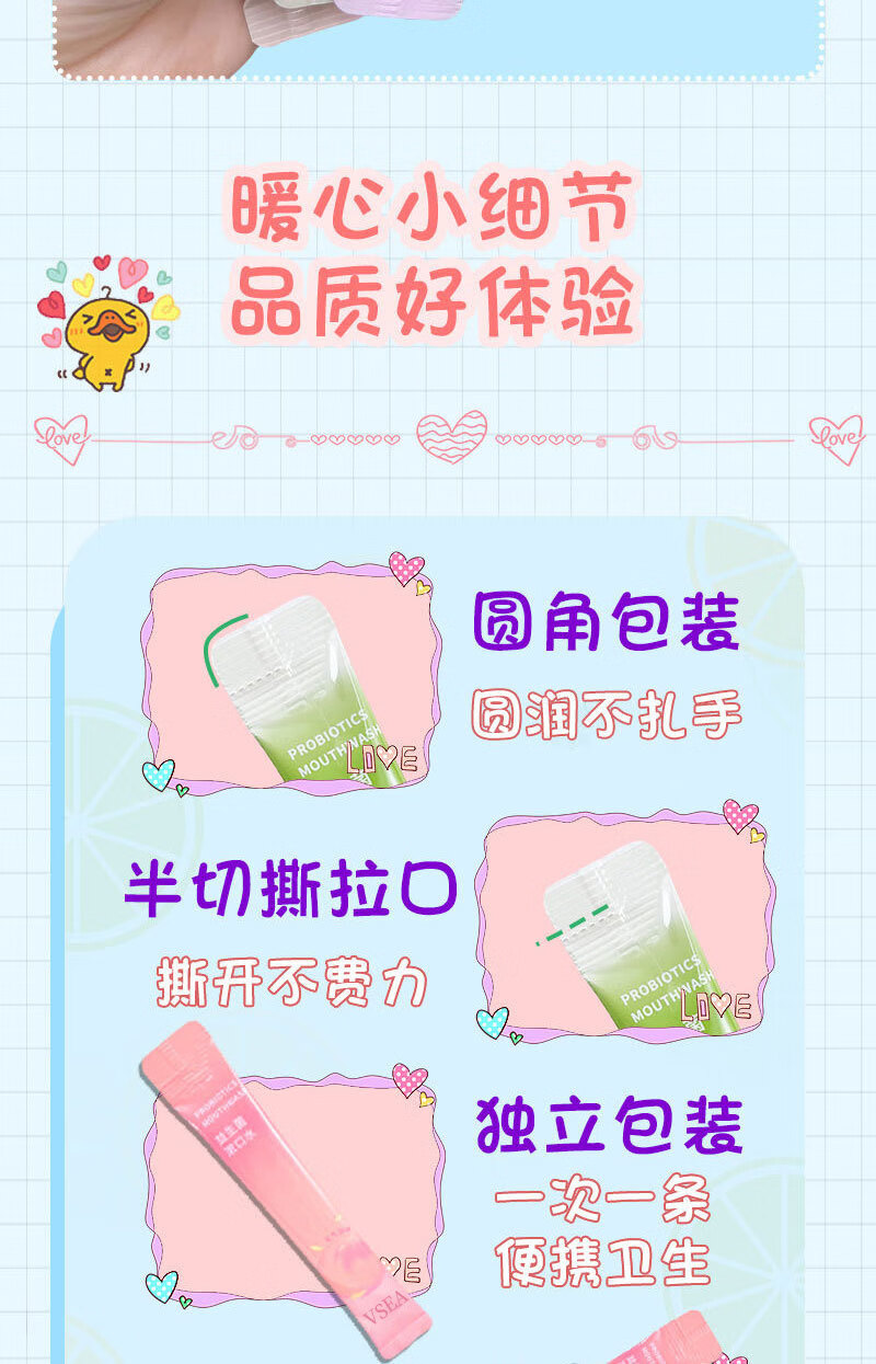 VSEA益生菌漱口水冰凉果香清洁清新水蜜涑口水桃除口臭便携鲜果 冰橙鲜果漱口水 三盒装(60支)