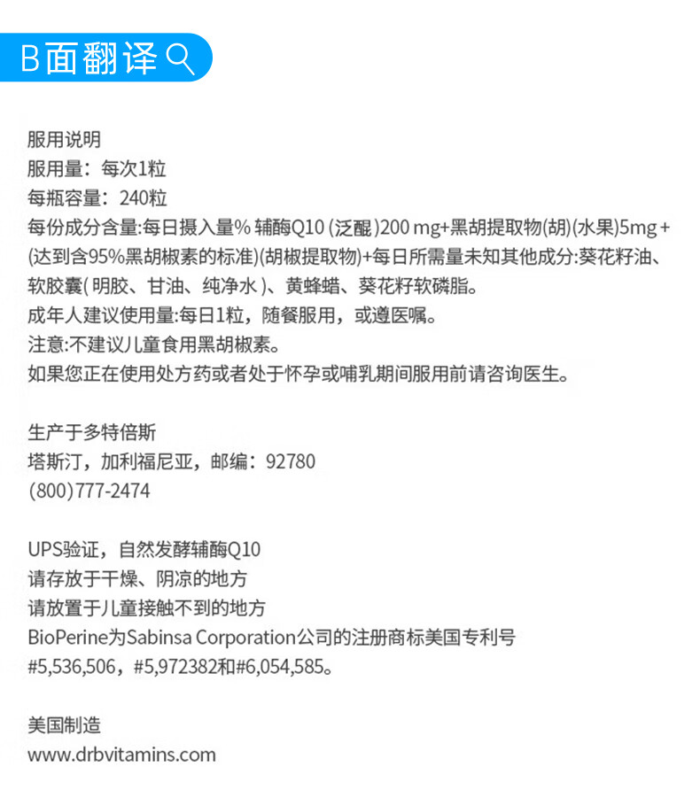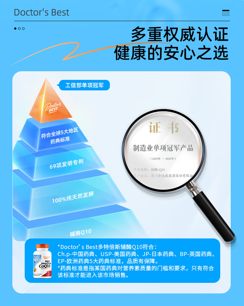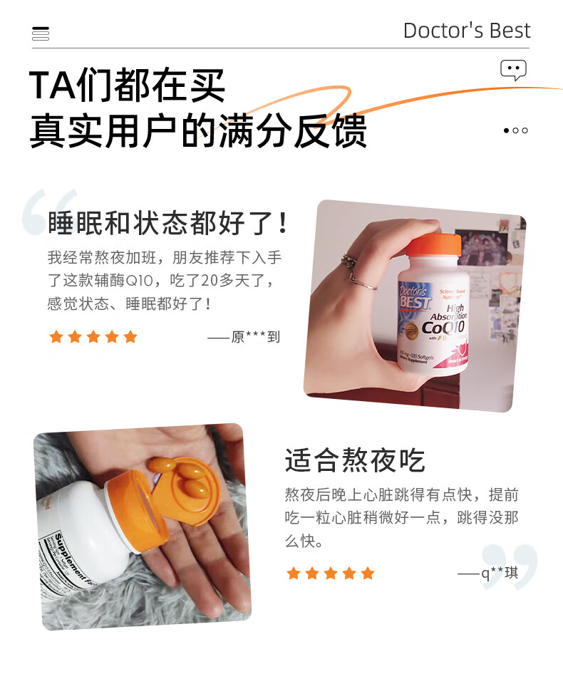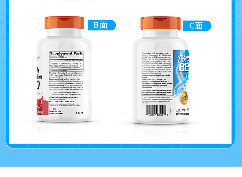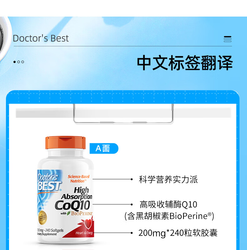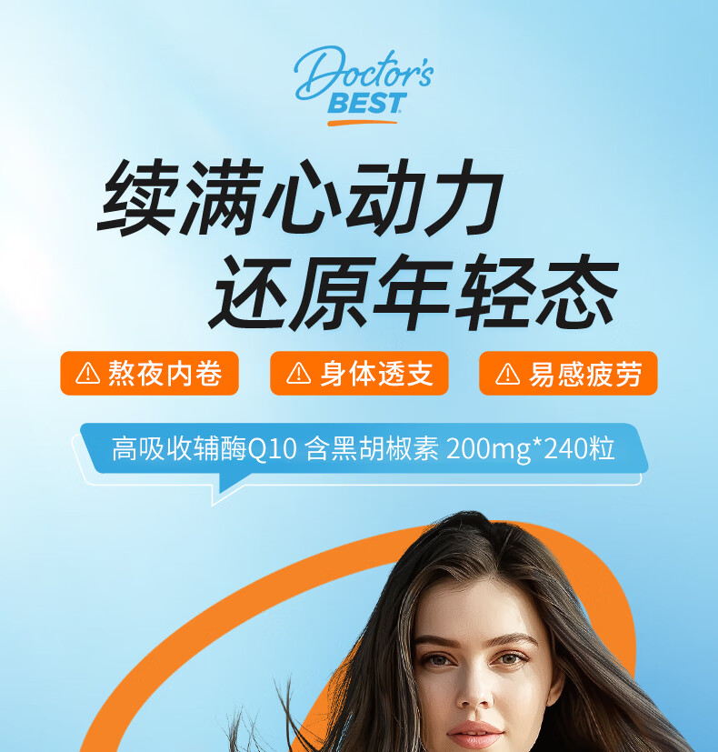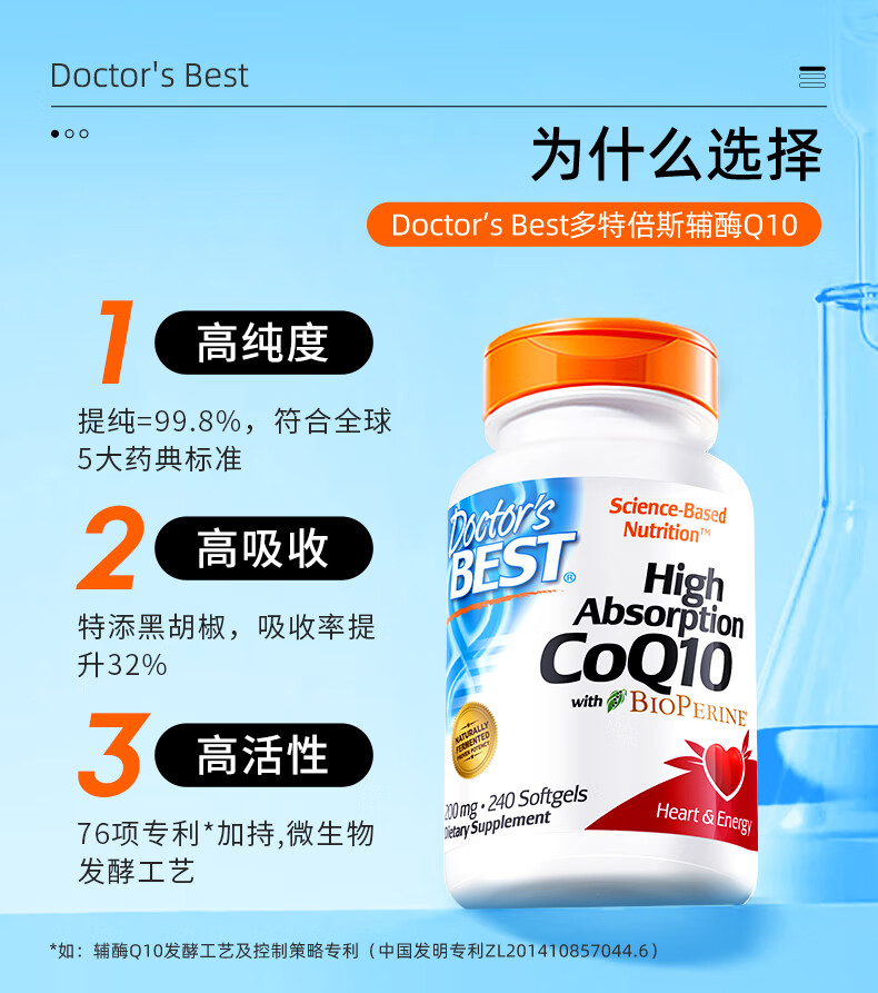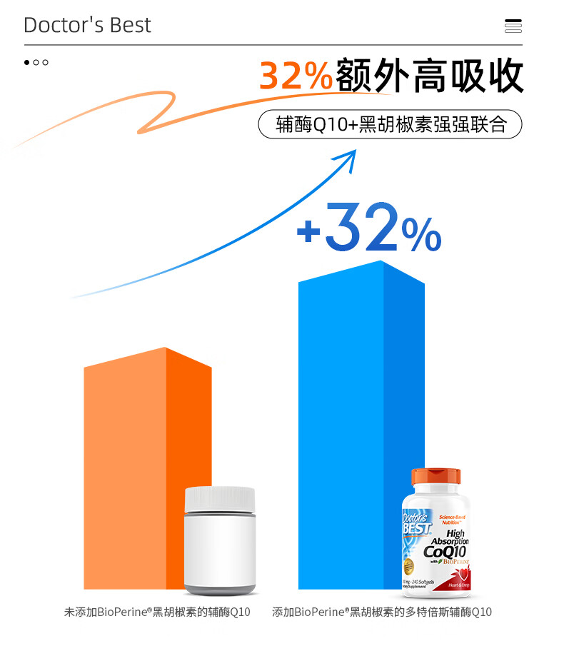 Doctor's best辅酶Q10软胶囊200mg*240粒含黑胡椒护心脏备孕提32%吸收 多特倍斯