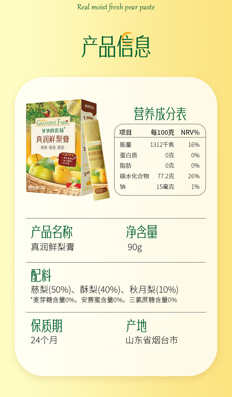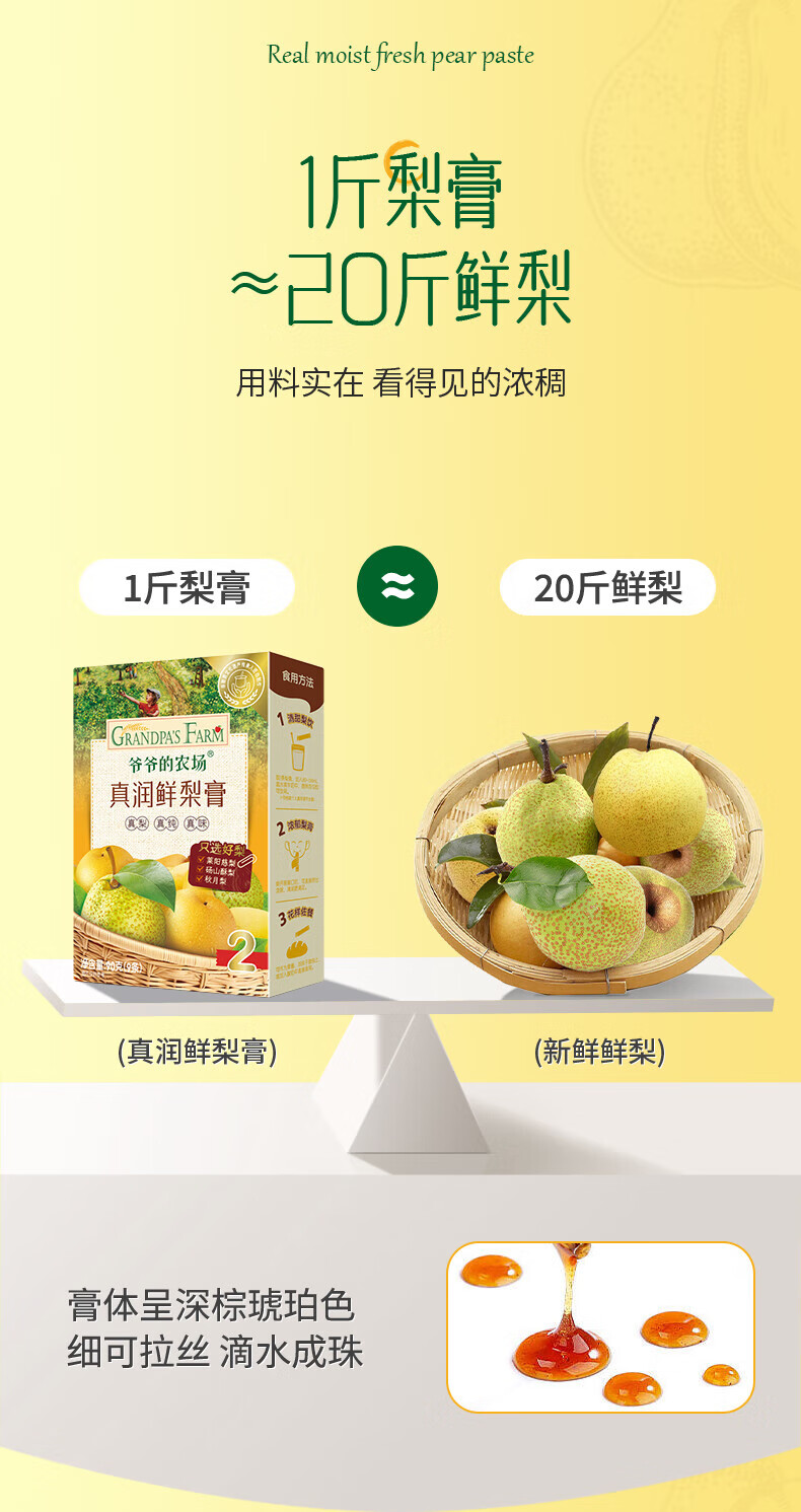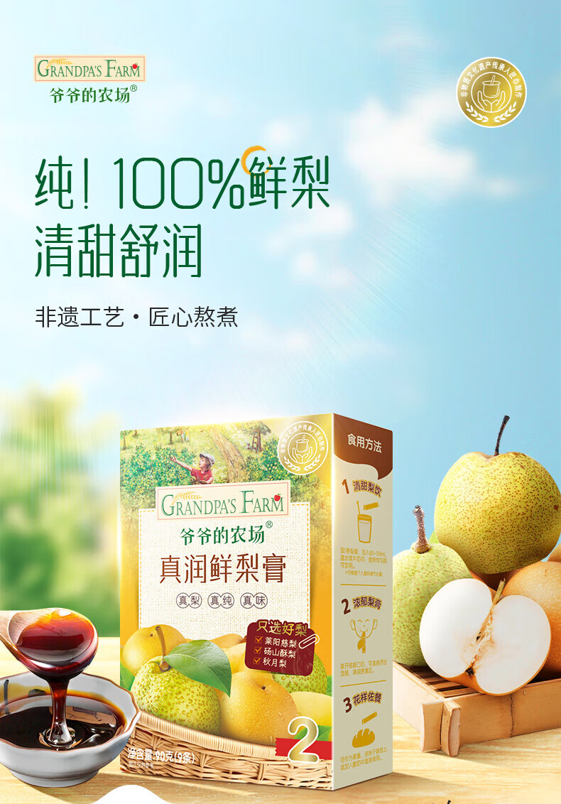 爷爷的农场进口菊花晶清清宝降火奶粉 秋梨膏糖0添加剂清火润喉宝宝儿童 【四季常润】100%鲜梨膏 90g*1盒