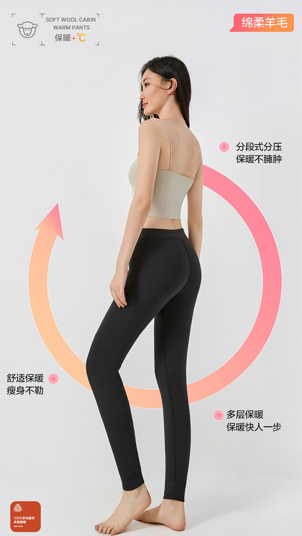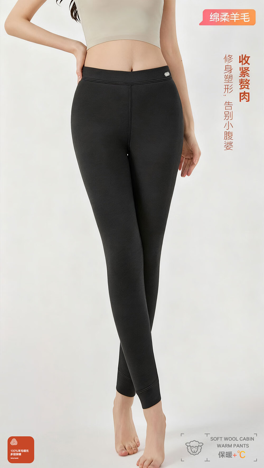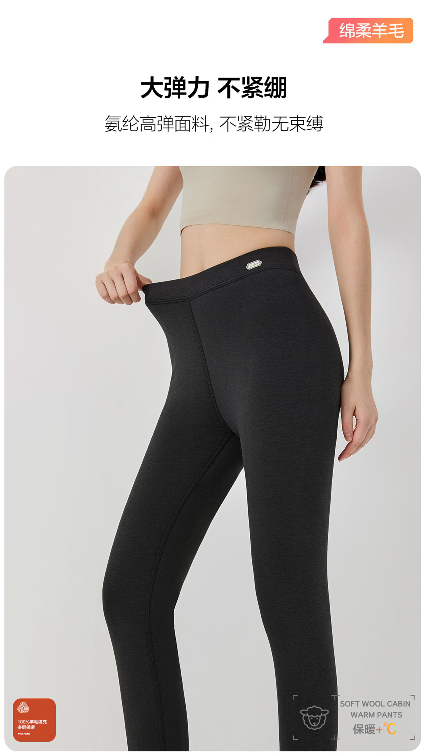 相伊恋人保暖裤女秋冬季高腰羊毛加绒加厚棉裤大码防寒线裤可外穿打底秋裤 深麻灰 【羊毛填充-速暖发热】 XL 【建议110-130斤】