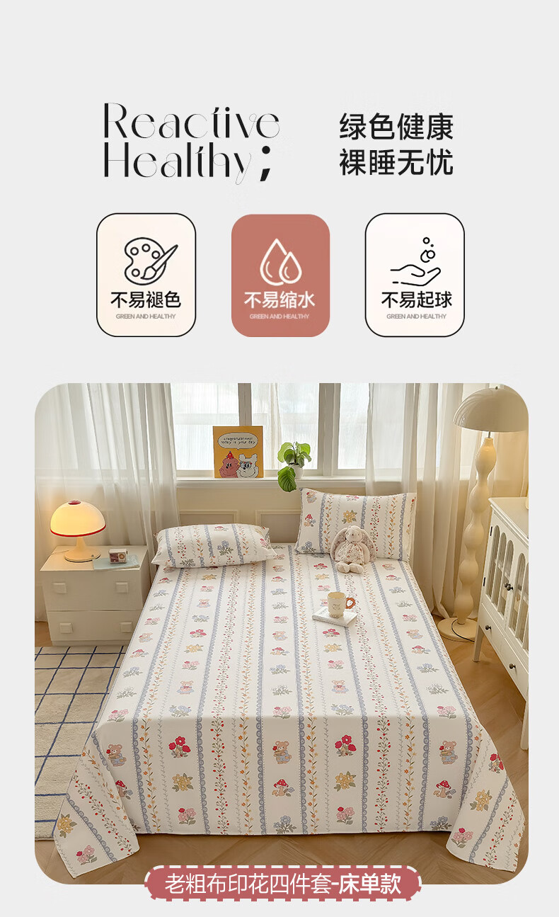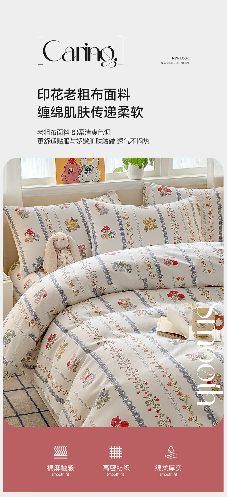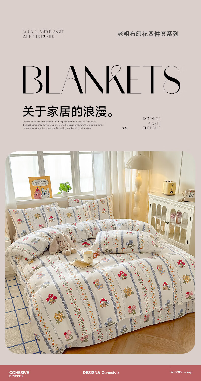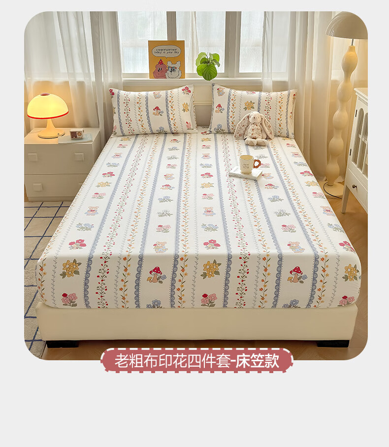 高睿老粗布四件套非纯棉全棉2025新款床单被套棉麻磨毛学生床品三件套 童话【甄选柔软老粗布亲肤透气】 床单款 1.8m床单款四件套