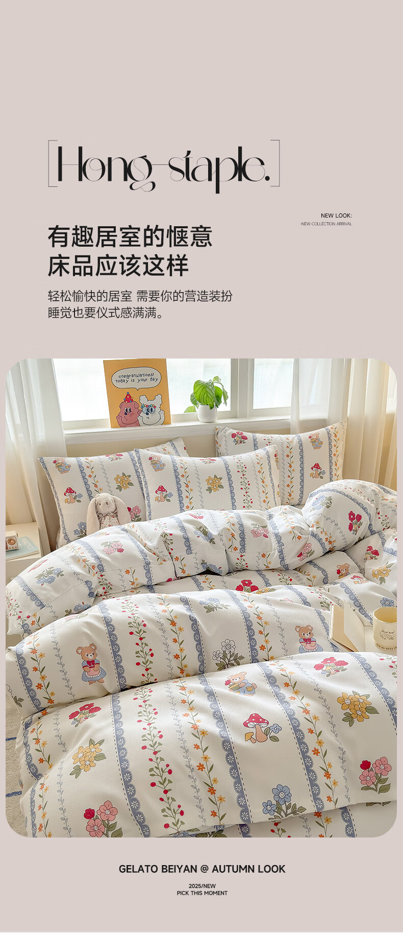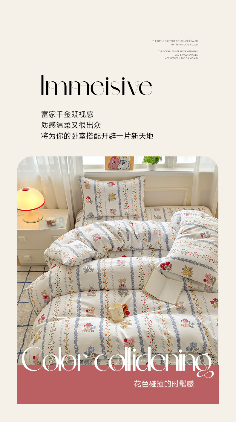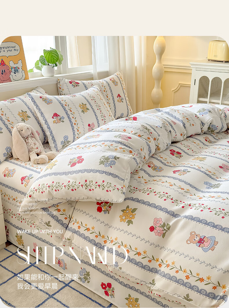 高睿老粗布四件套非纯棉全棉2025新款床单被套棉麻磨毛学生床品三件套 童话【甄选柔软老粗布亲肤透气】 床单款 1.8m床单款四件套