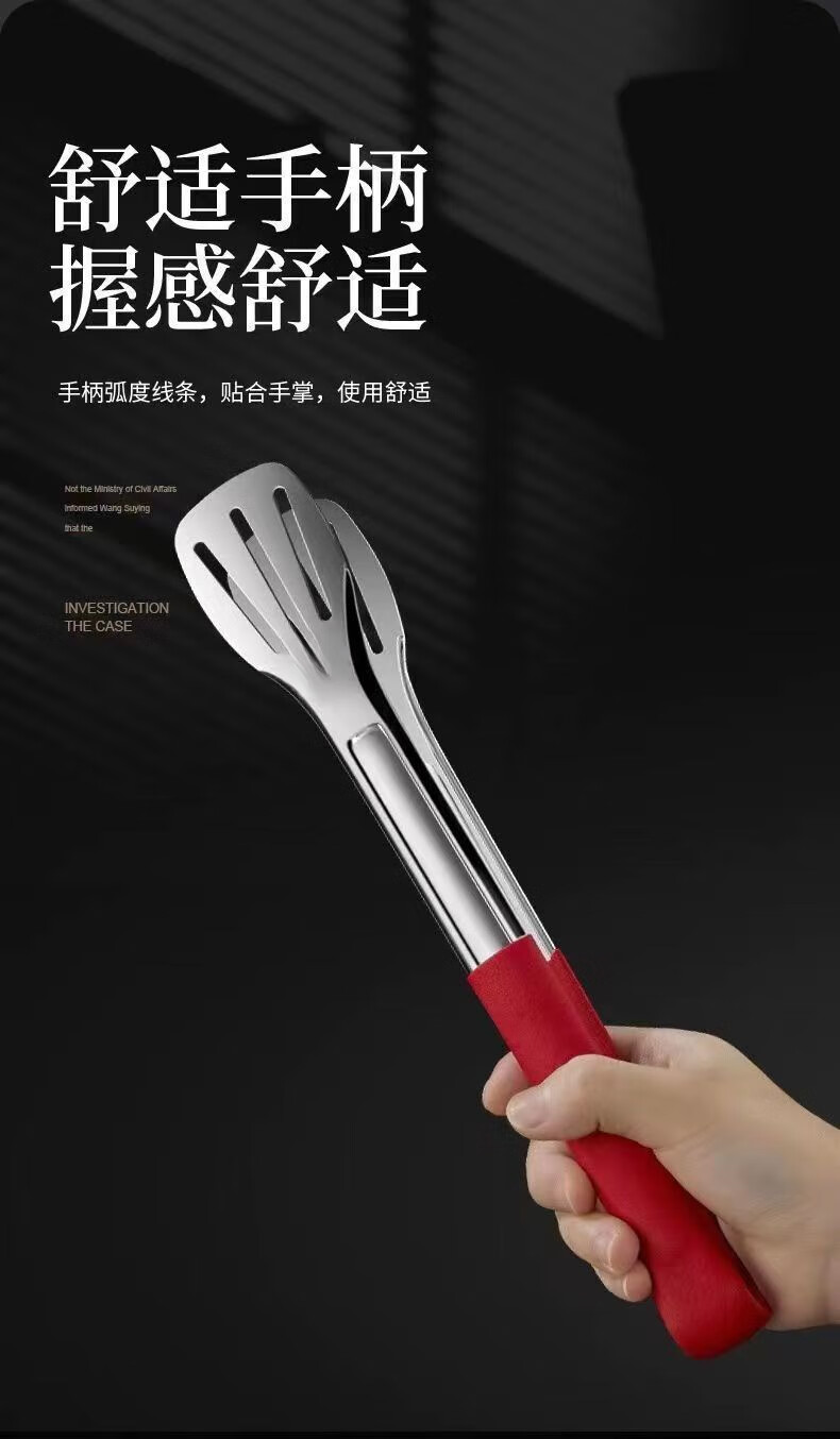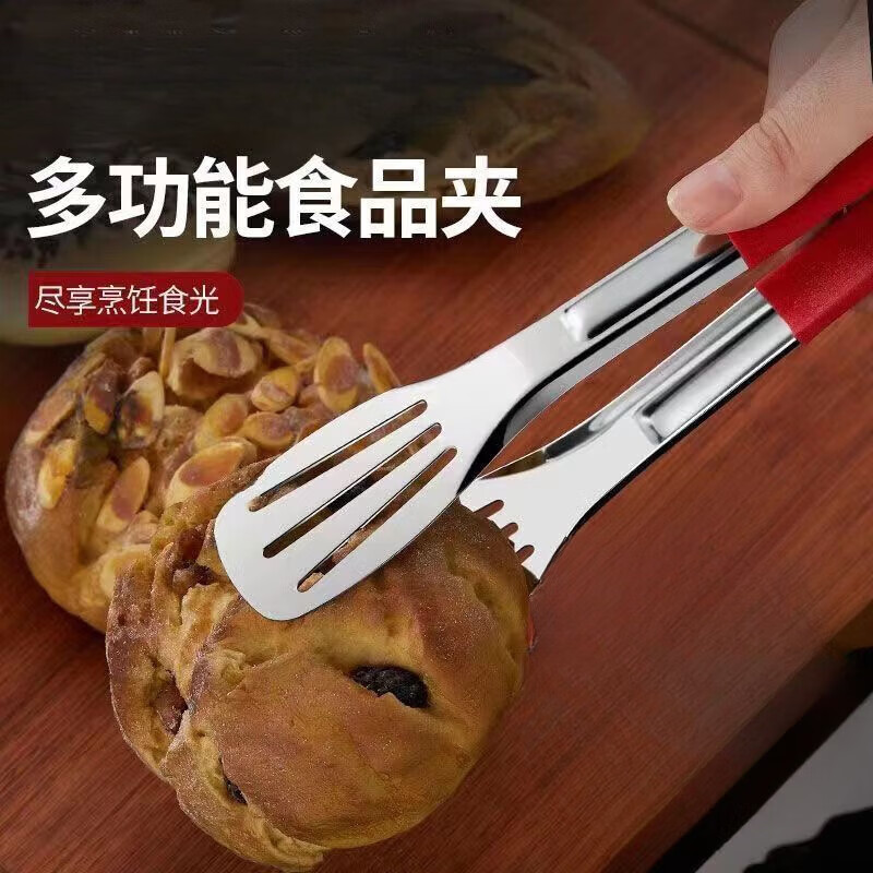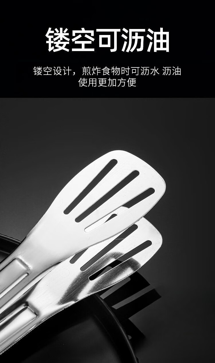 简漾特厚不锈钢食品夹子烧烤夹烤肉夹牛排夹厨房食物夹烘焙面包夹 23厘米 1把