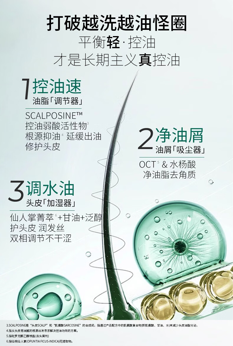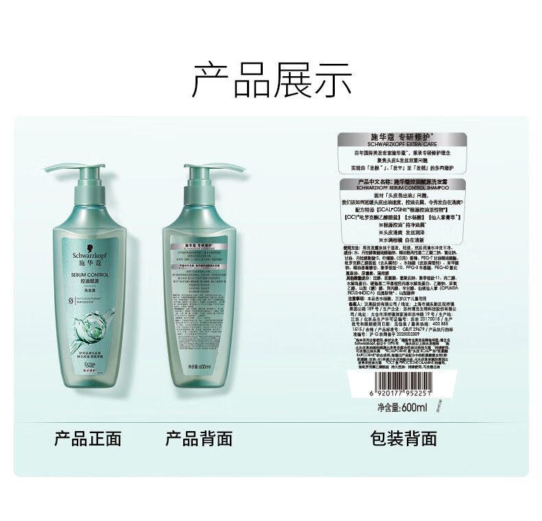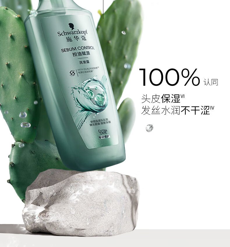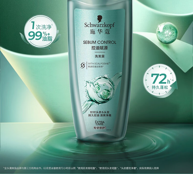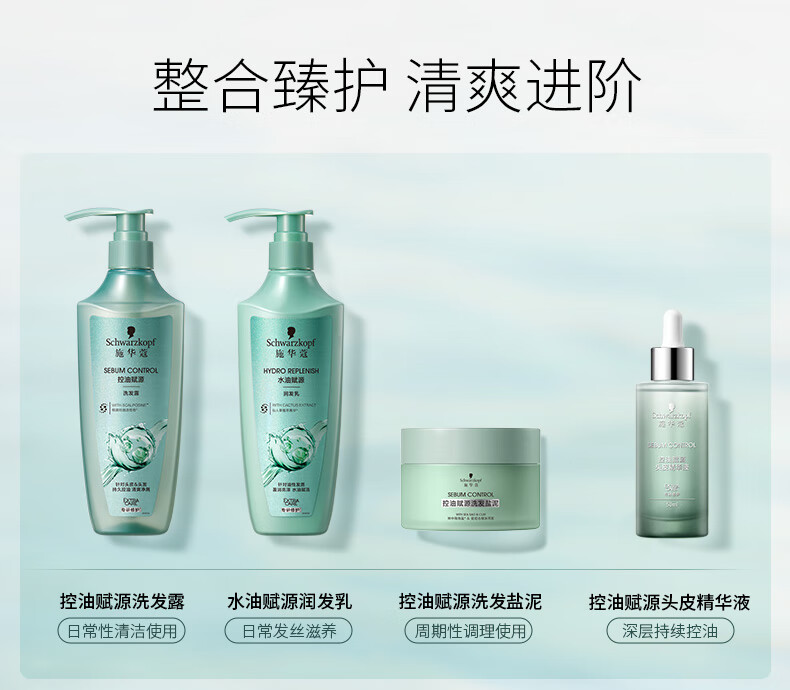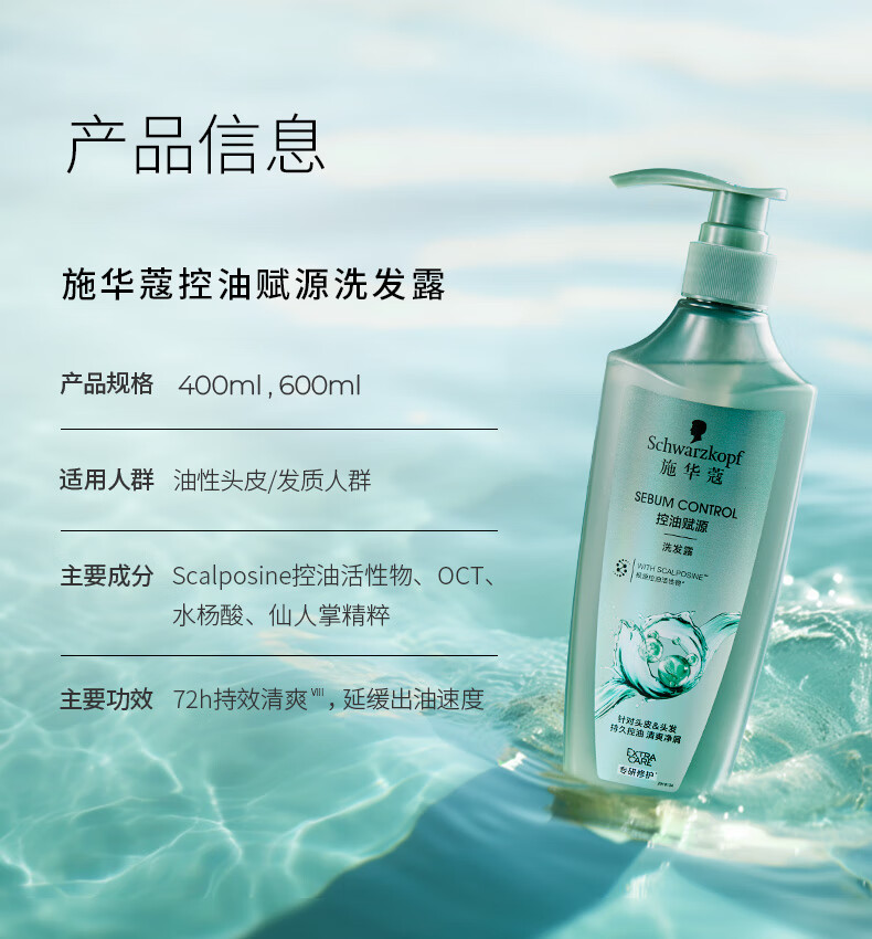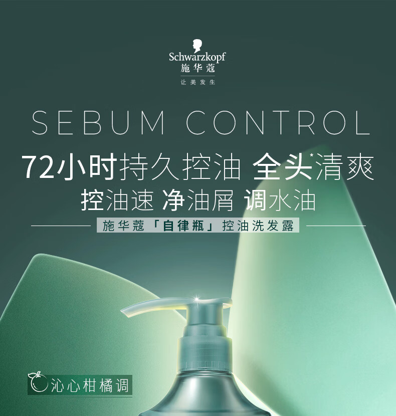 施华蔻(Schwarzkopf)控油赋源无硅油洗发露600ml 自律瓶 净油去屑洗发水