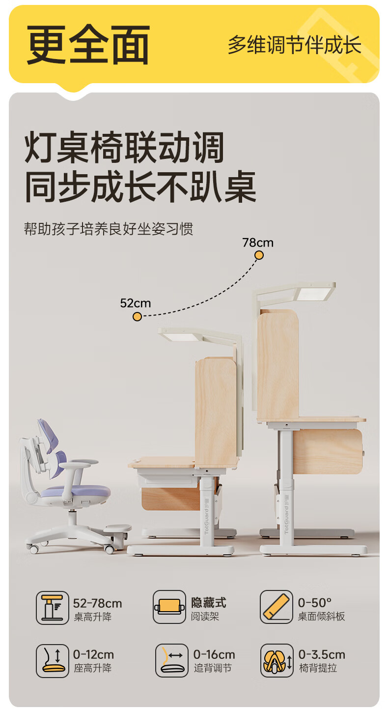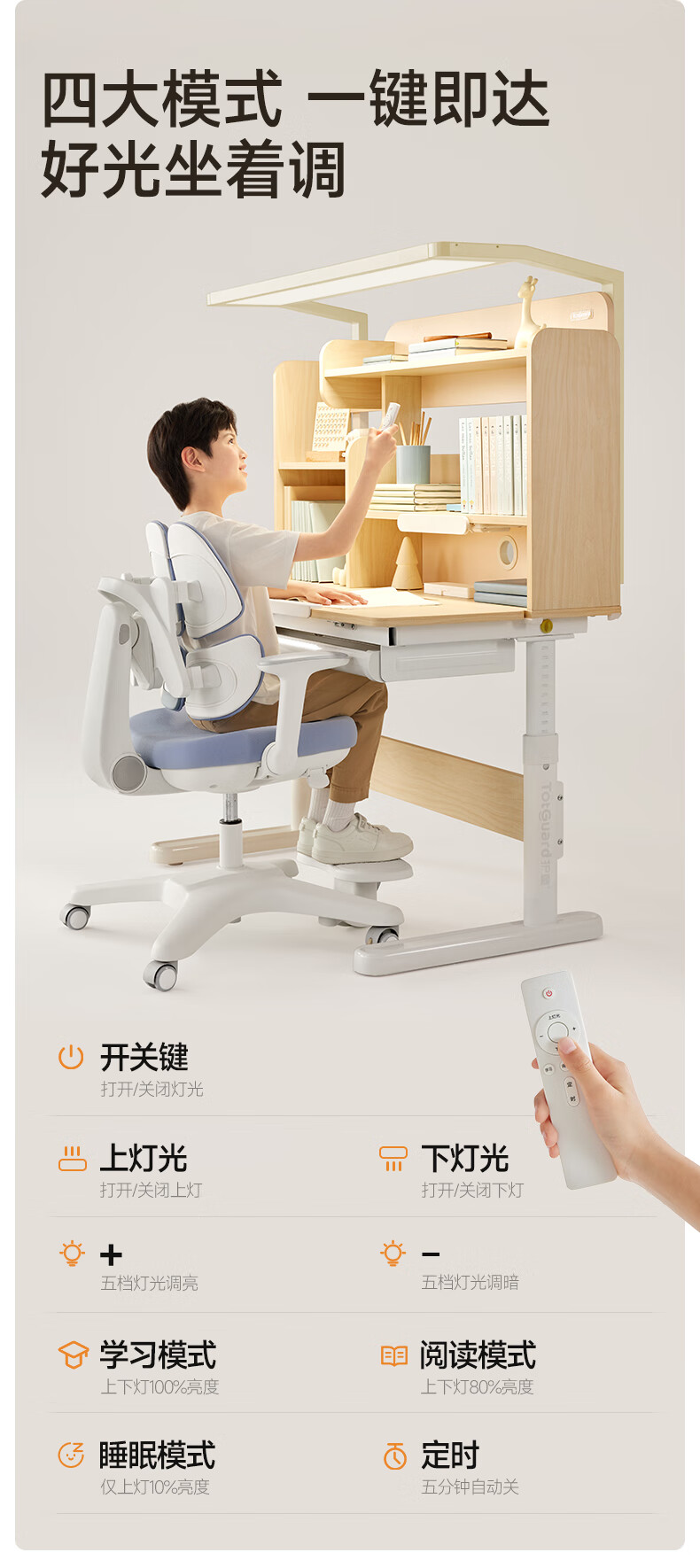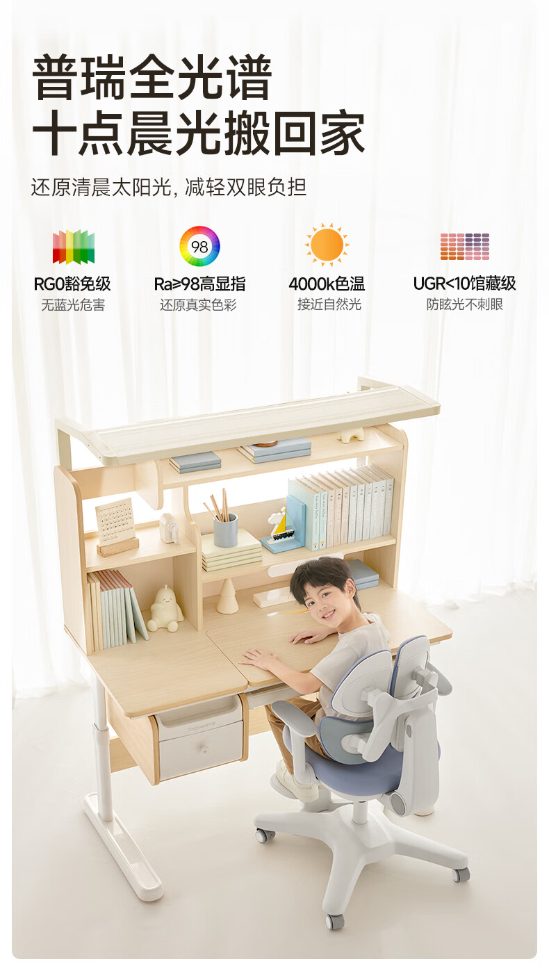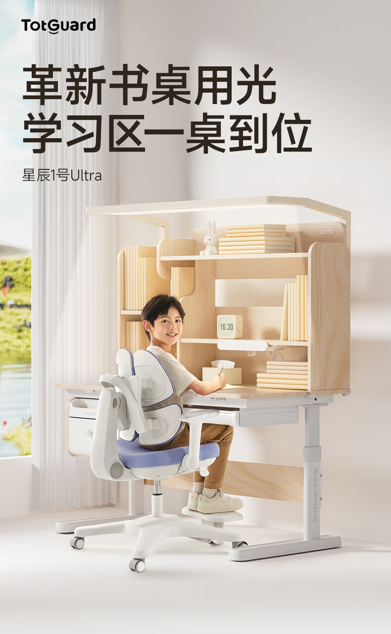 护童星辰Ultra儿童学习桌椅实木升降桌小学生家用灯桌一体写字桌书桌 星辰Ultra+G985_奇思蓝