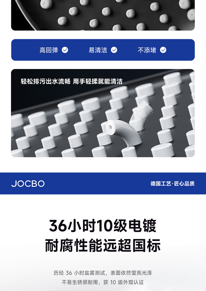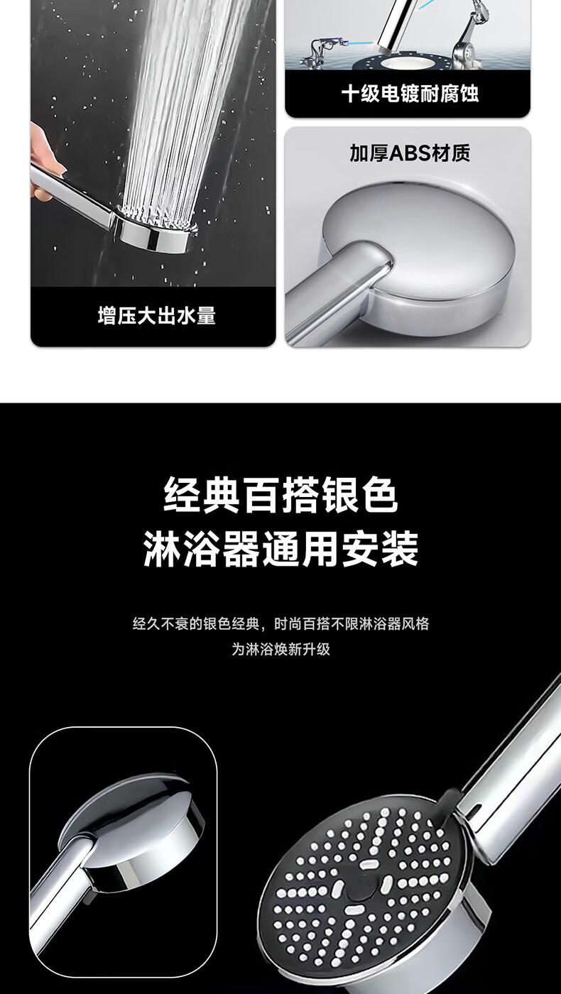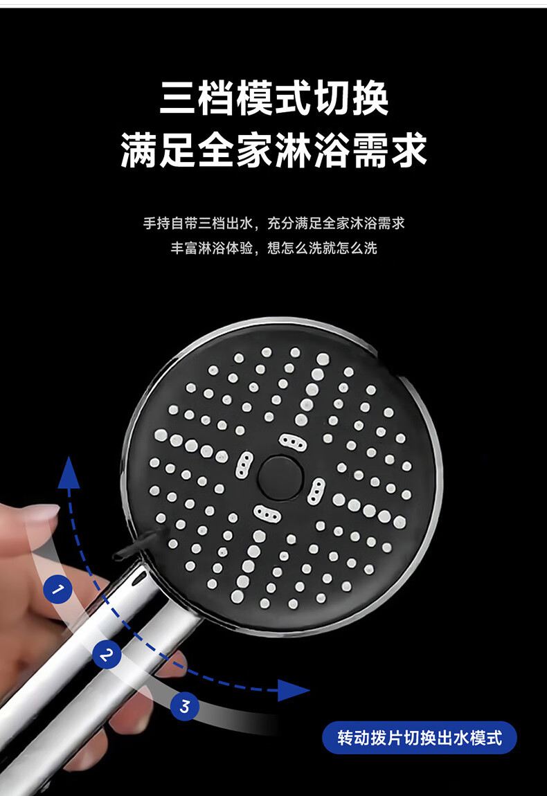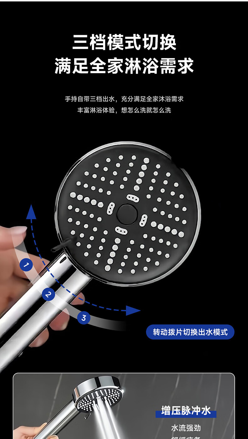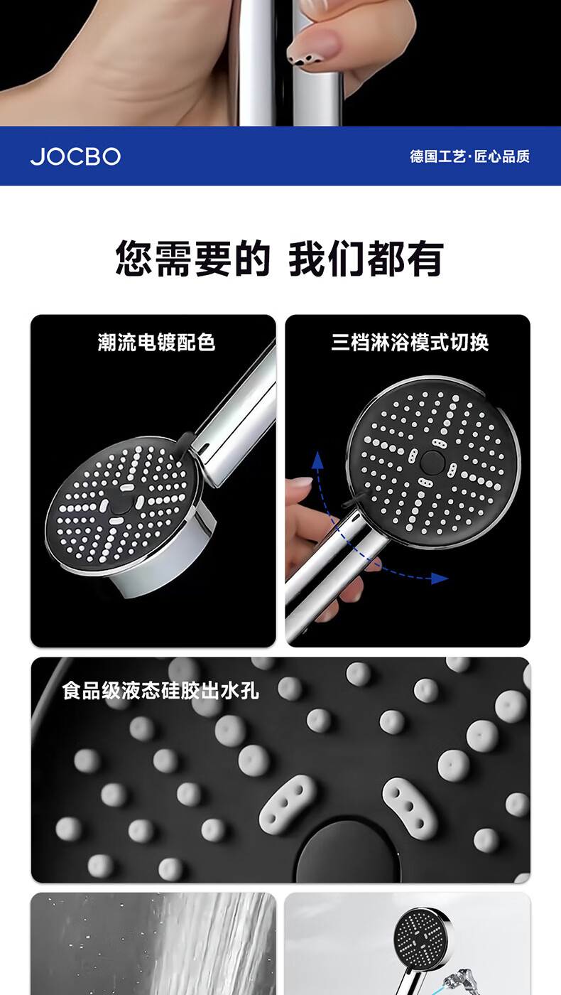 JOCBO【德国】增压花洒淋浴喷头套装 三功能强劲增压除垢手持花洒套装 【三功能增压花洒】黑面板