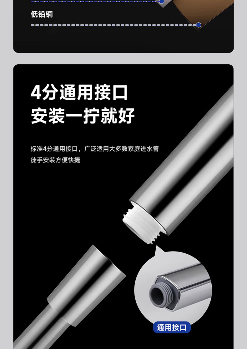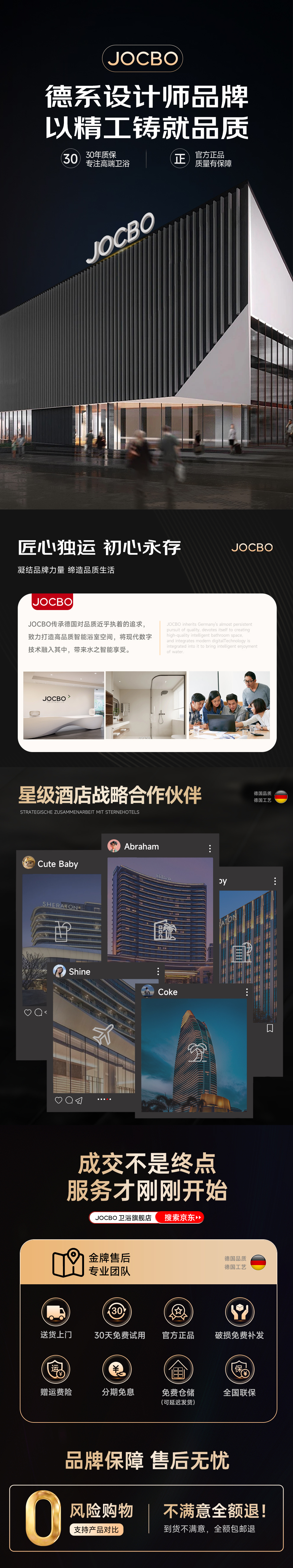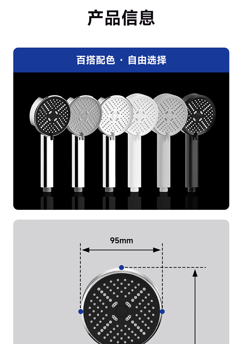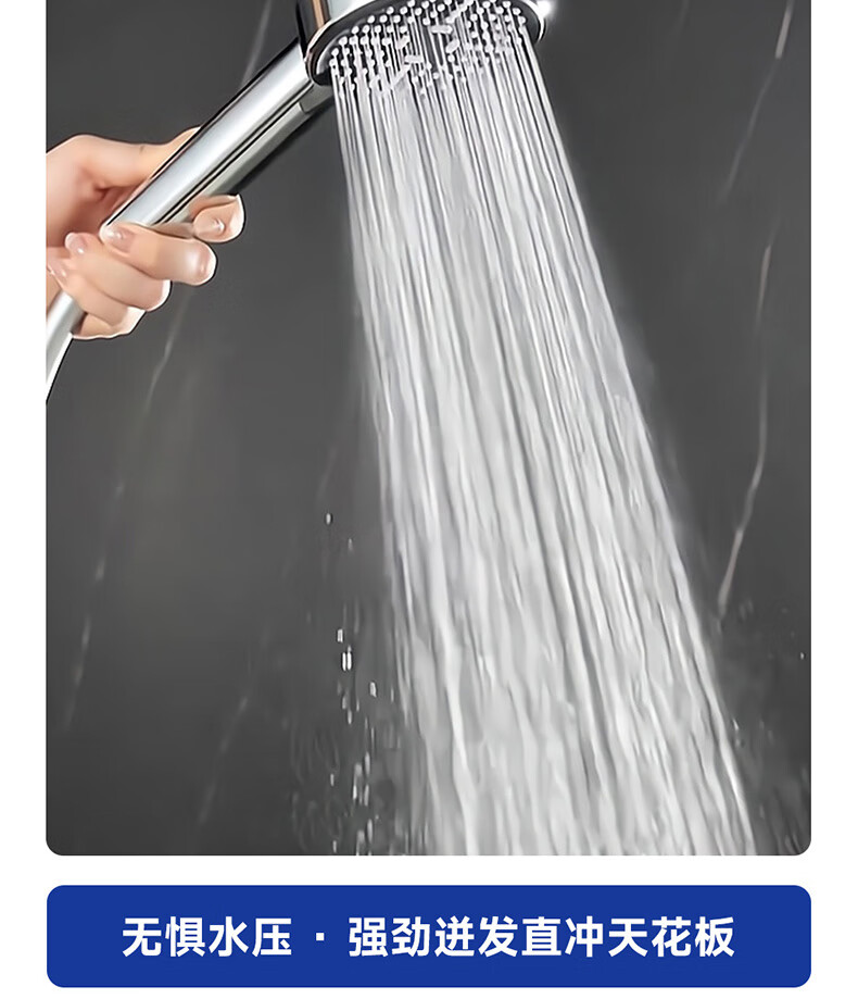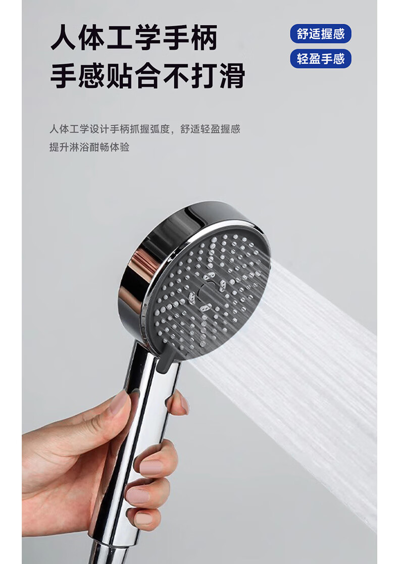 JOCBO【德国】增压花洒淋浴喷头套装 三功能强劲增压除垢手持花洒套装 【三功能增压花洒】黑面板