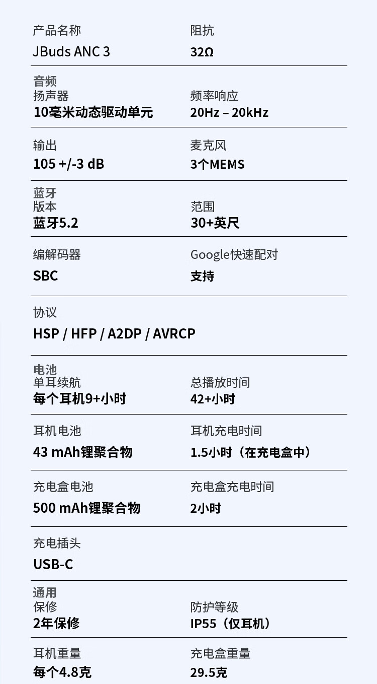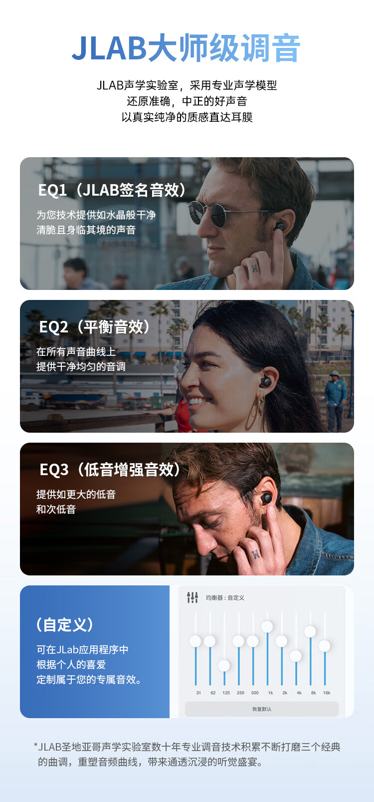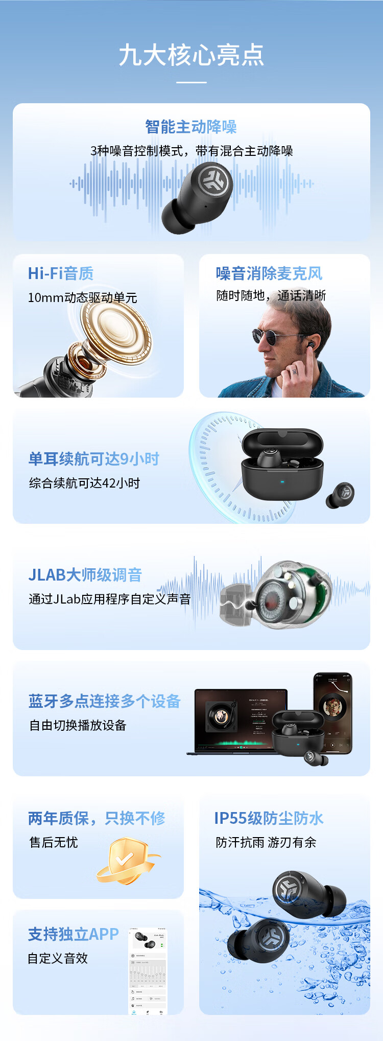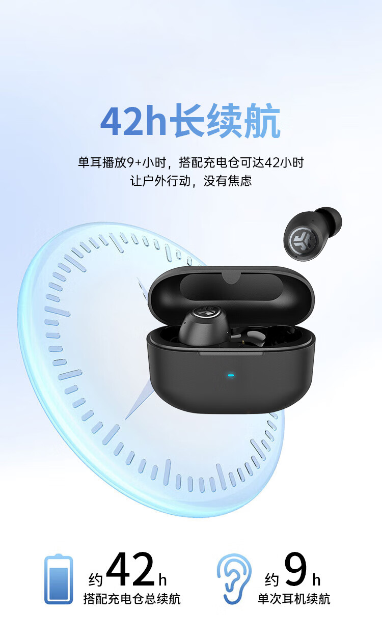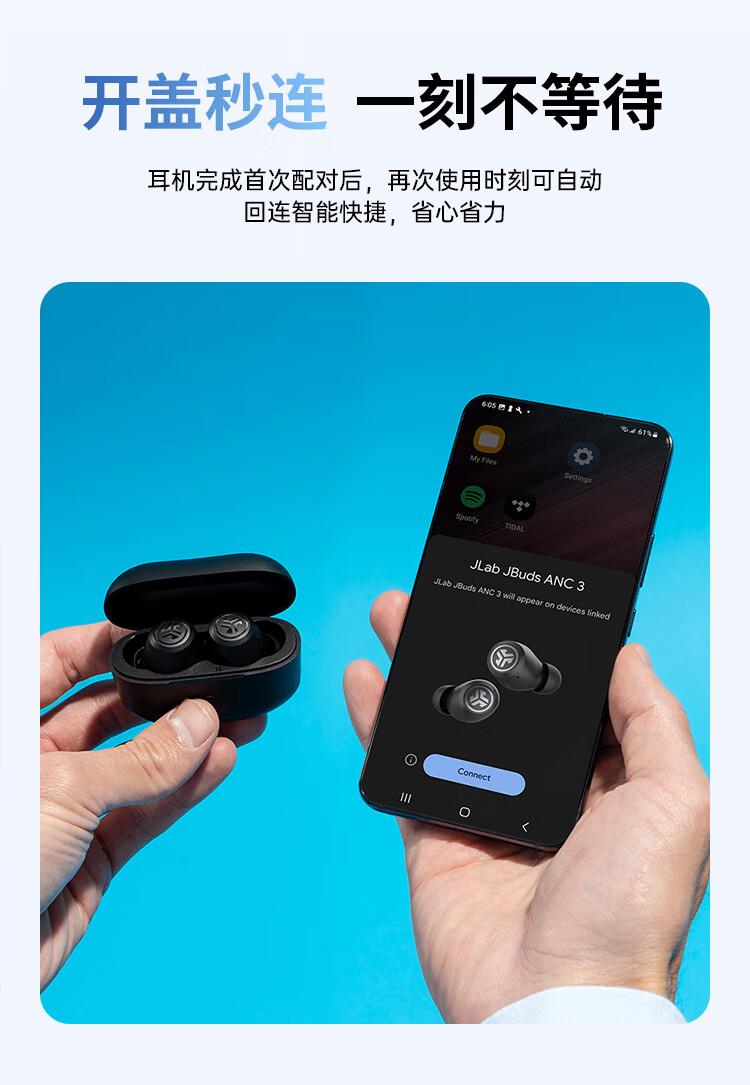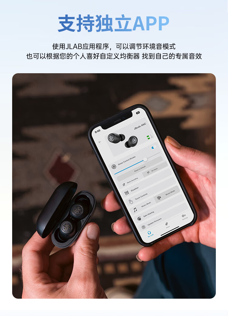 JLab JBuds ANC 3智能主动降噪蓝牙耳机 Hi-Fi音质 42小时长续航 入耳式无线耳机适用苹果/安卓 午夜黑