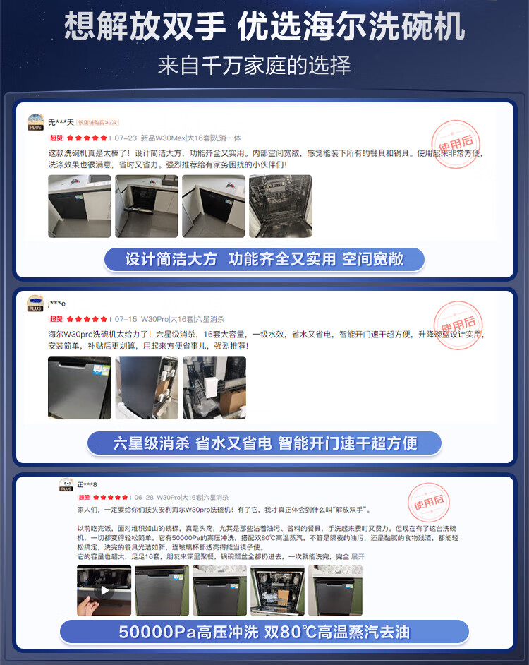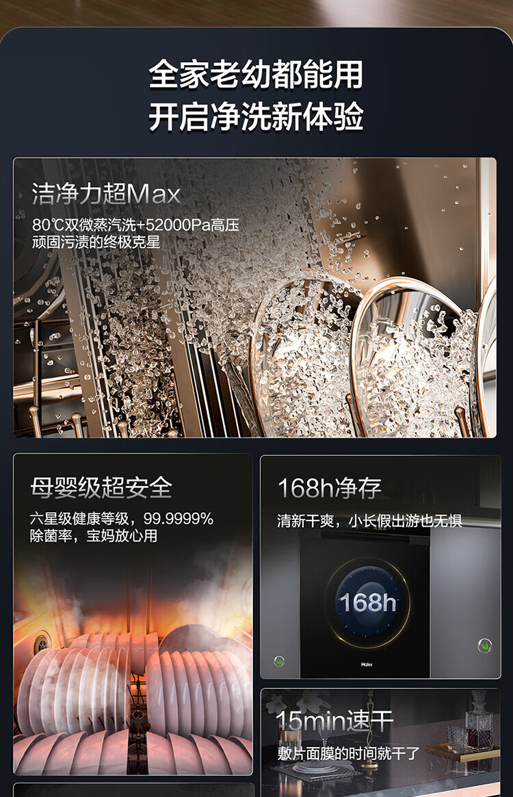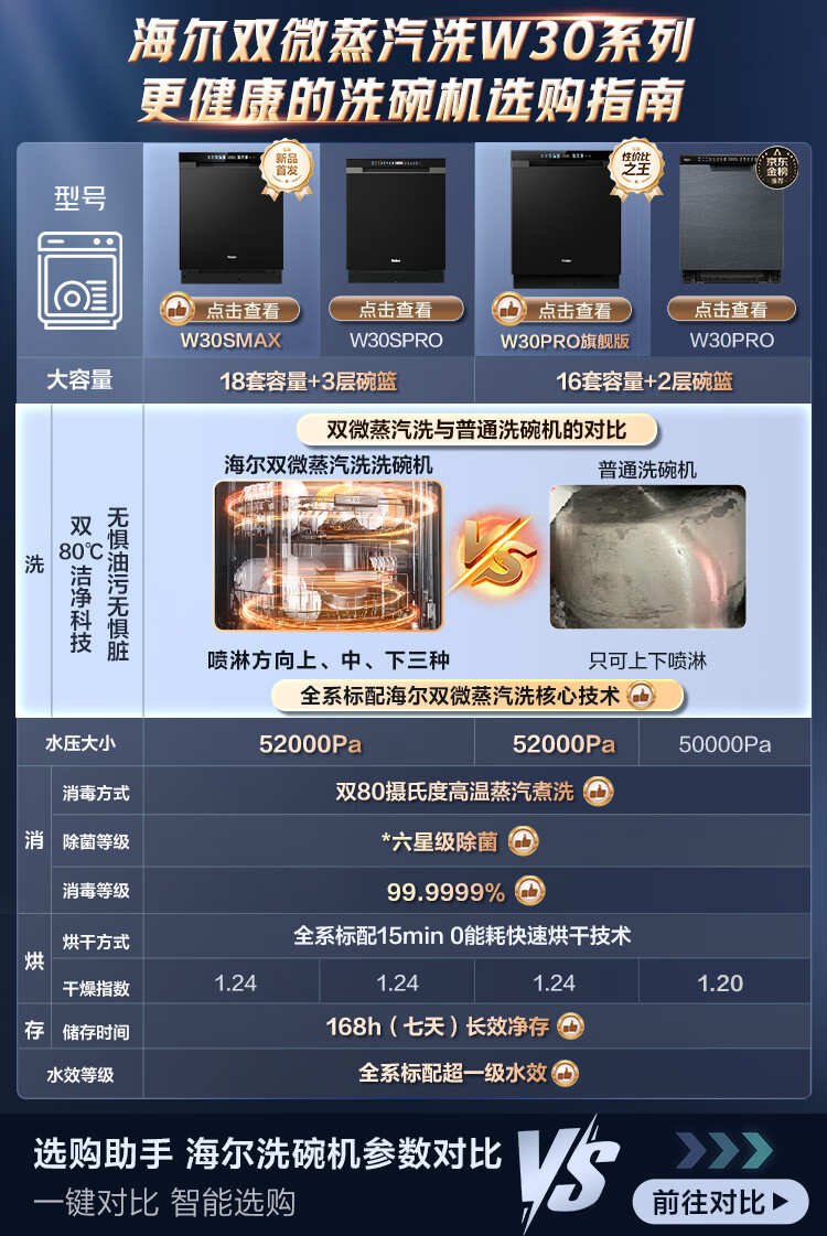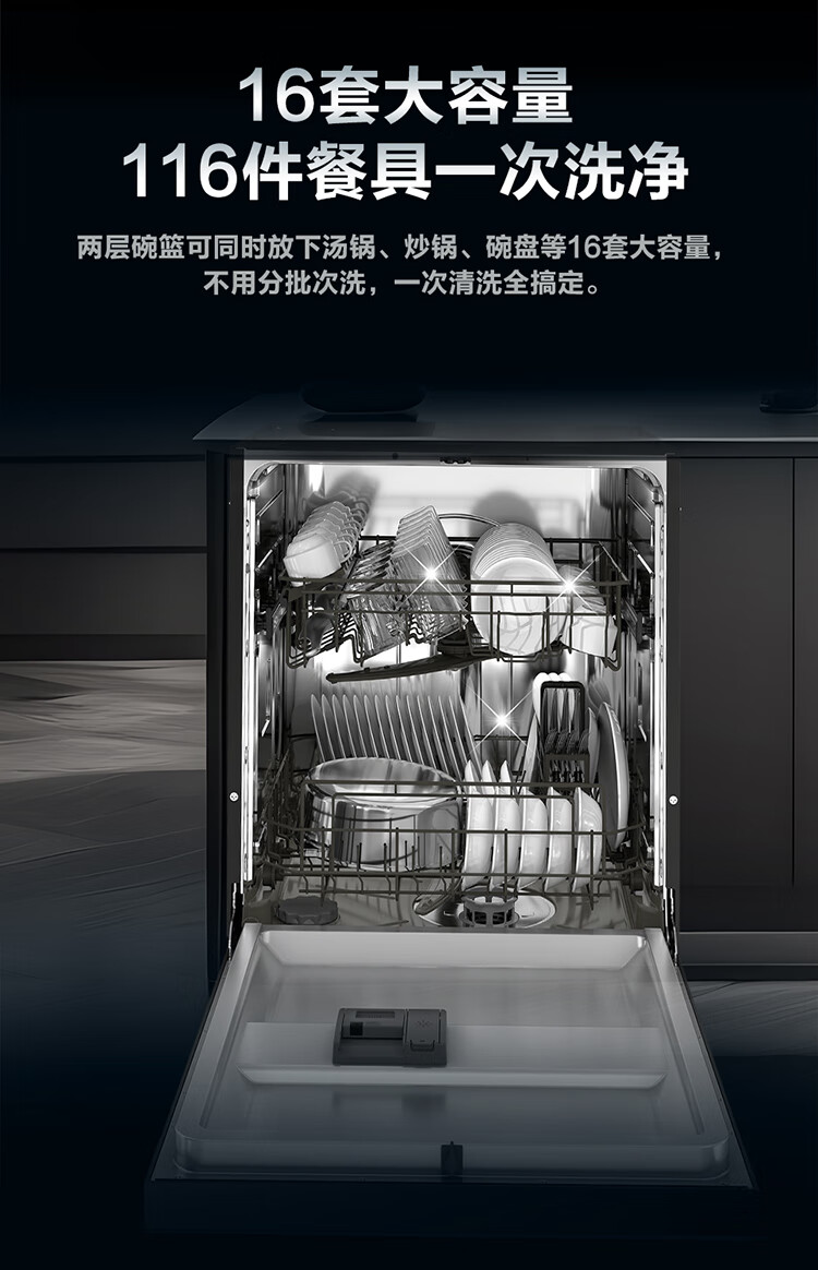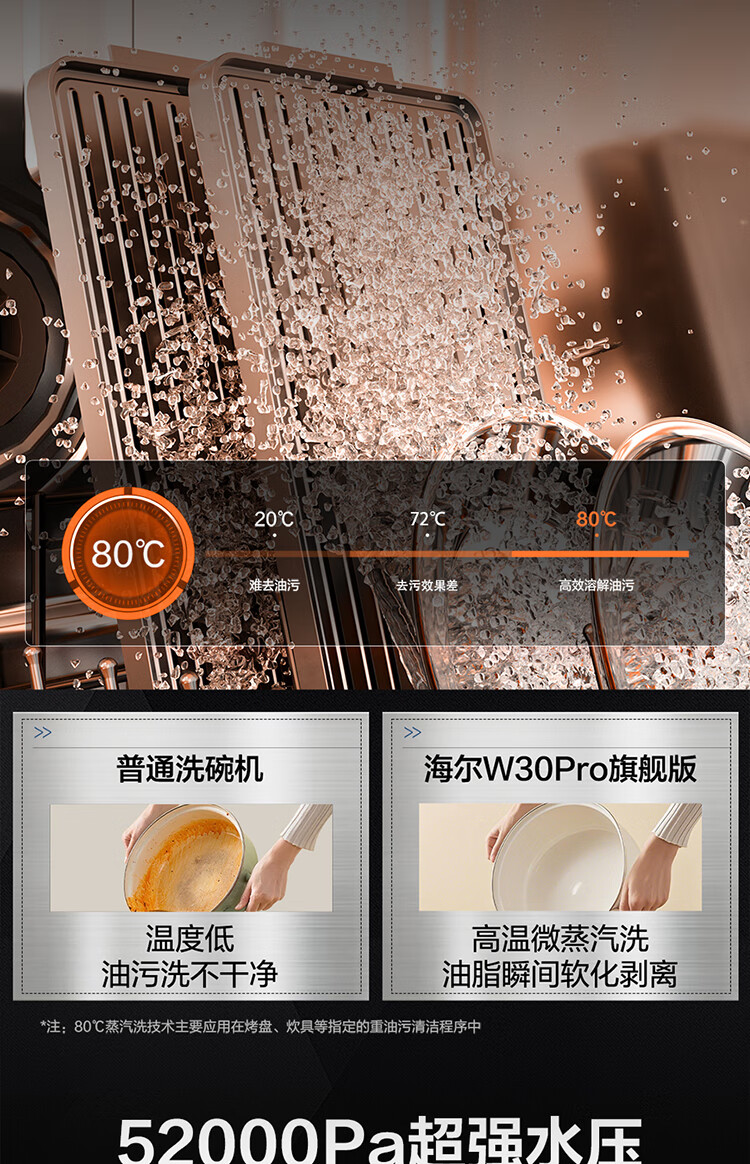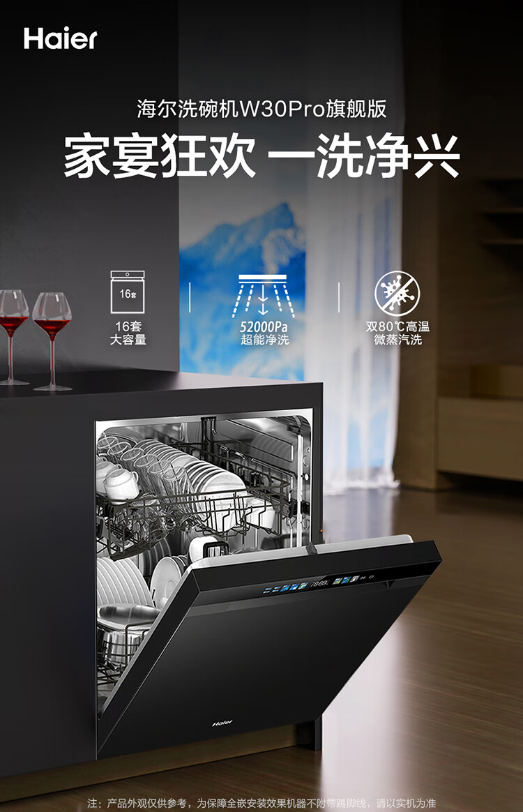 海尔(Haier)【双微蒸汽洗W30Pro旗舰版】洗碗机嵌入式16套大容量一级水效80℃母婴级消杀分区洗EYBW16586GHU1