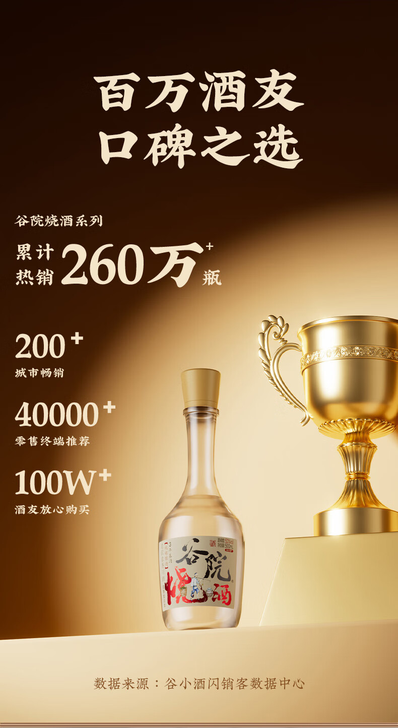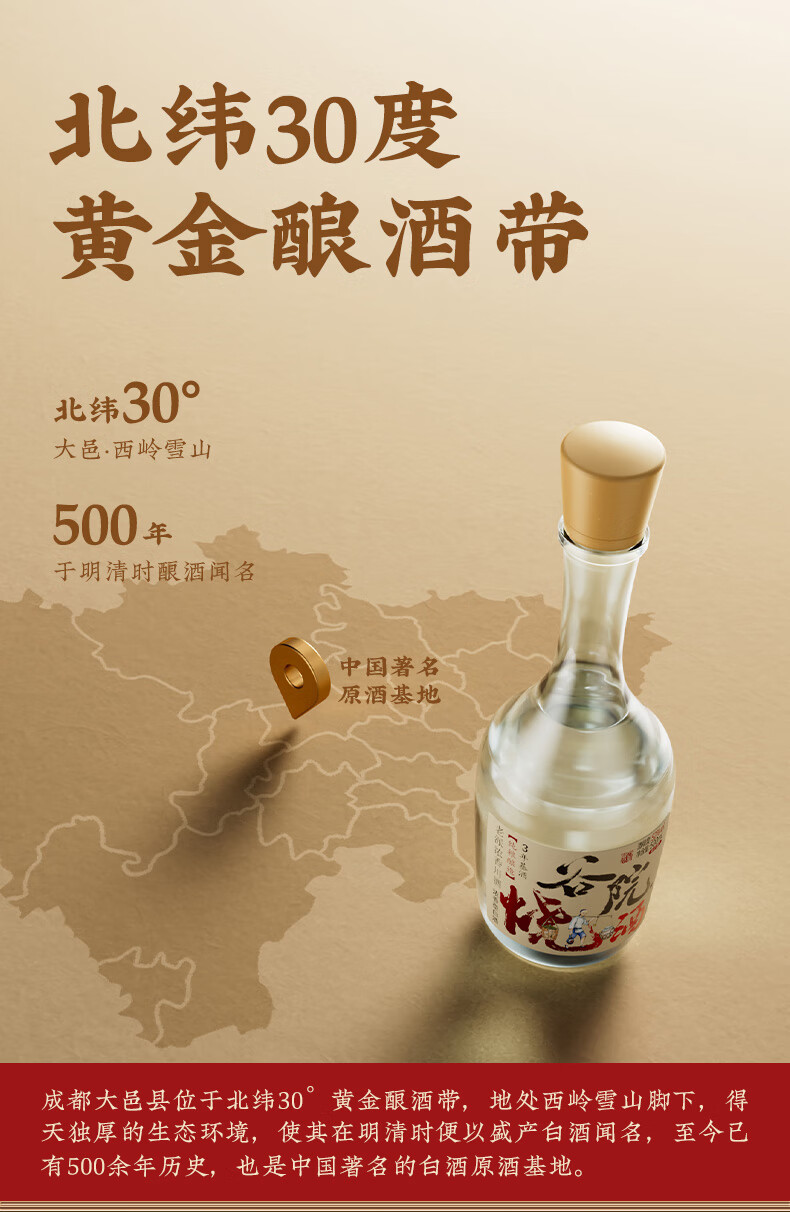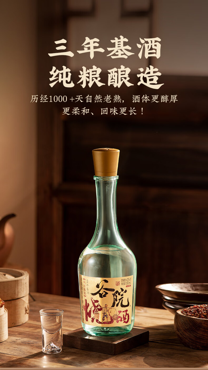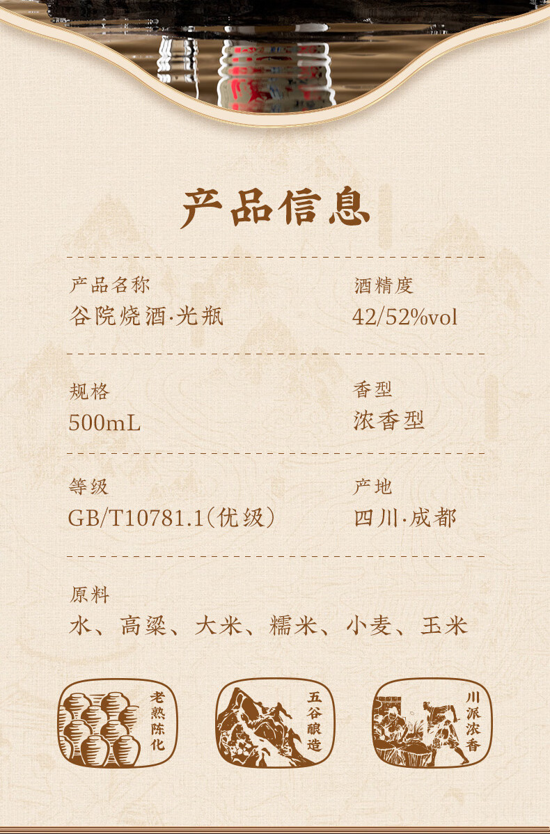 谷小酒52度川派浓香白酒 固态纯粮酿造 粮食酒口粮酒聚会自饮 谷院光瓶 52度 500mL 1瓶 【渠道专享】