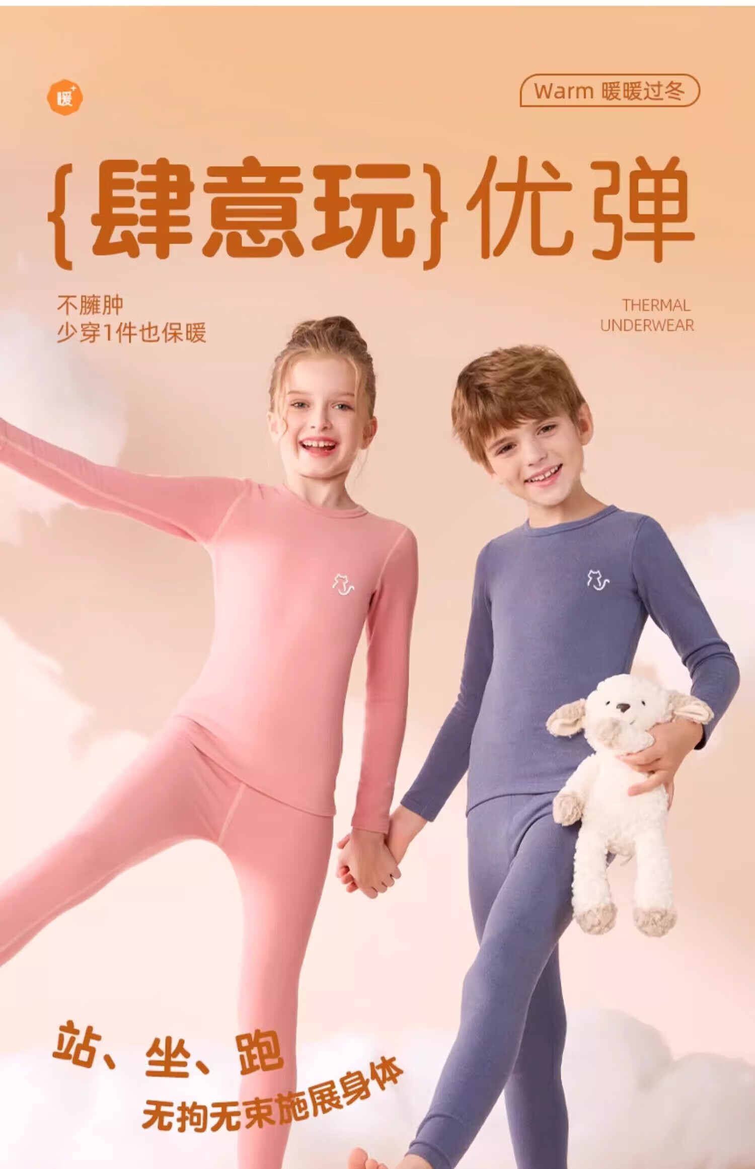 猫人(MiiOW)男童德绒保暖内衣套装男童秋衣秋裤男孩女孩中大童加绒秋冬季睡衣 深卡其 110 建议100-110CM,22-31斤