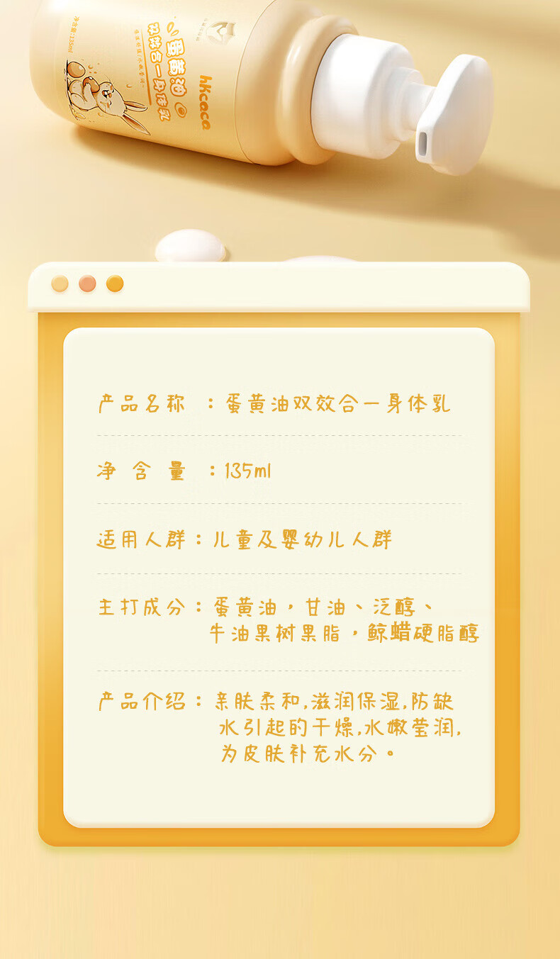 HKCQCQ蛋黄油BB乳烟酰胺保湿全身留香 蛋黄油儿童身体乳