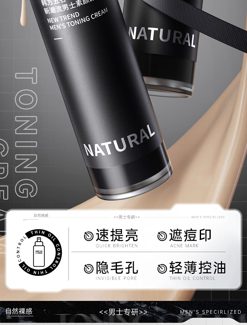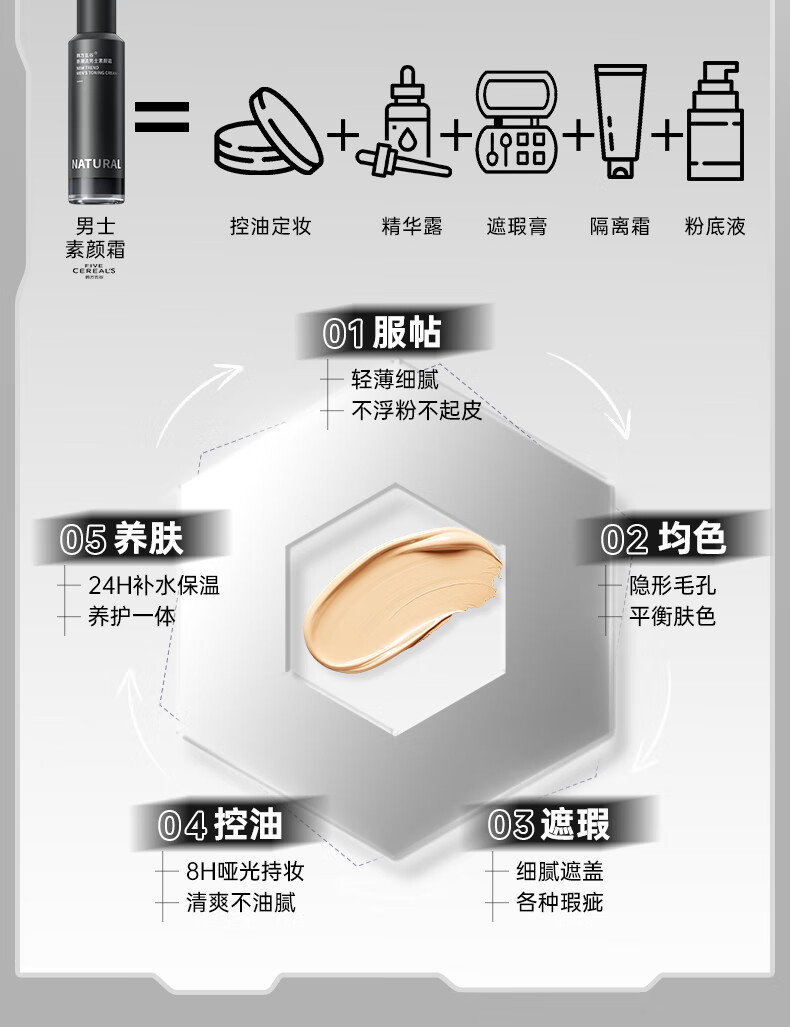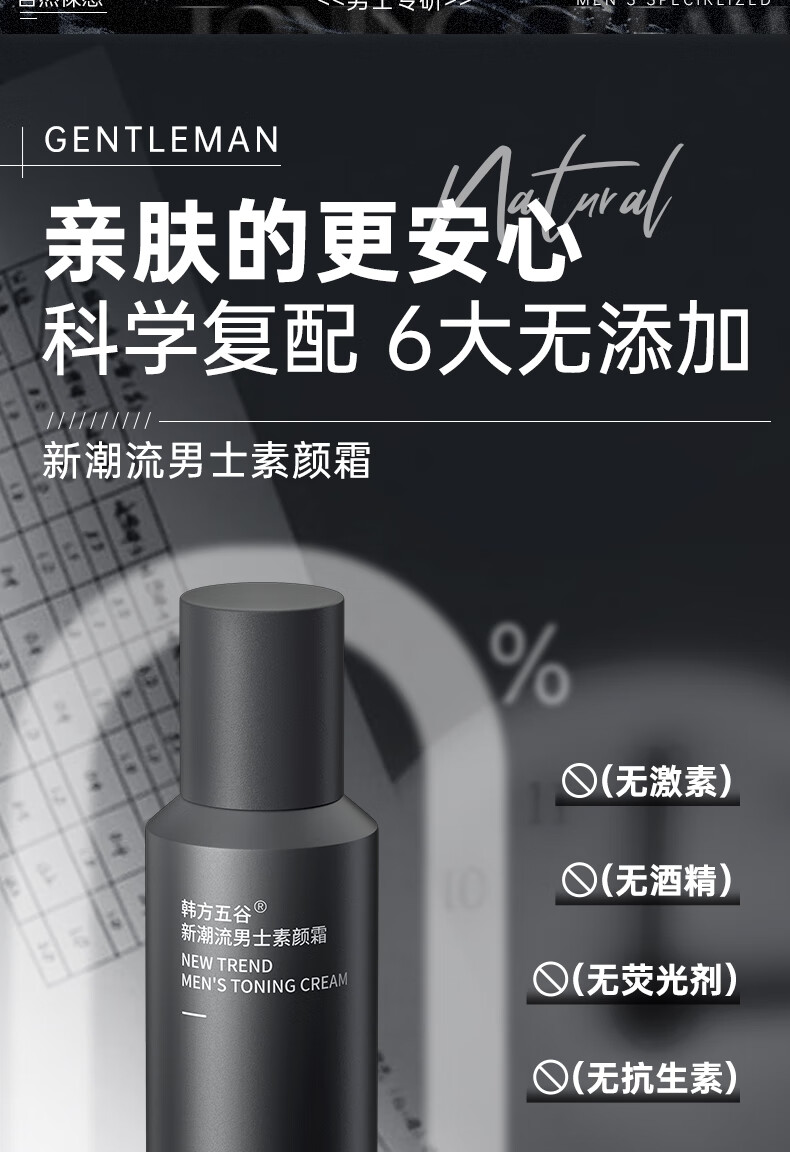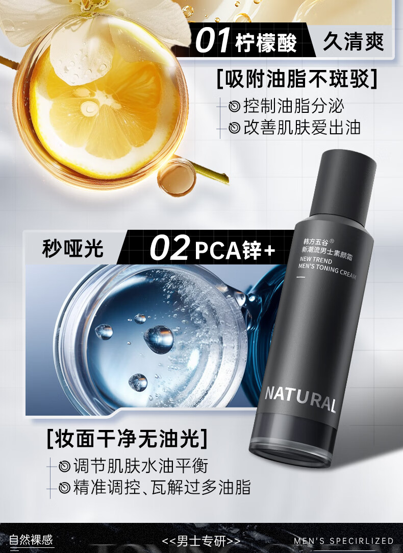 韩方五谷男士素颜霜遮瑕膏痘印提亮肤色粉底液保湿控油乳液面霜秋冬护肤品