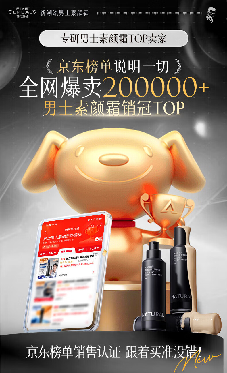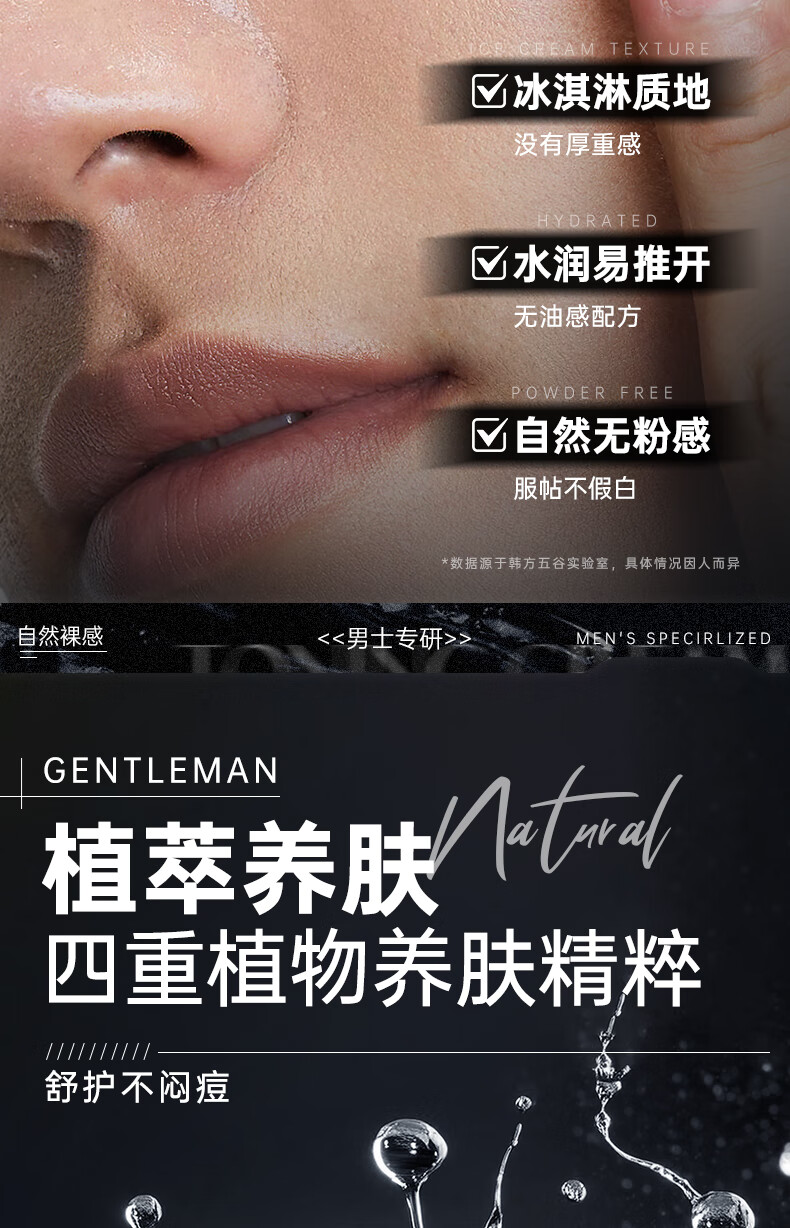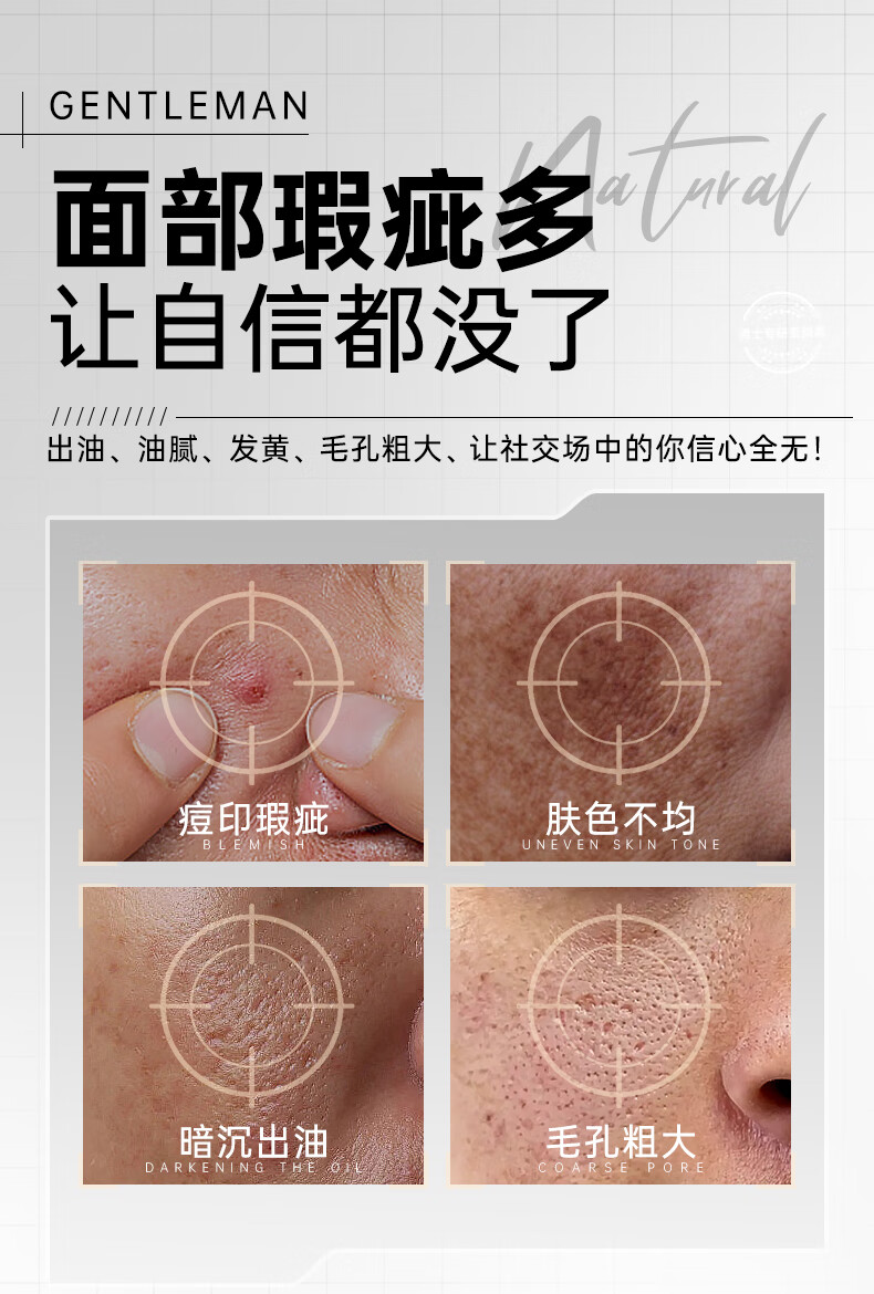 韩方五谷男士素颜霜遮瑕膏痘印提亮肤色粉底液保湿控油乳液面霜秋冬护肤品