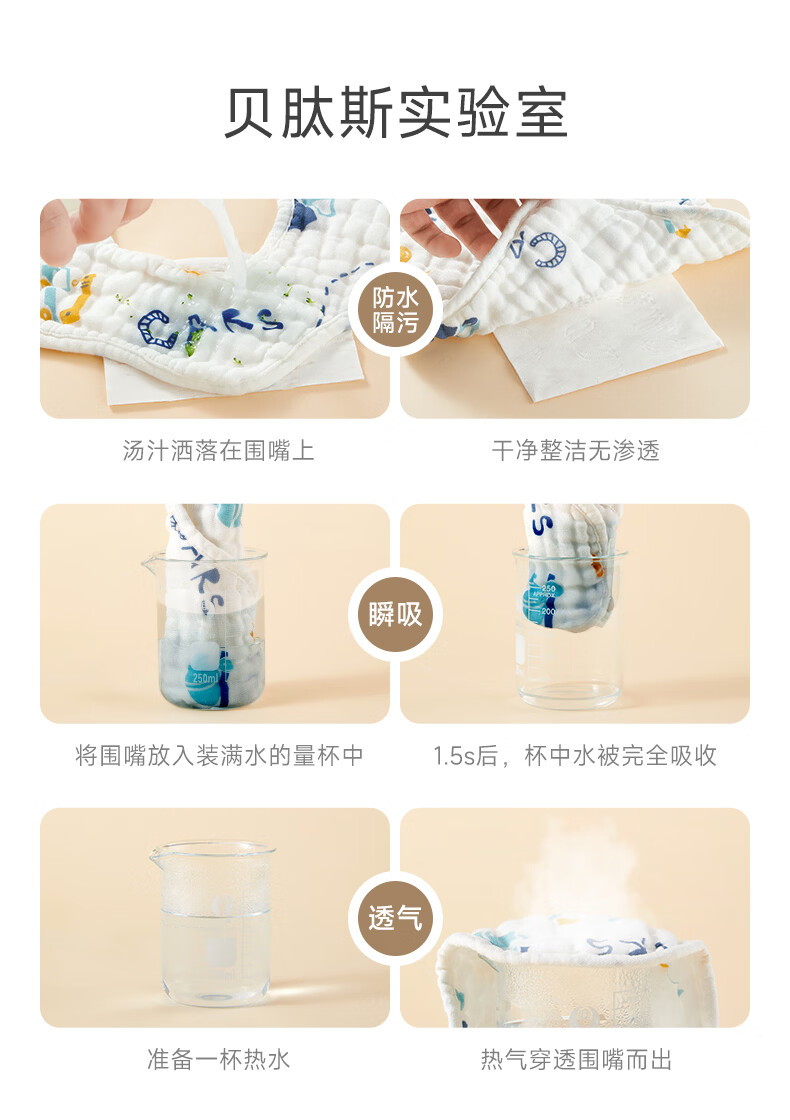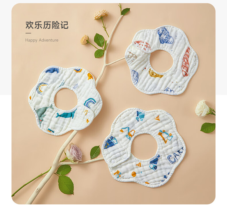 贝肽斯口水巾婴儿围嘴宝宝纯棉纱布围兜新生儿防水防吐奶围兜 【4层】安德鲁秘境-3条装25*25cm 【吸湿透气*A类纯棉】