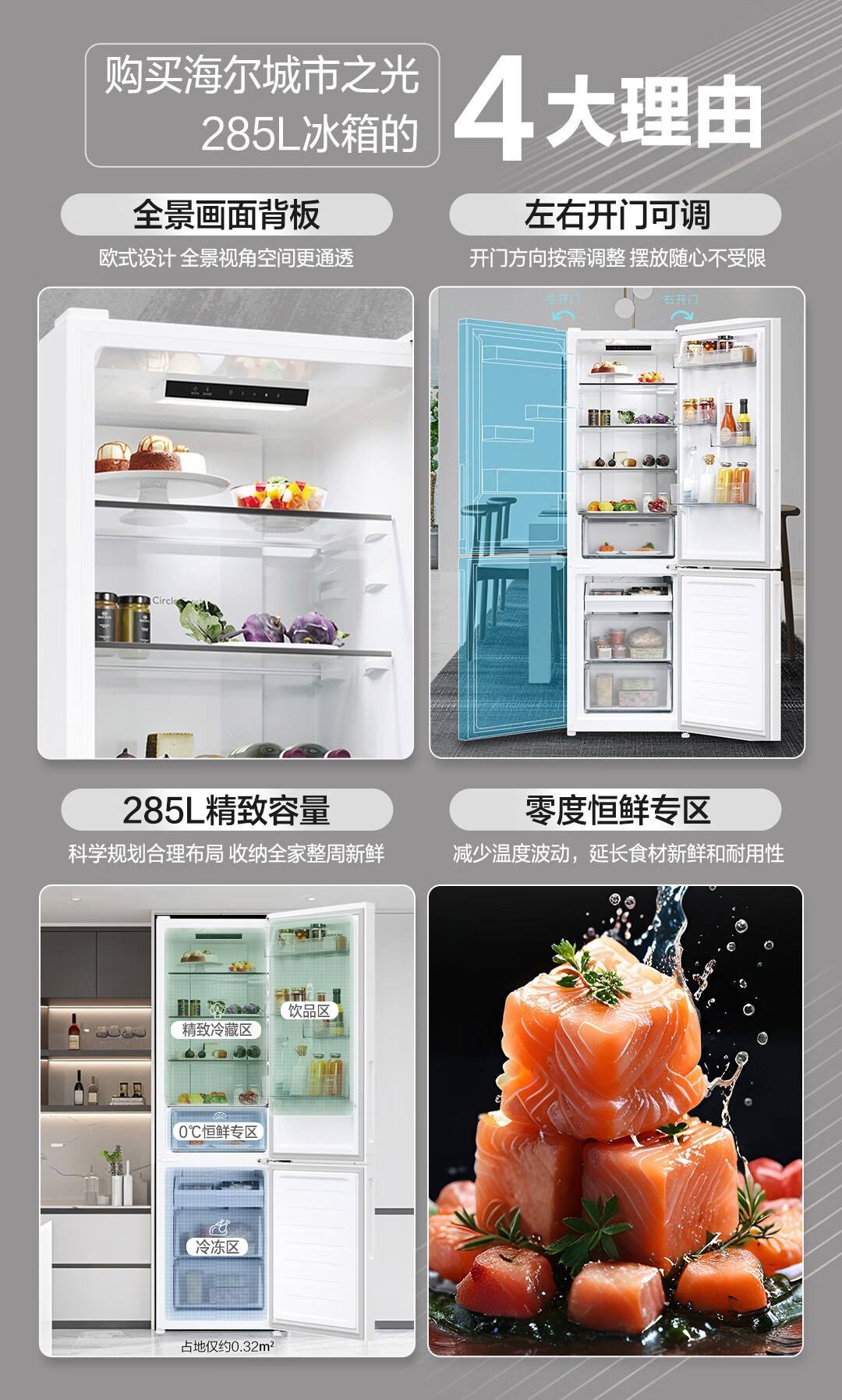 海尔(Haier)城市之光系列285升两门冰箱风冷无霜一级变频节能小户型宿舍租房BCD-285WGHC2DEWV国家补贴20% BCD-285WGHC2DEWV