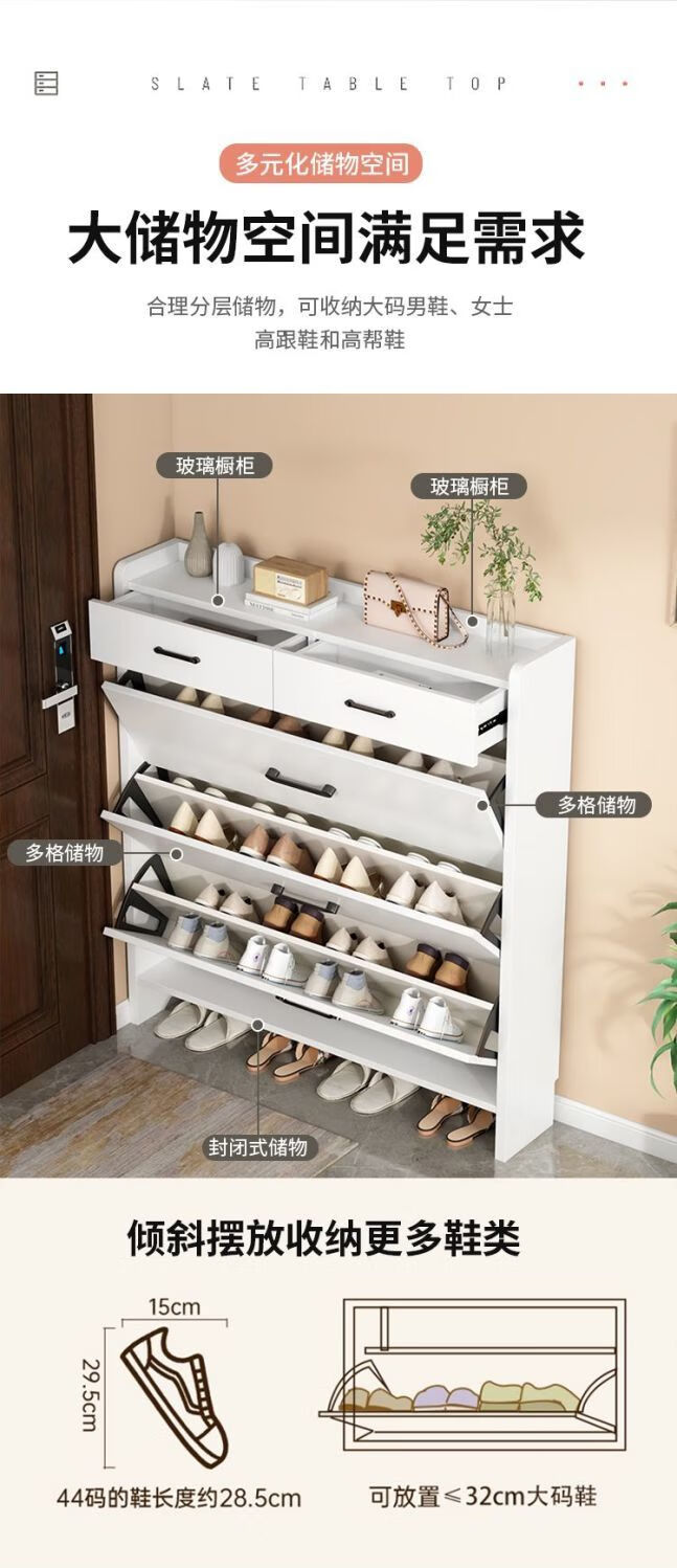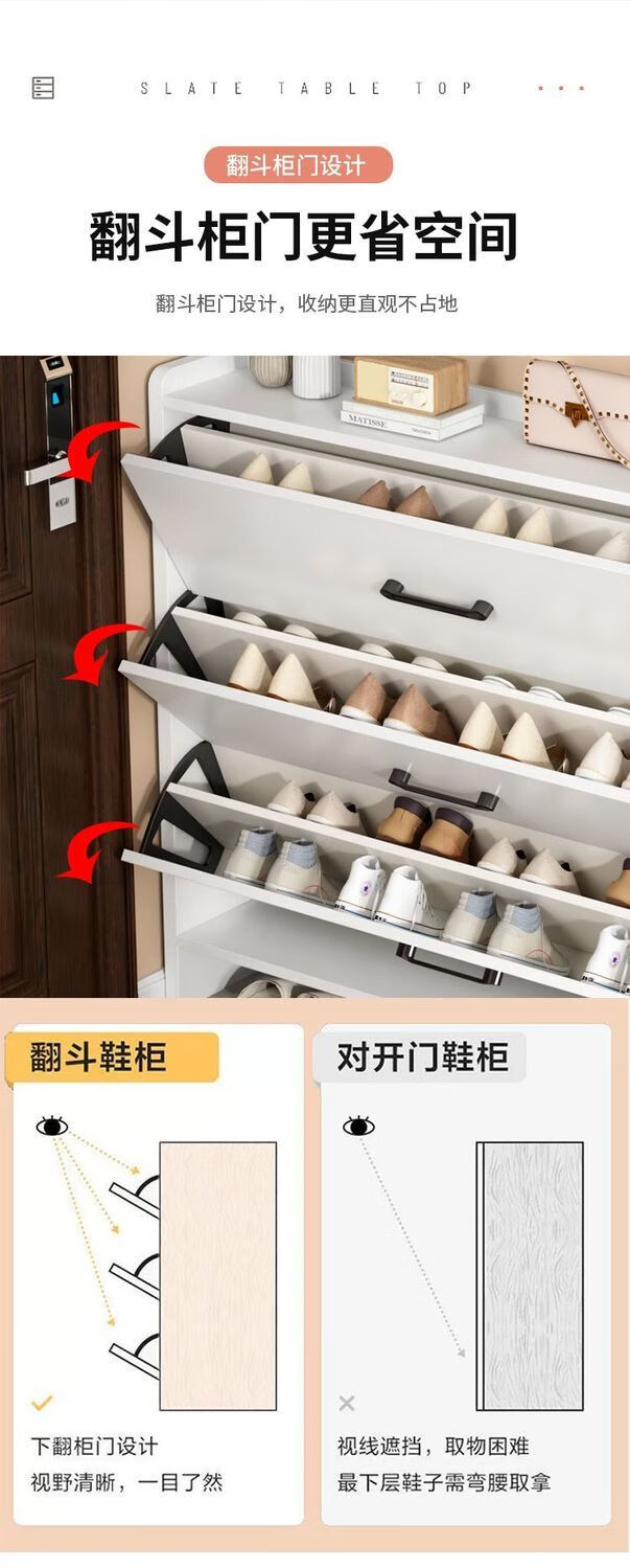 柏帝奇翻斗式鞋柜实木防尘家用折叠小户型进门收纳入户门口窄鞋架子 【浅胡桃】 高120长50宽24【实木】
