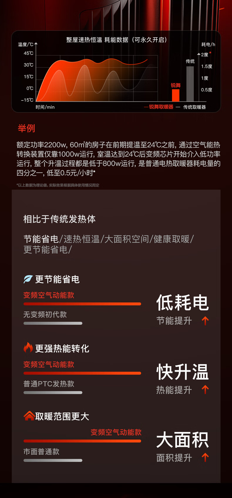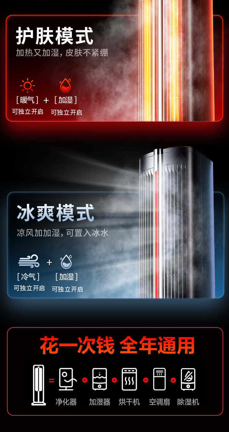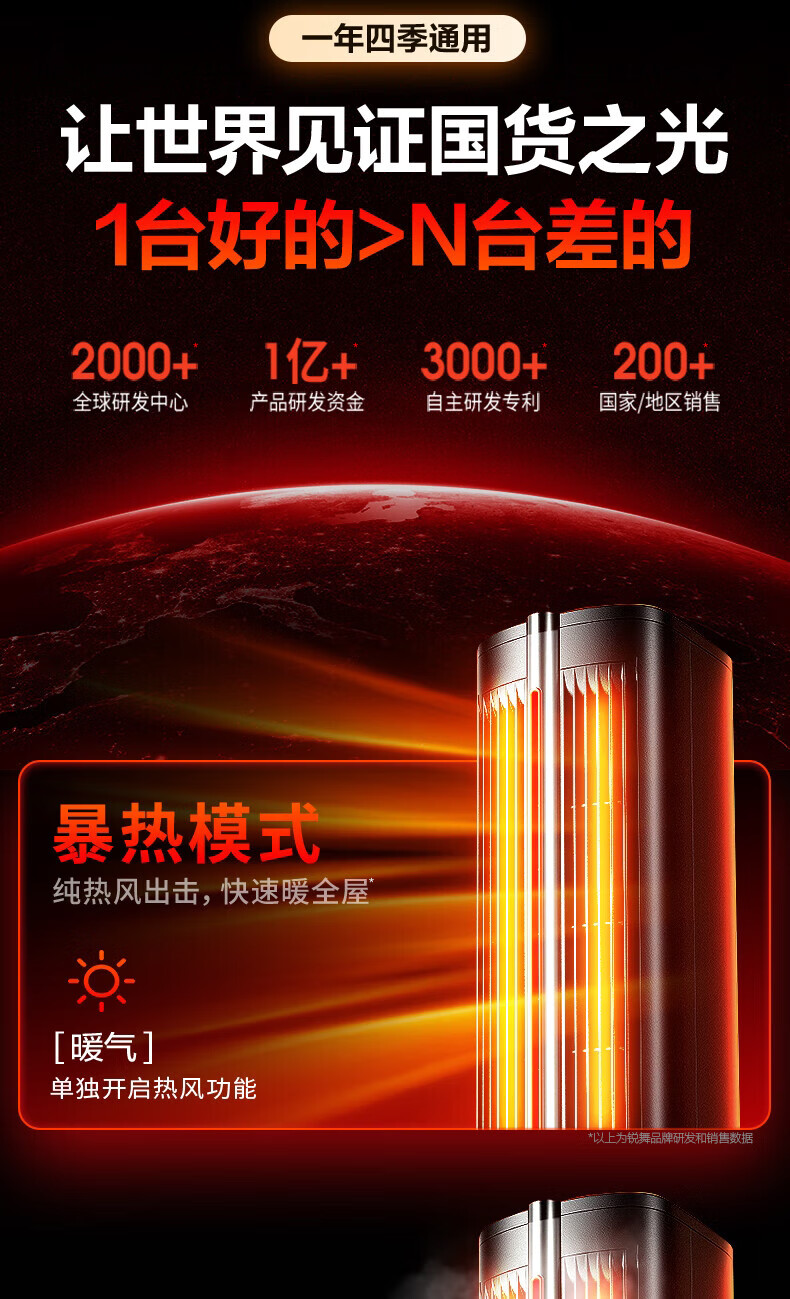 锐舞【2025年顶配|中央供暖加湿】取暖器暖风机电暖器石墨烯家用热风全屋大面积婴儿客厅升温神器