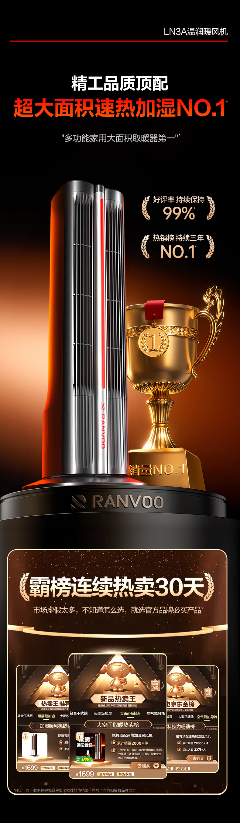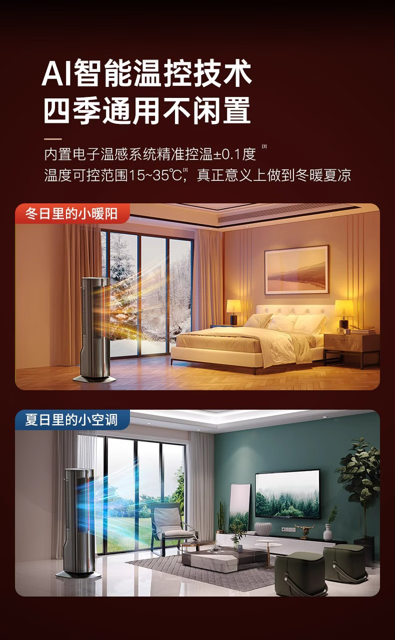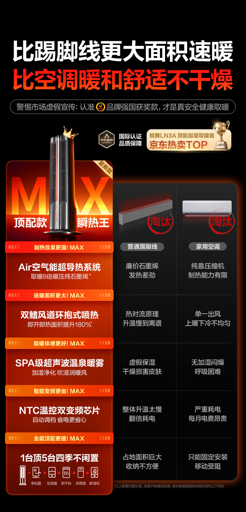锐舞【2025年顶配|中央供暖加湿】取暖器暖风机电暖器石墨烯家用热风全屋大面积婴儿客厅升温神器