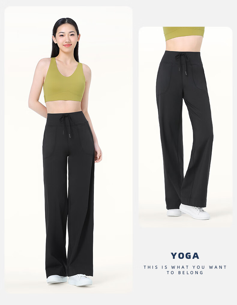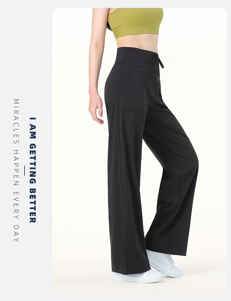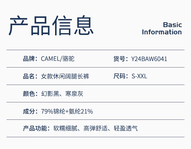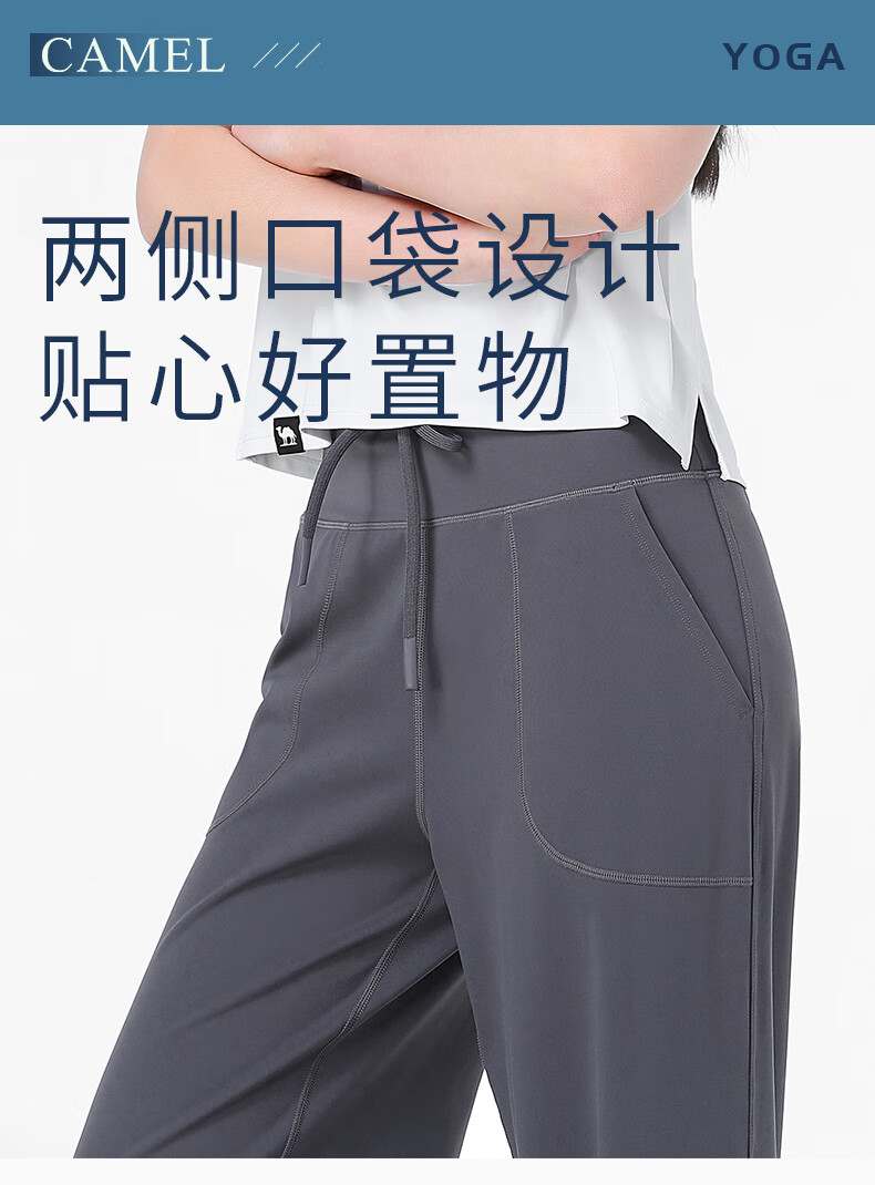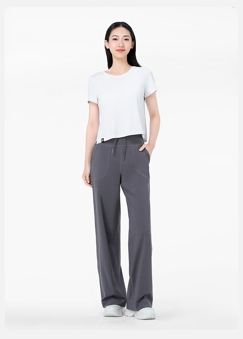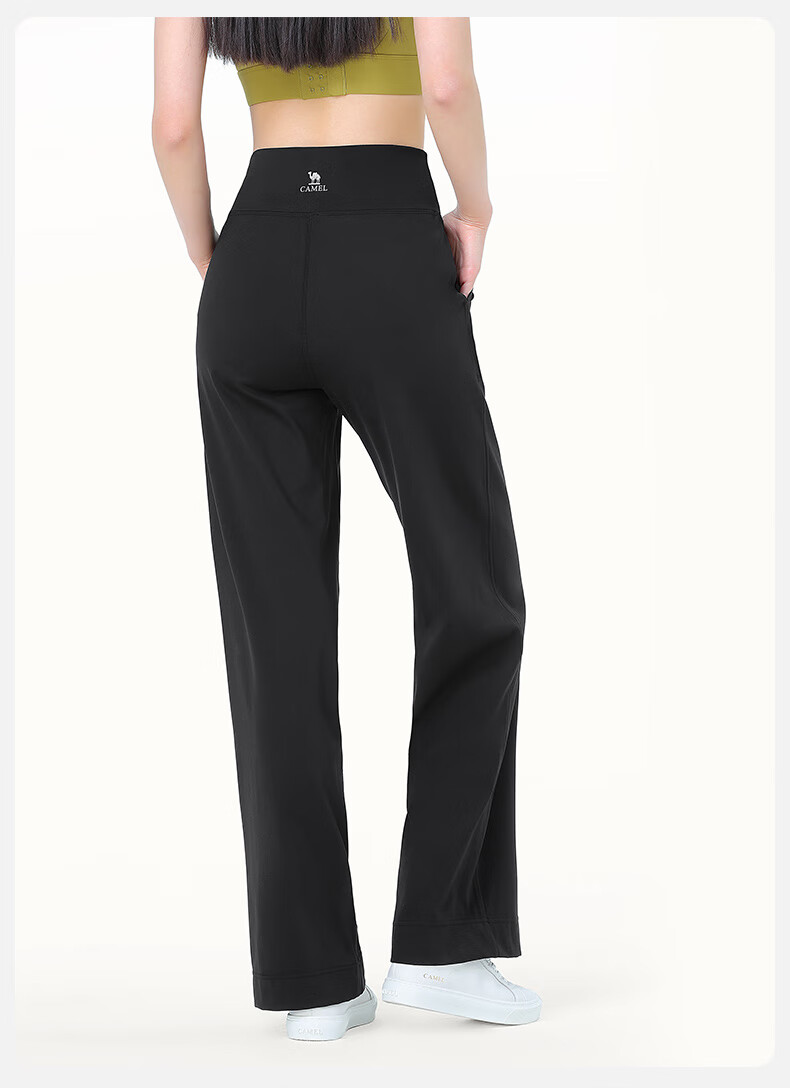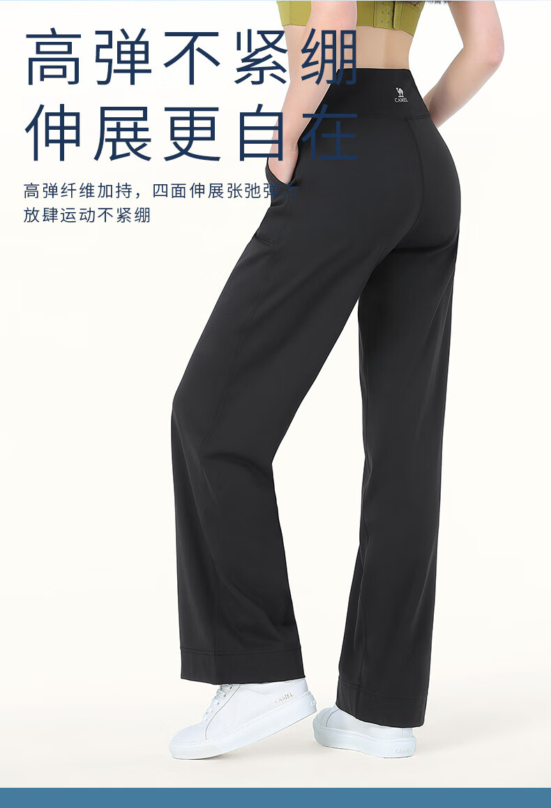 骆驼(CAMEL)显瘦阔腿裤女高腰弹力直筒运动裤 Y24BAWL6041 幻影黑 M