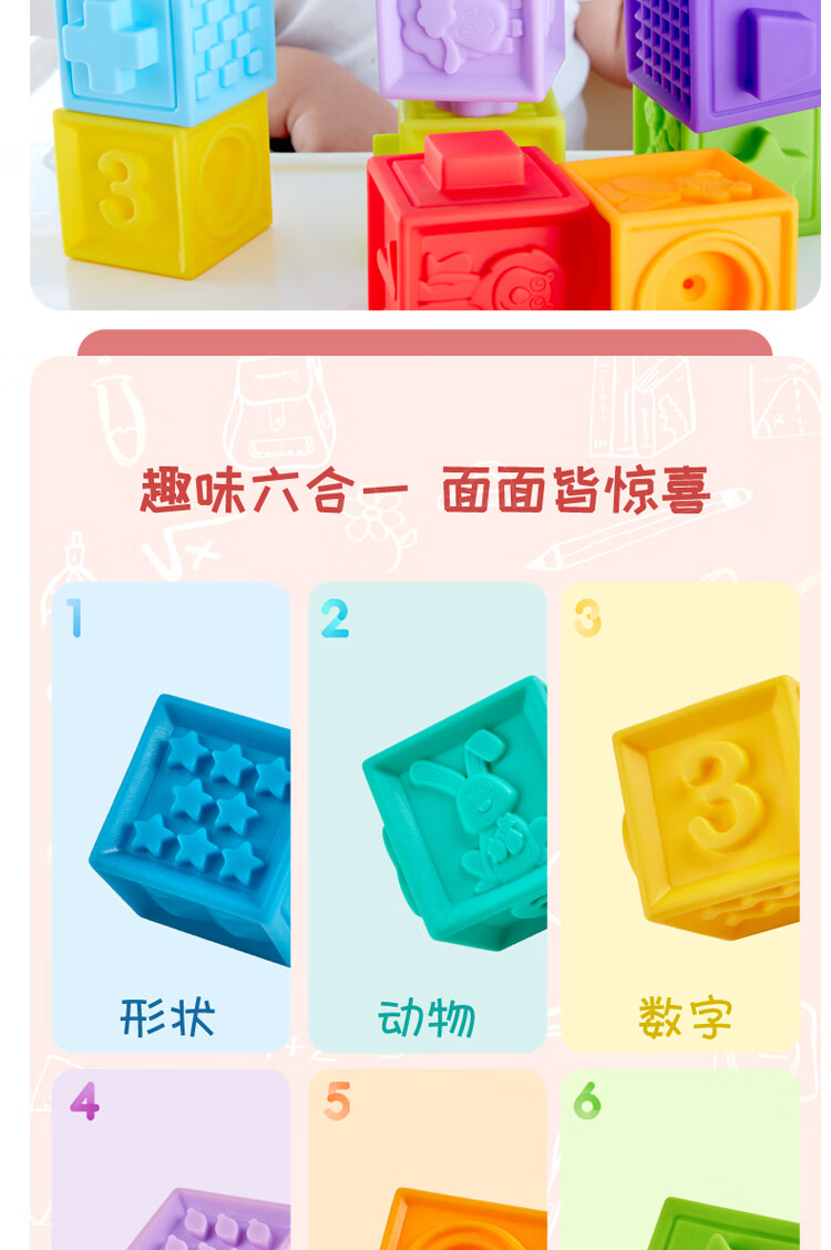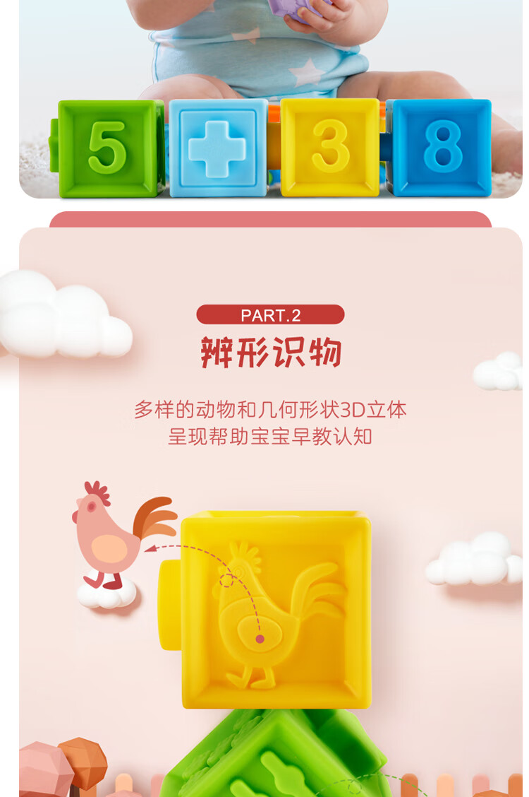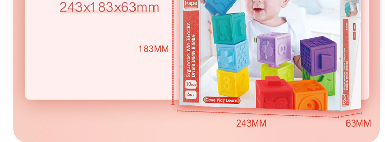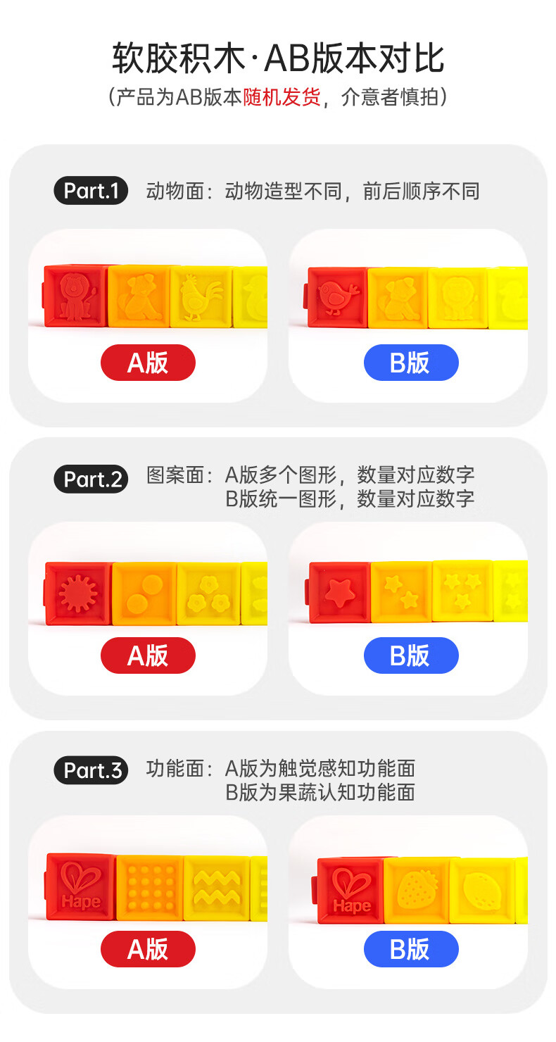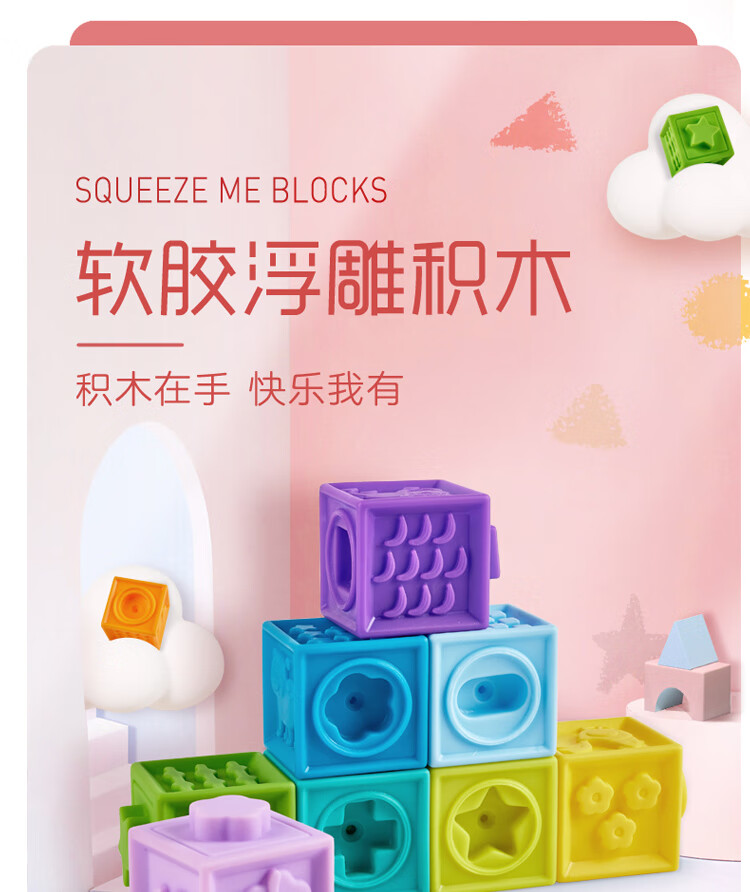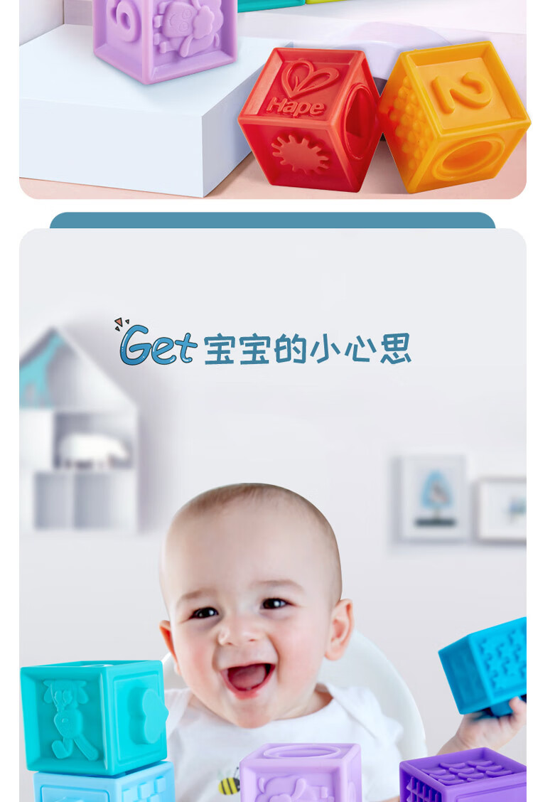 Hape婴儿捏捏乐安抚儿童玩具婴幼儿大颗粒软胶浮雕早教积木儿童节礼物