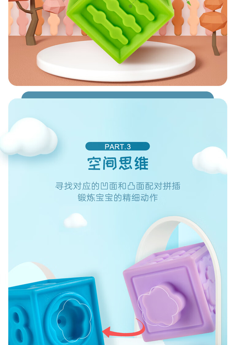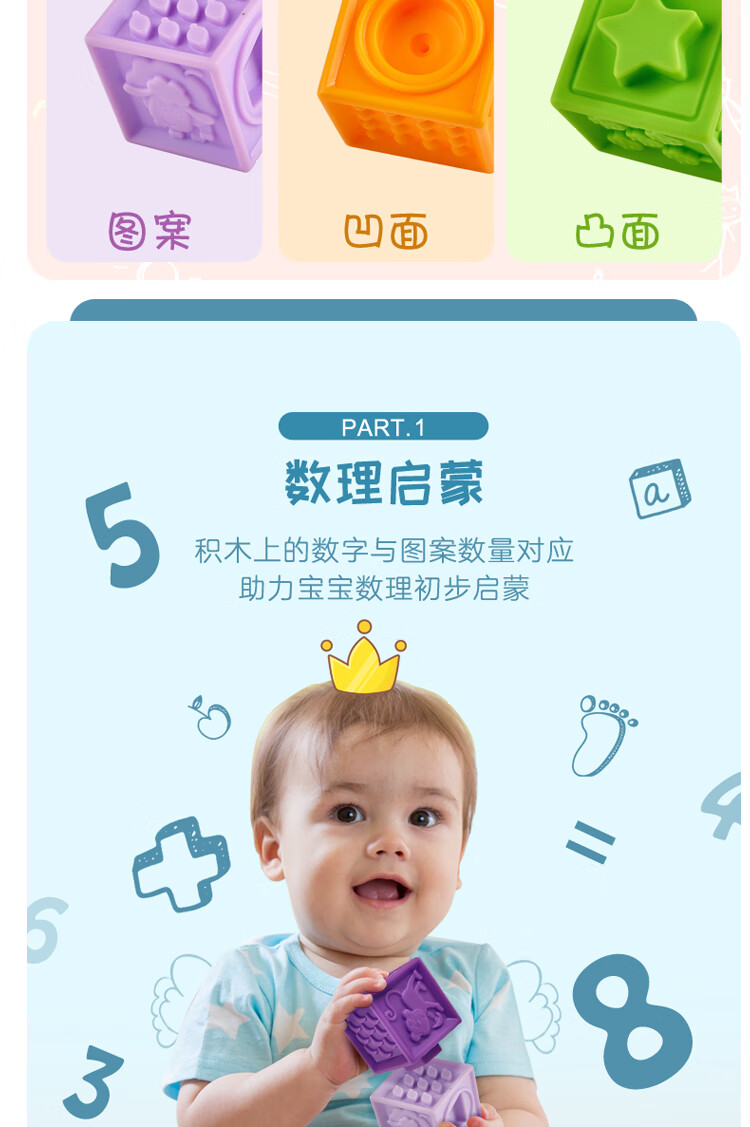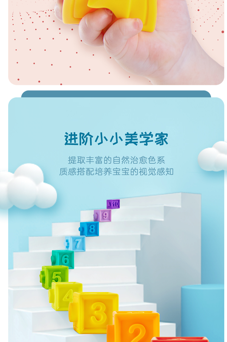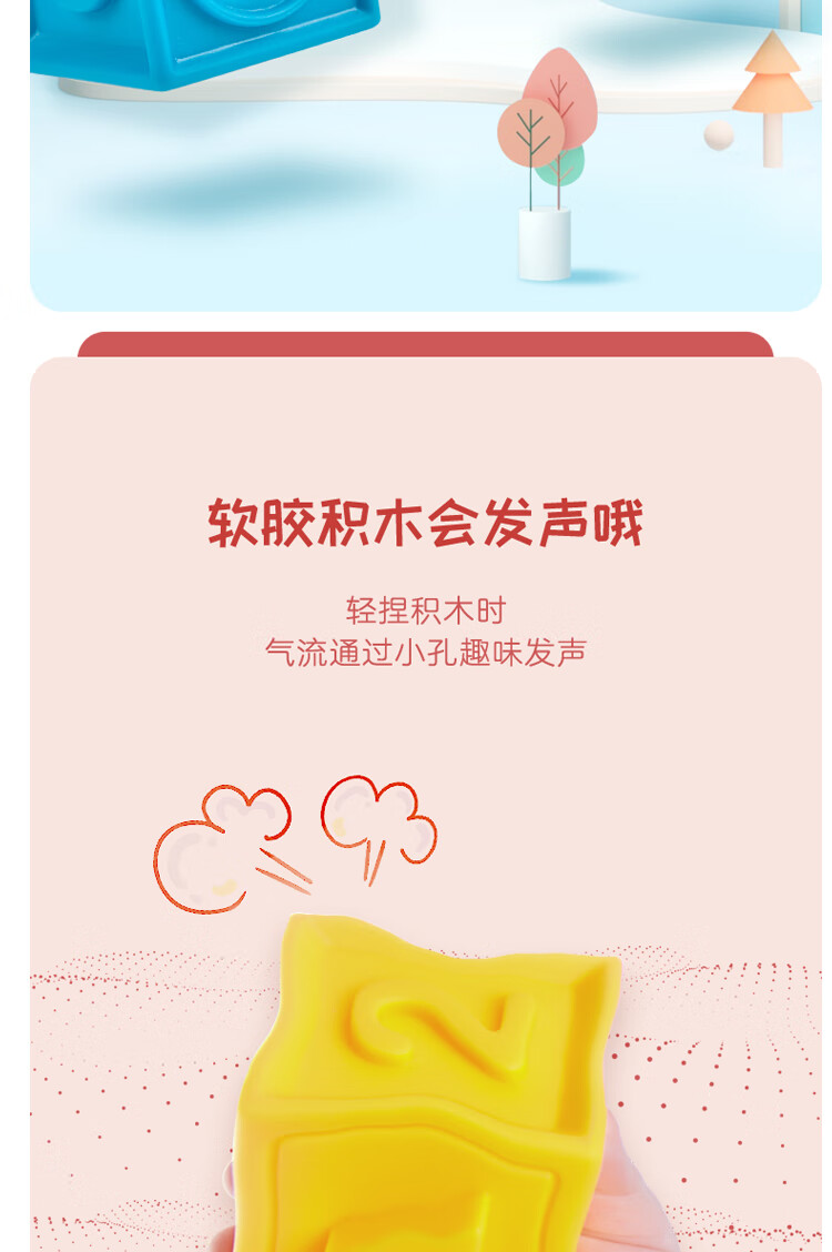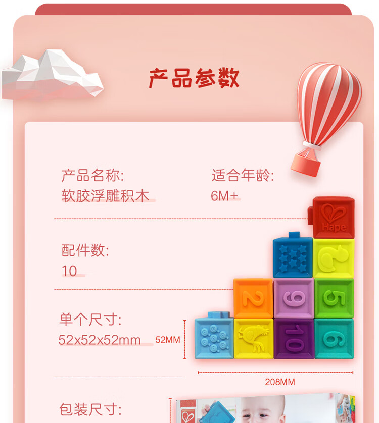 Hape婴儿捏捏乐安抚儿童玩具婴幼儿大颗粒软胶浮雕早教积木儿童节礼物