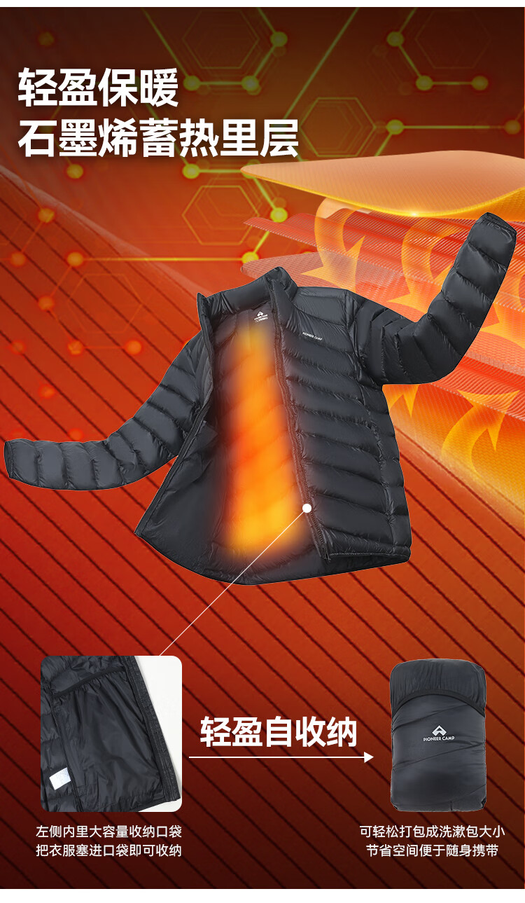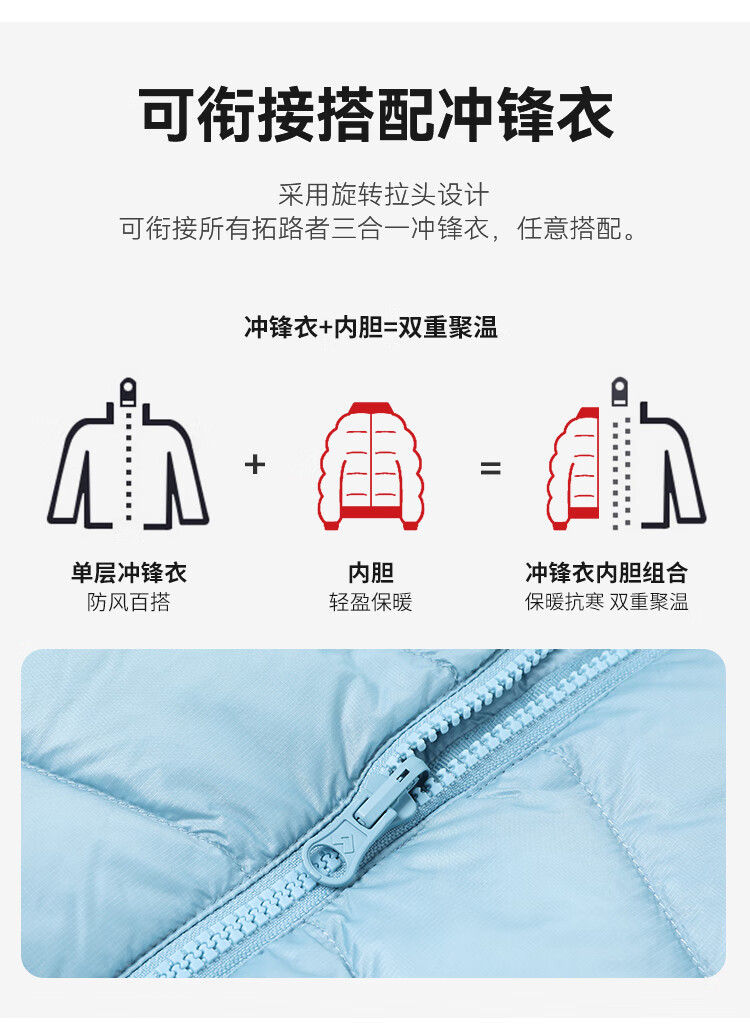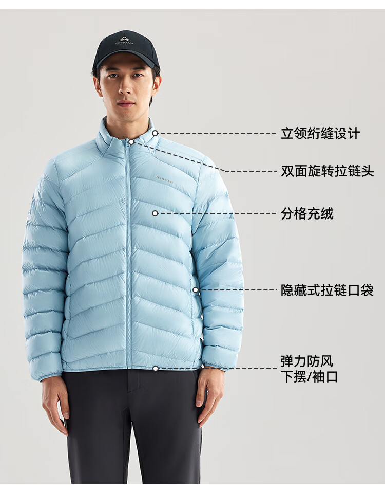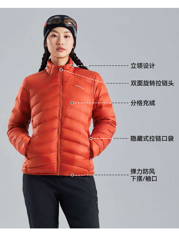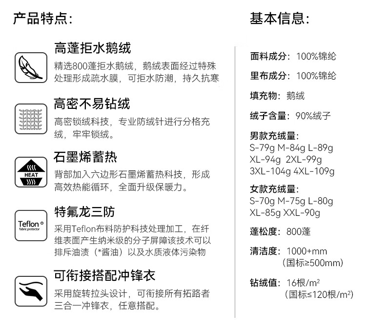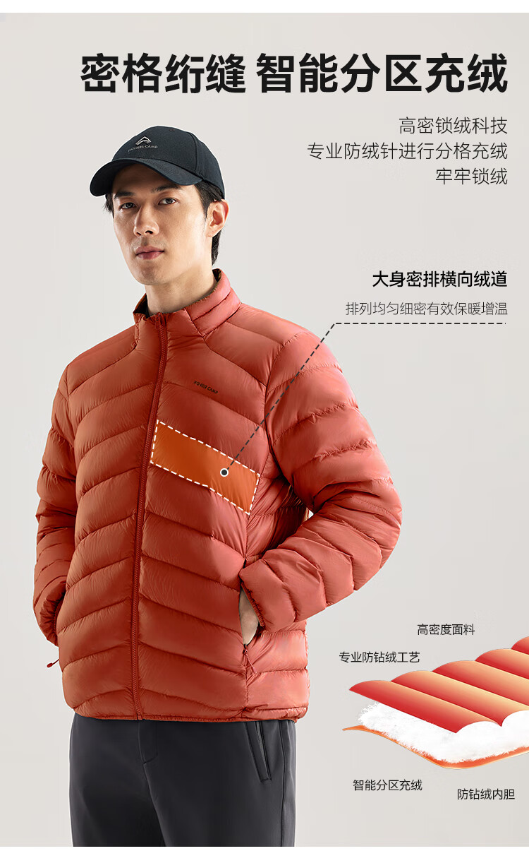 拓路者雪狐高蓬鹅绒服男立领排骨羽绒服秋冬季外套保暖冲锋衣内胆女户外 黑色-男 交叉衔线 XL