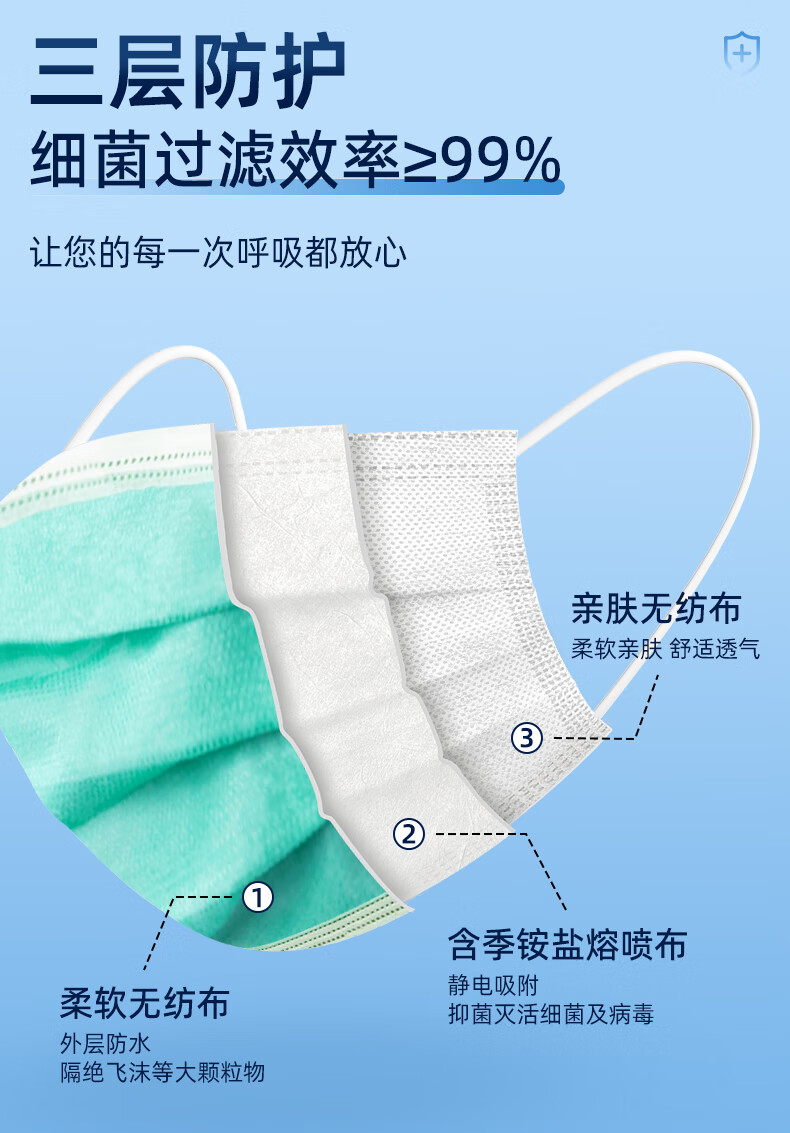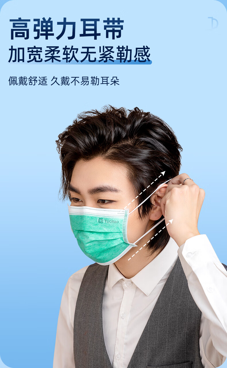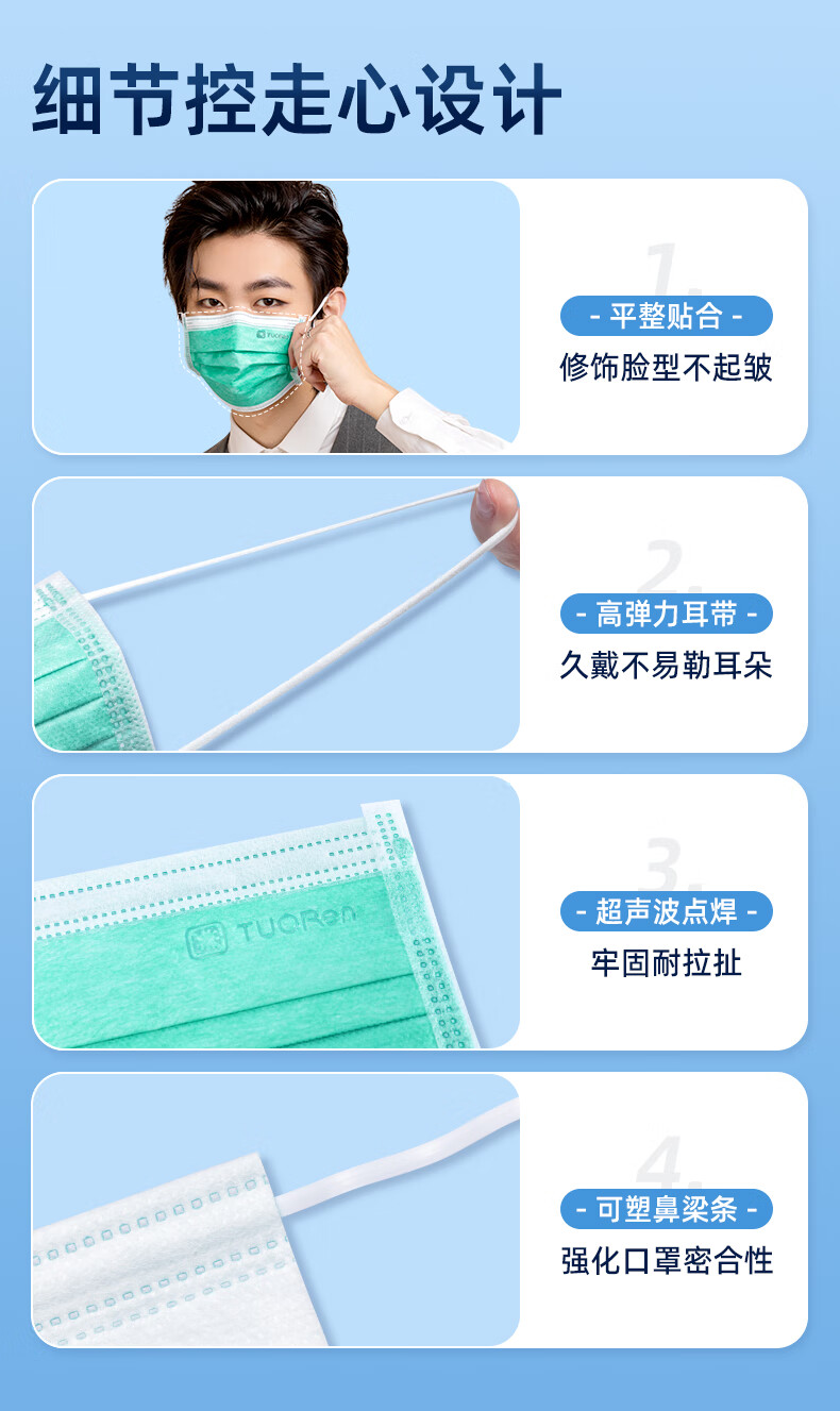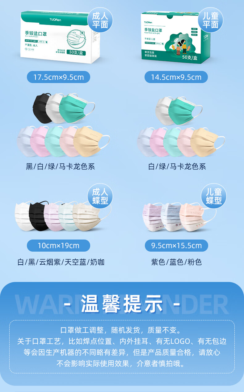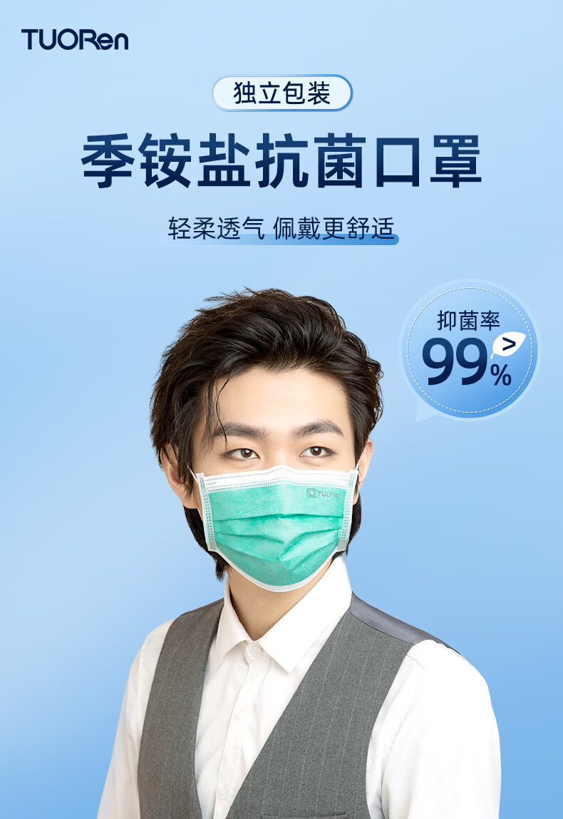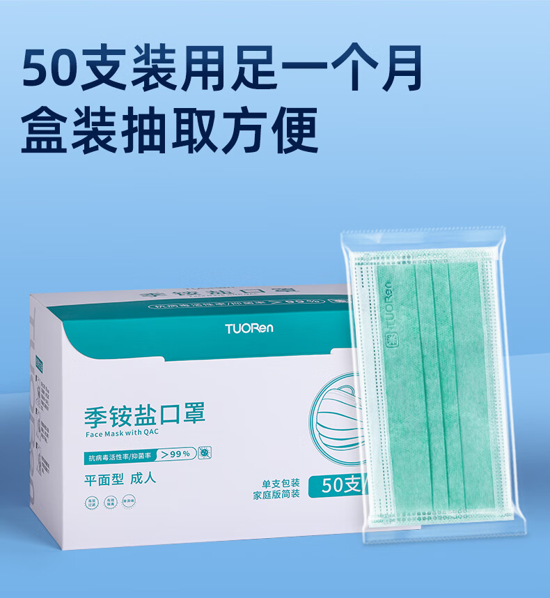 驼人康君季铵盐口罩一次性口罩防尘不勒耳成人儿童独立包装高颜值平面口罩 儿童+平面+白色 【2盒共100支独立精装】