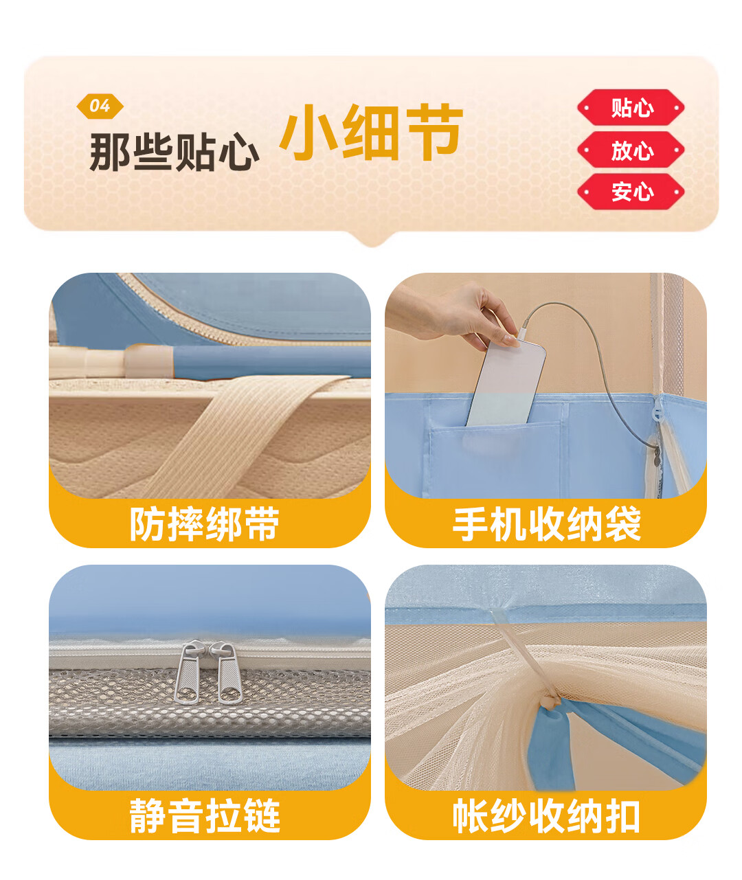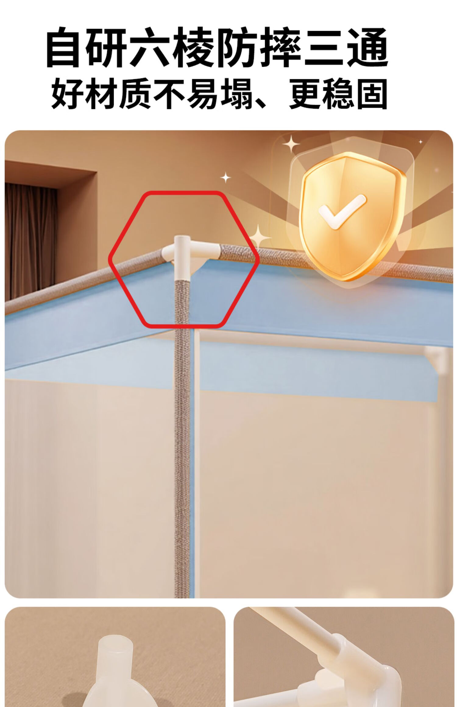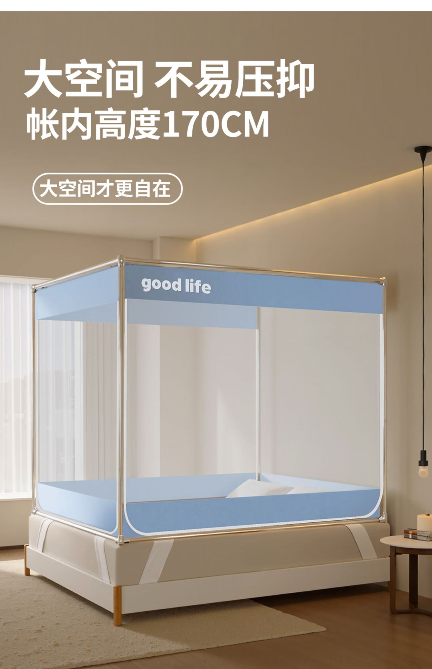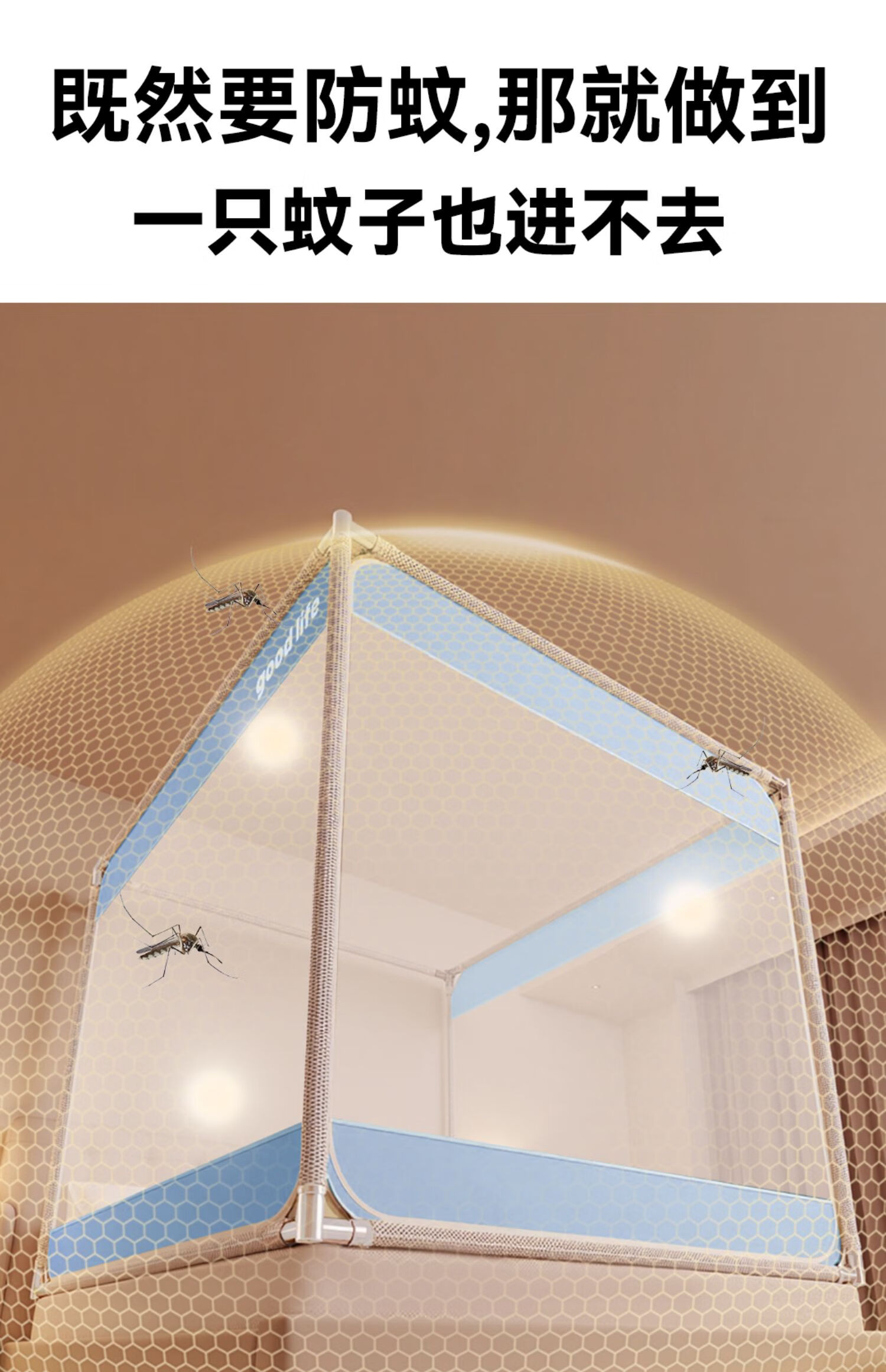 高睿蒙古包蚊帐家用卧室防摔纹帐儿童全罩式婴儿防掉床免安装2025新款 光年蓝(抗菌帐纱) 150cm*200cm*170cm 【烤漆支架】