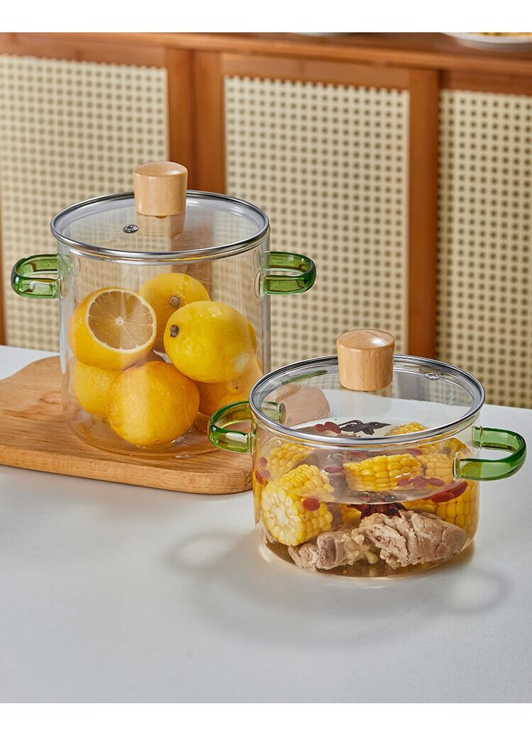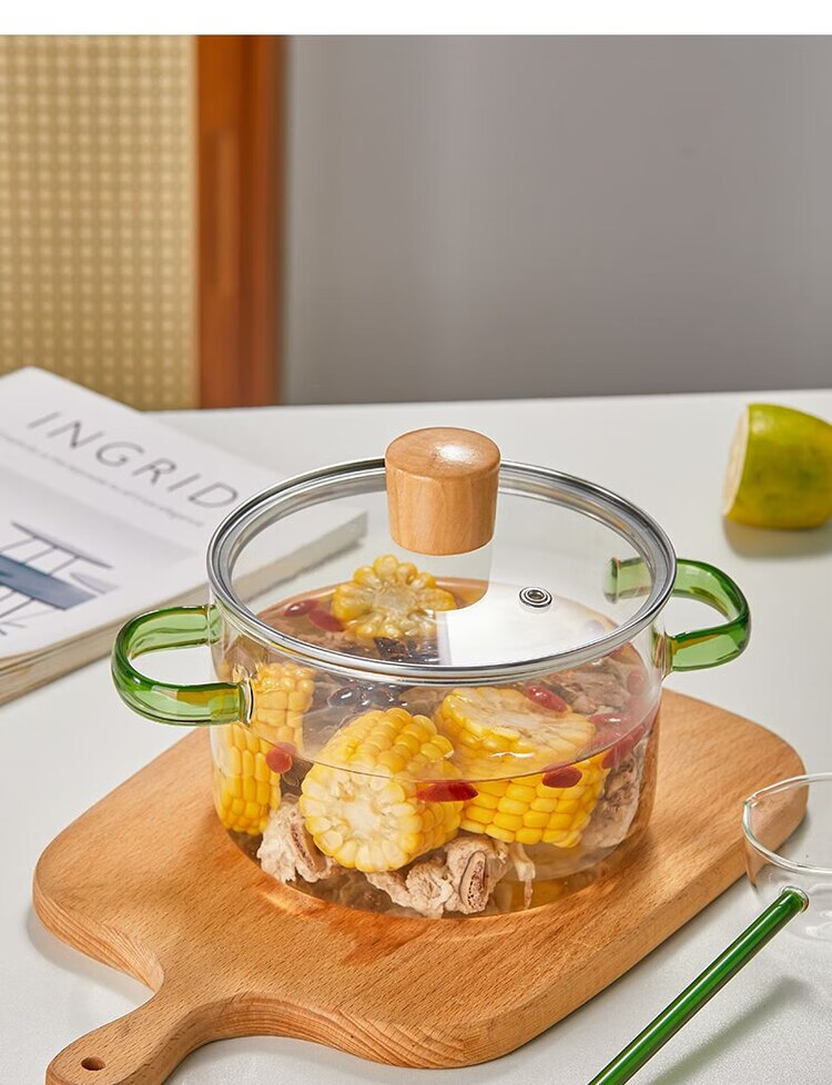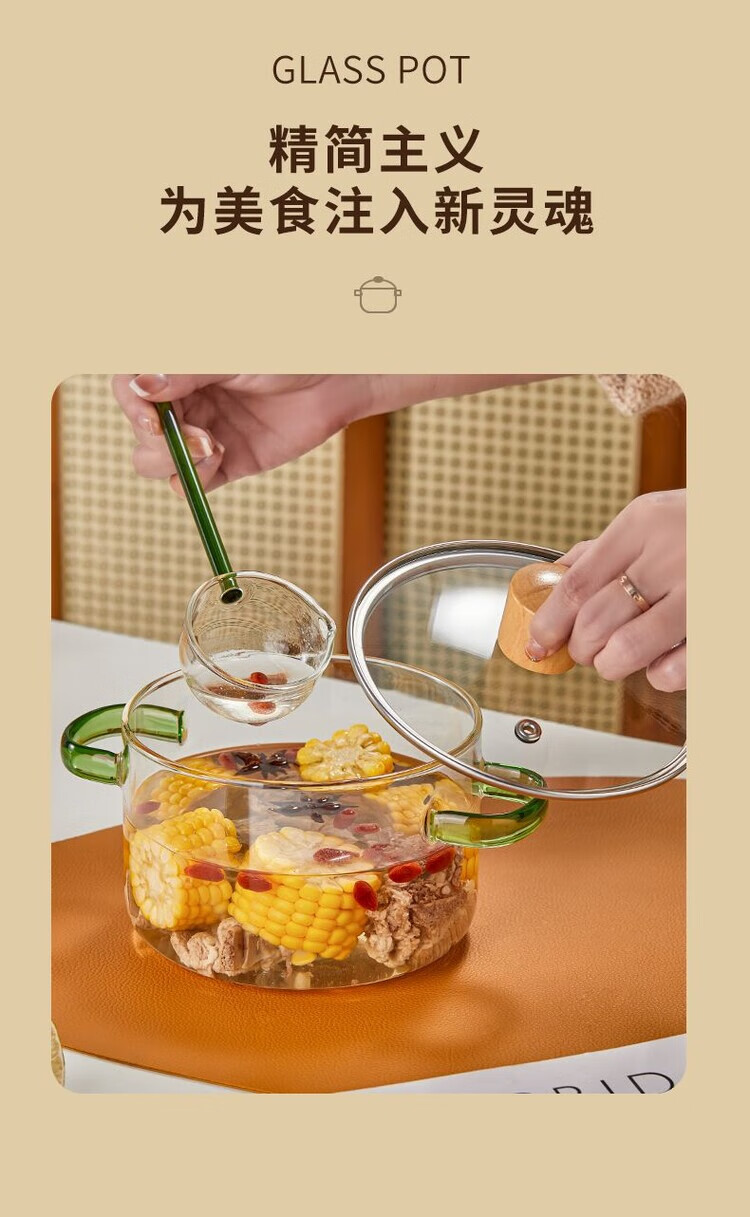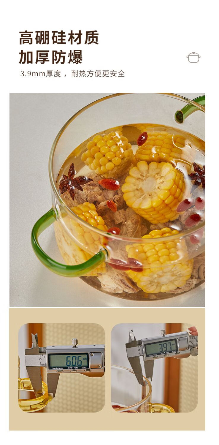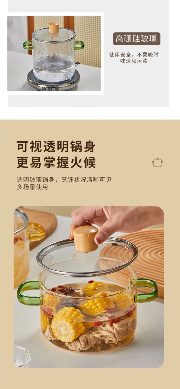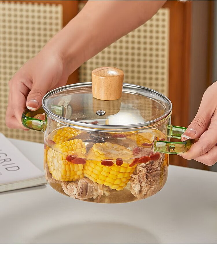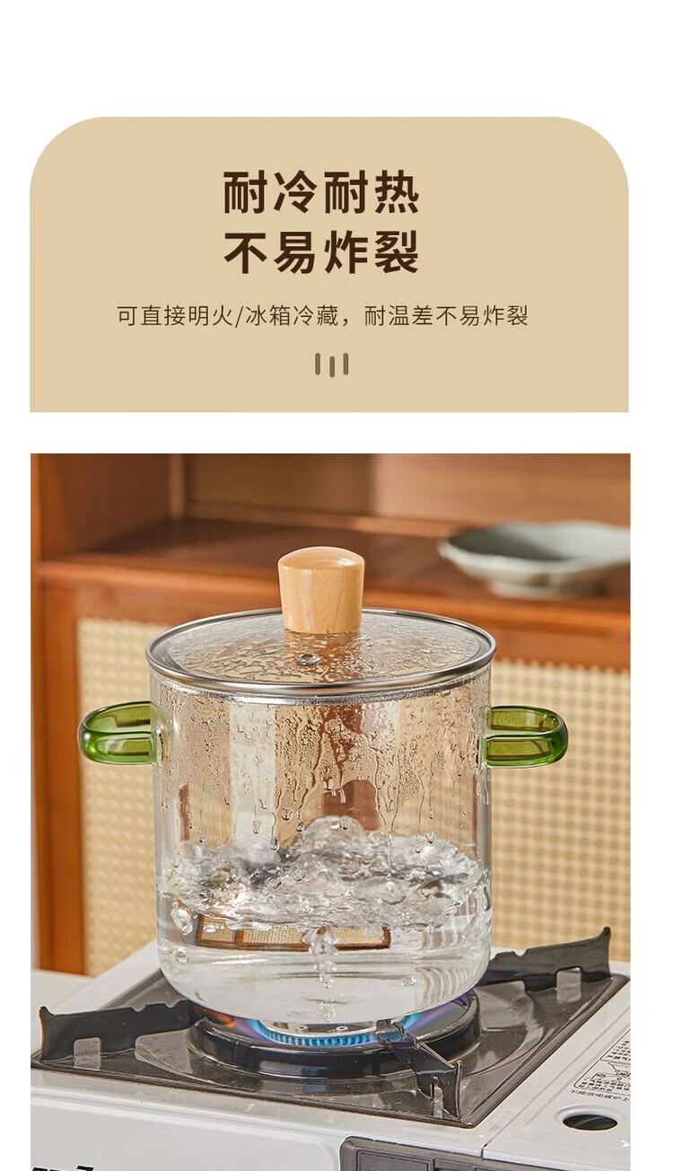 花沐禧高硼硅玻璃锅耐热可明火家用小火锅汤锅米粥锅电陶炉可用玻璃汤锅 墨绿把手(破损包赔) 1cm 1-2人加厚款+木顶盖