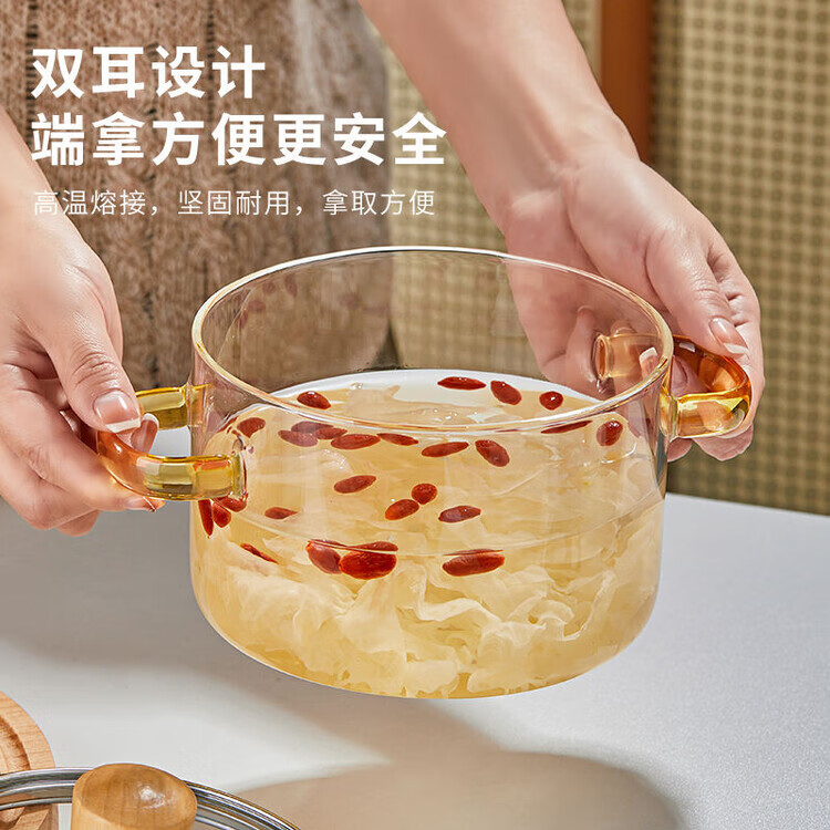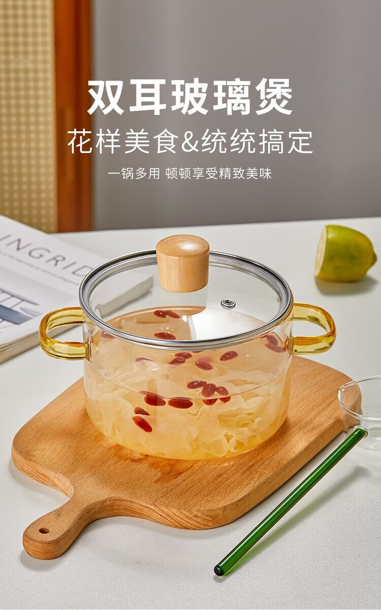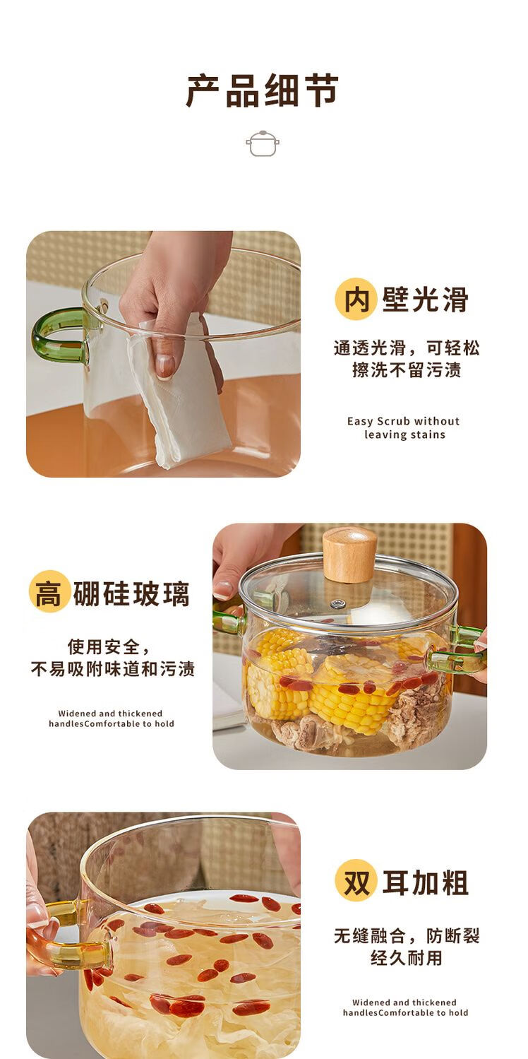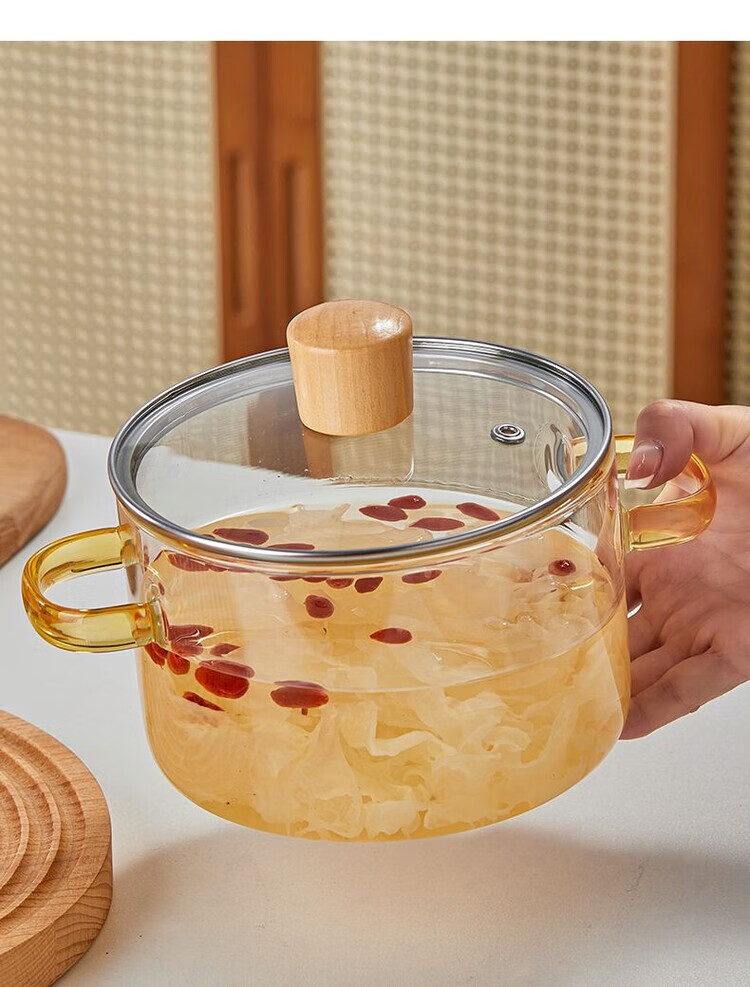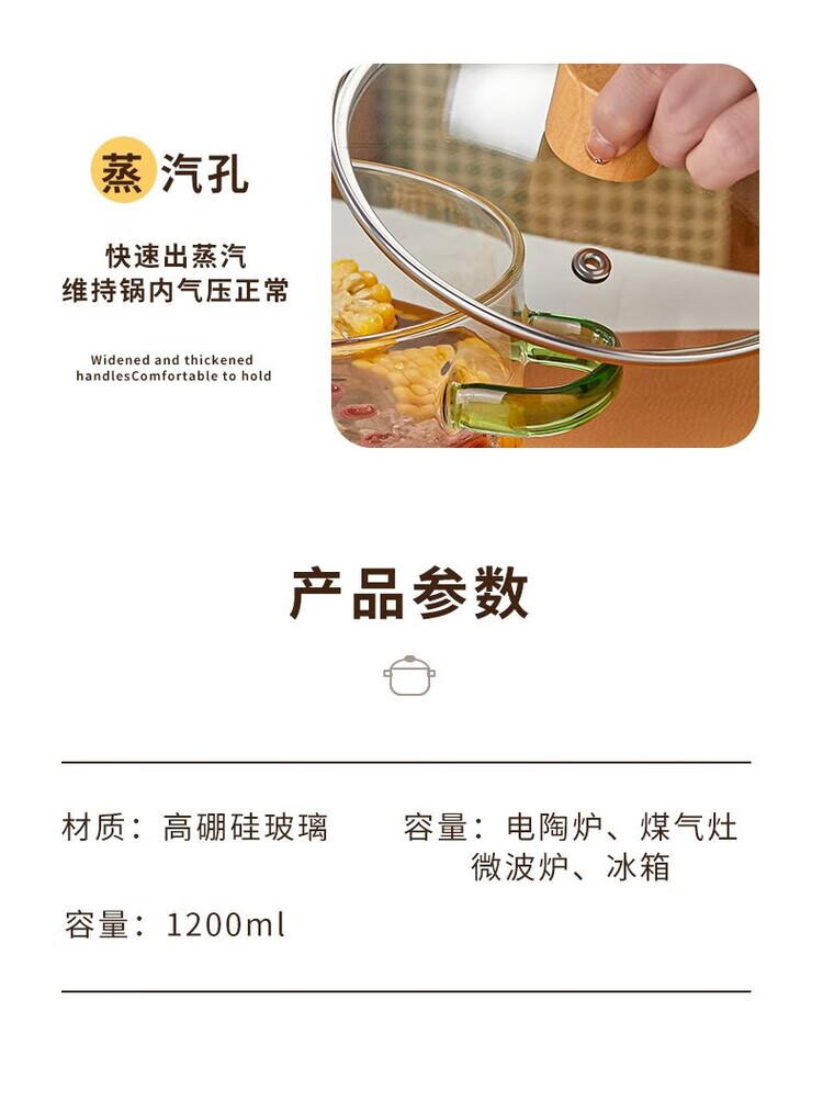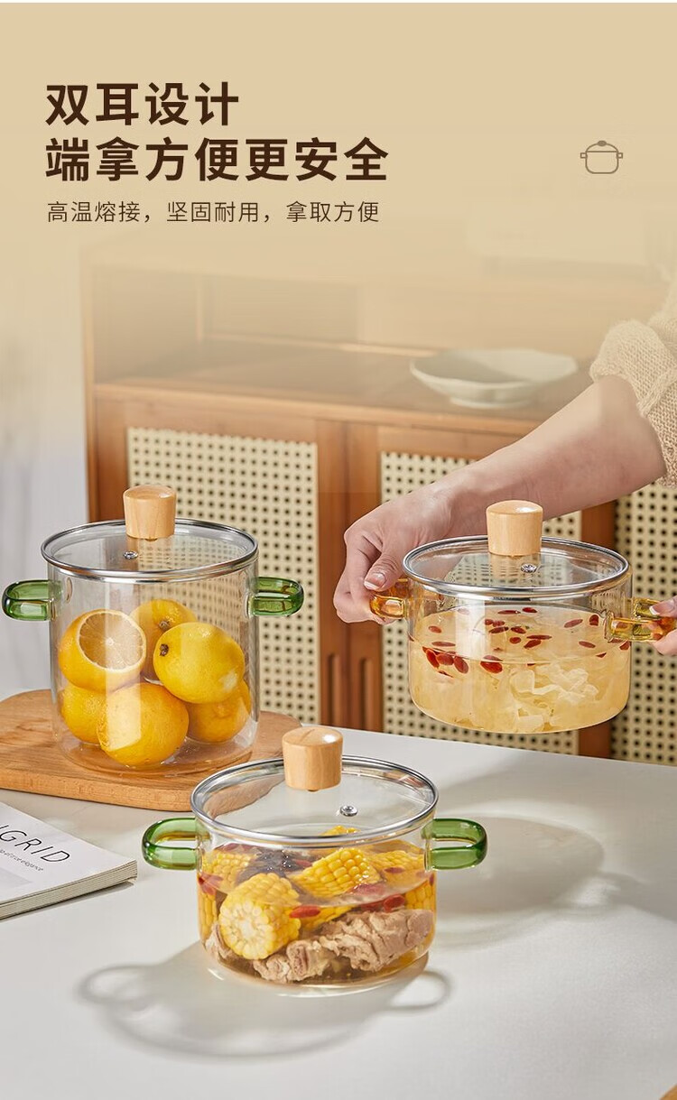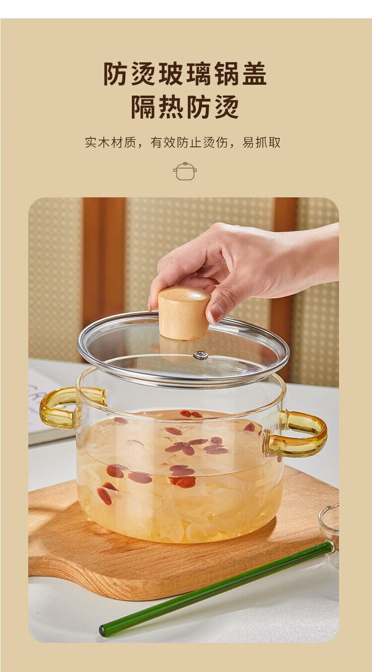 花沐禧高硼硅玻璃锅耐热可明火家用小火锅汤锅米粥锅电陶炉可用玻璃汤锅 墨绿把手(破损包赔) 1cm 1-2人加厚款+木顶盖