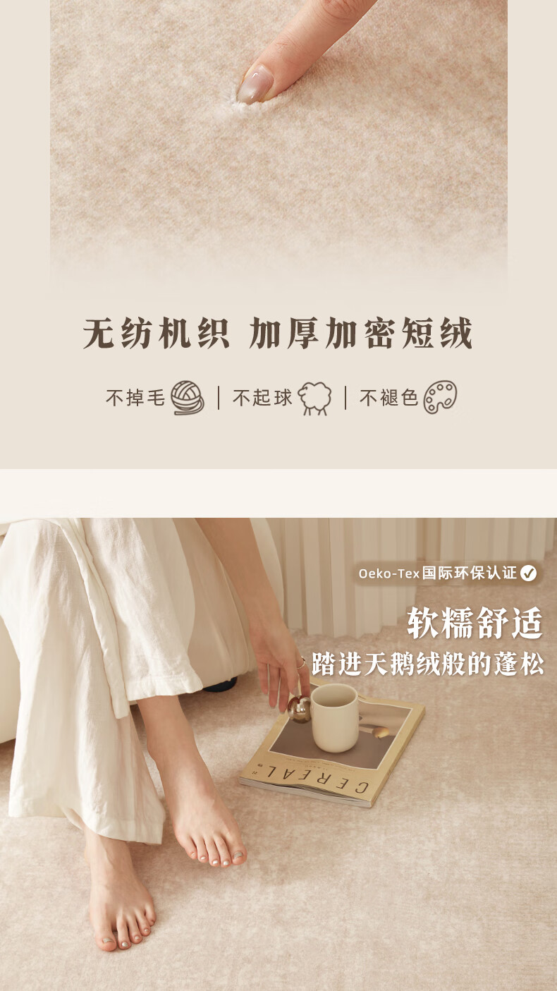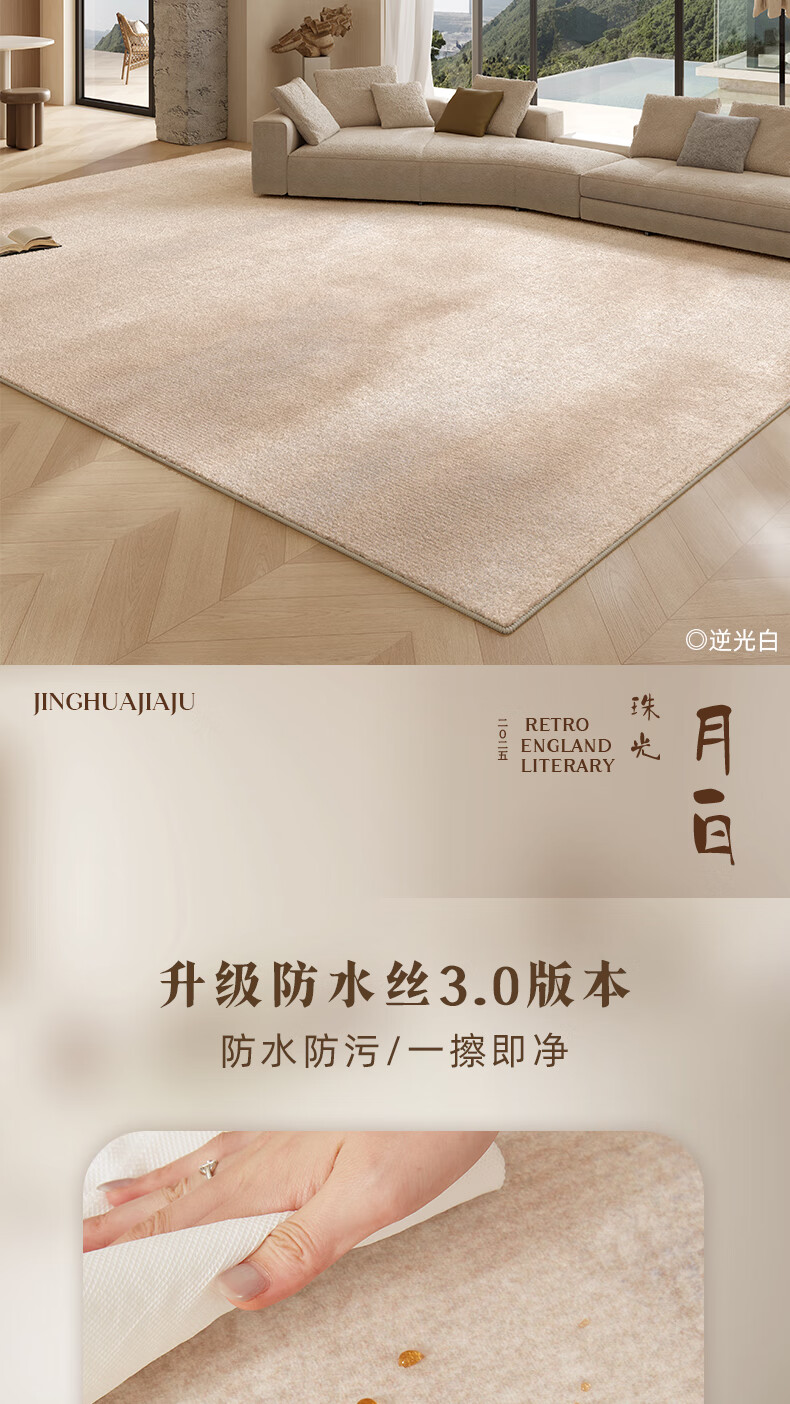 京华地毯客厅2025新款现代轻奢奶油风高级感免洗可擦防水防污家用地垫 沙洲 200*340CM适合中大户型客厅