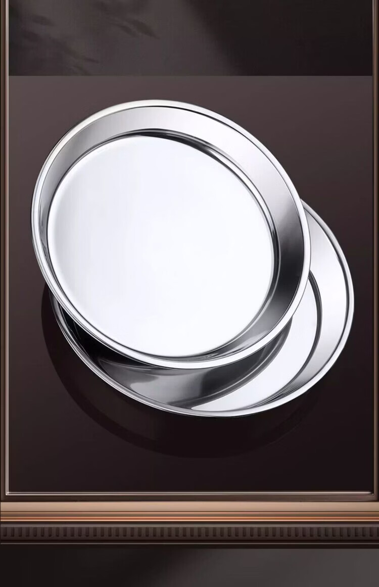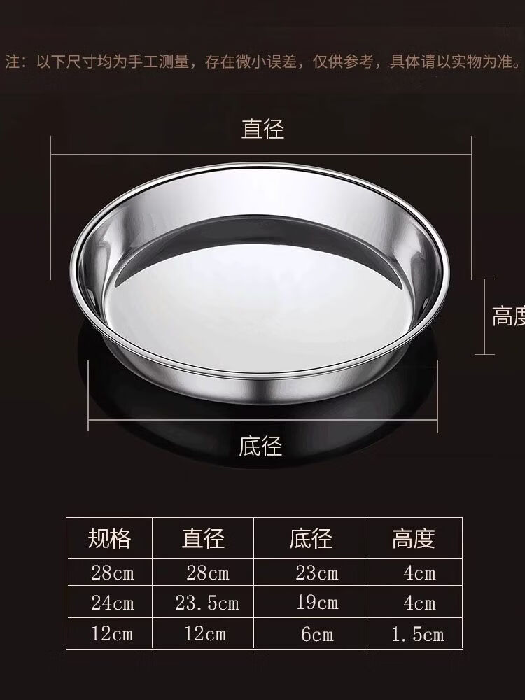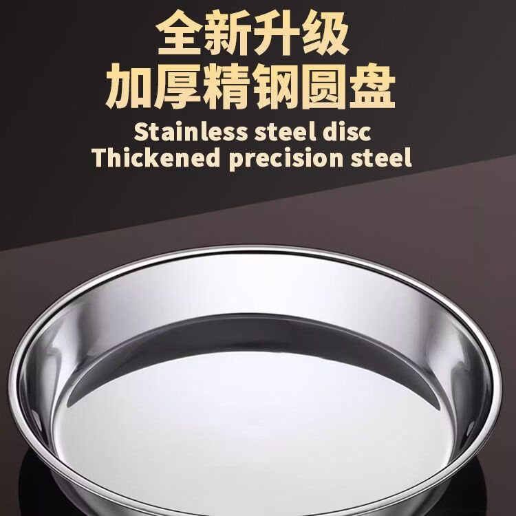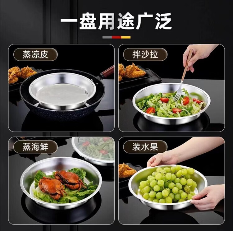咏夏不锈钢凉皮蒸盘圆盘子加厚大号平底托盘多功能不粘凉皮锣锣通用型 平底防粘24cm【一个装】