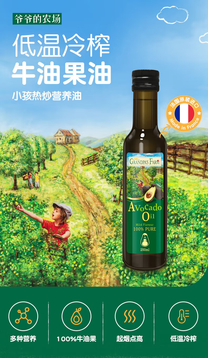爷爷的农场宝宝辅食油 宝宝儿童辅食油热炒凉拌冷轧进口营养食用油 特级橄榄油500ml