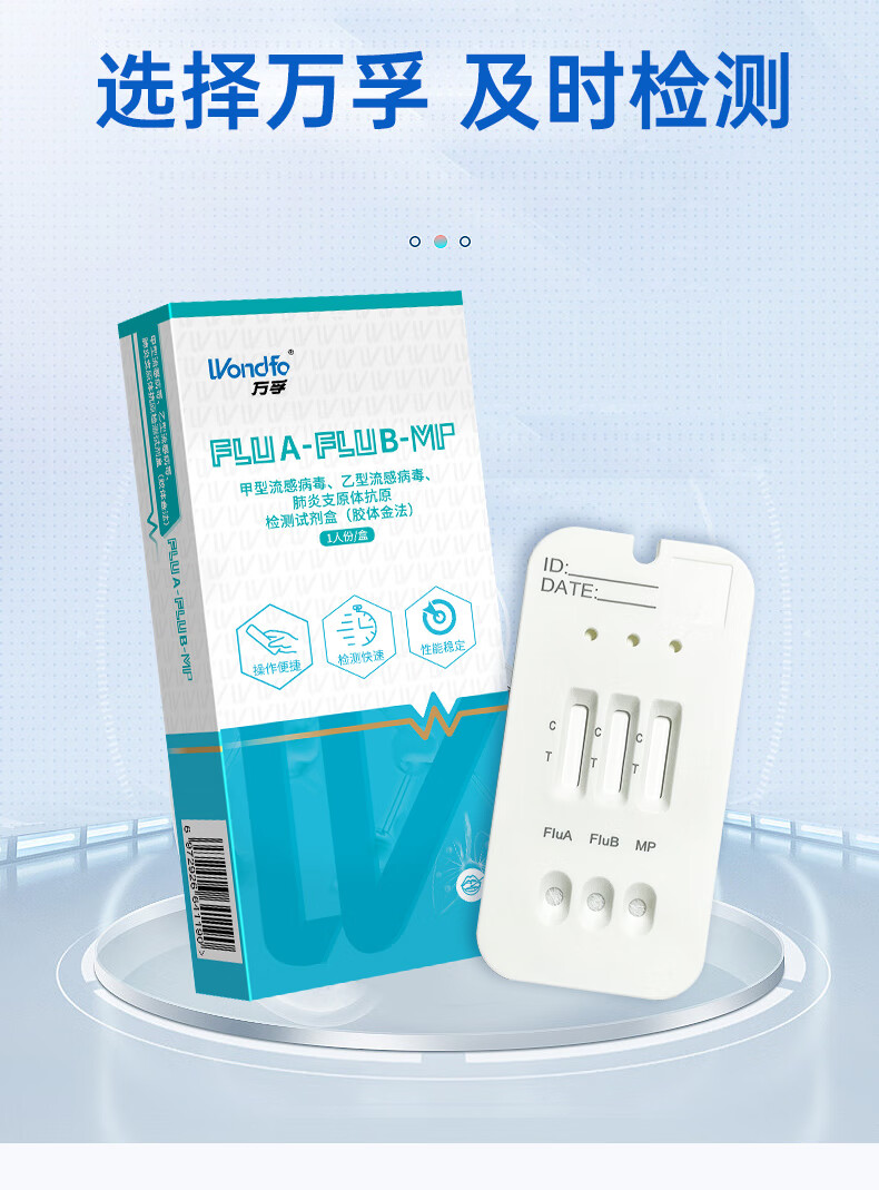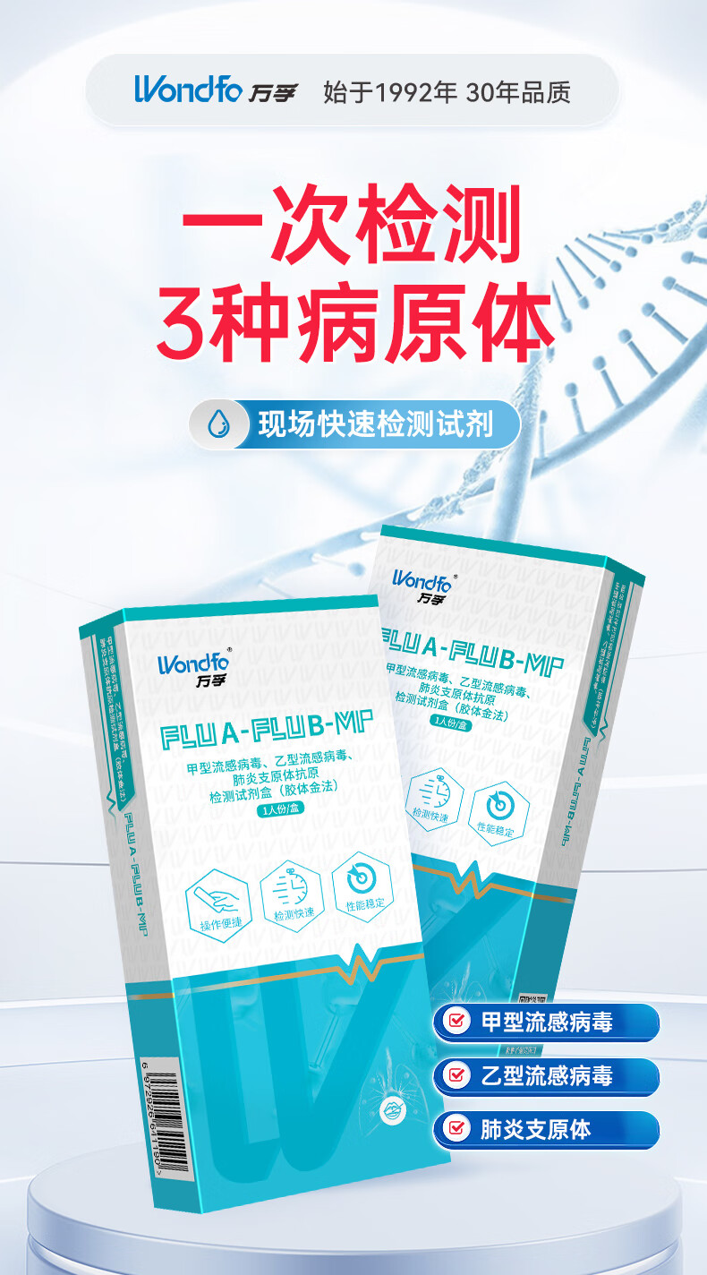 万孚甲流乙流支原体试剂盒三合一 肺炎流感抗原检测检测盒 非合胞病毒