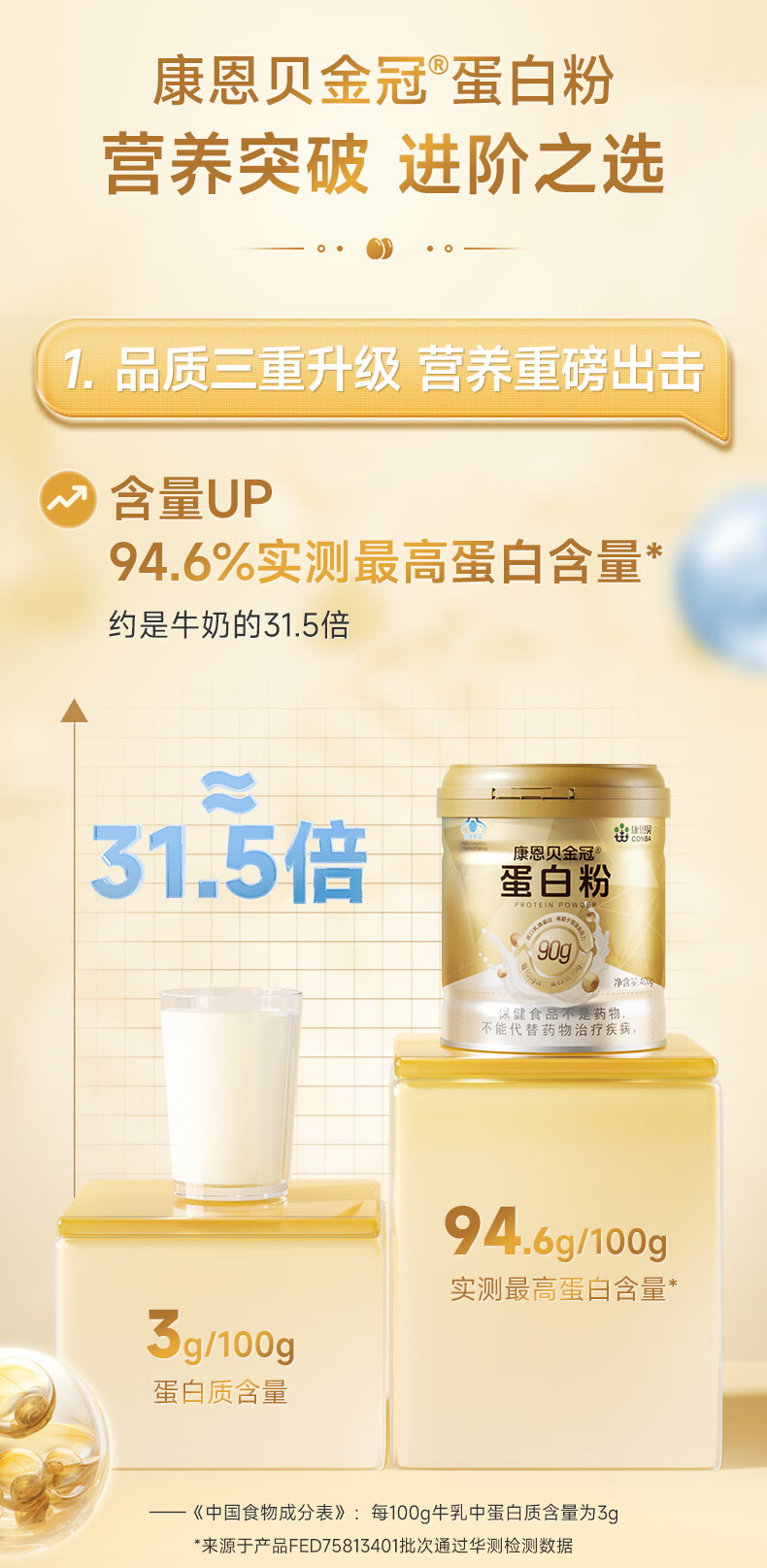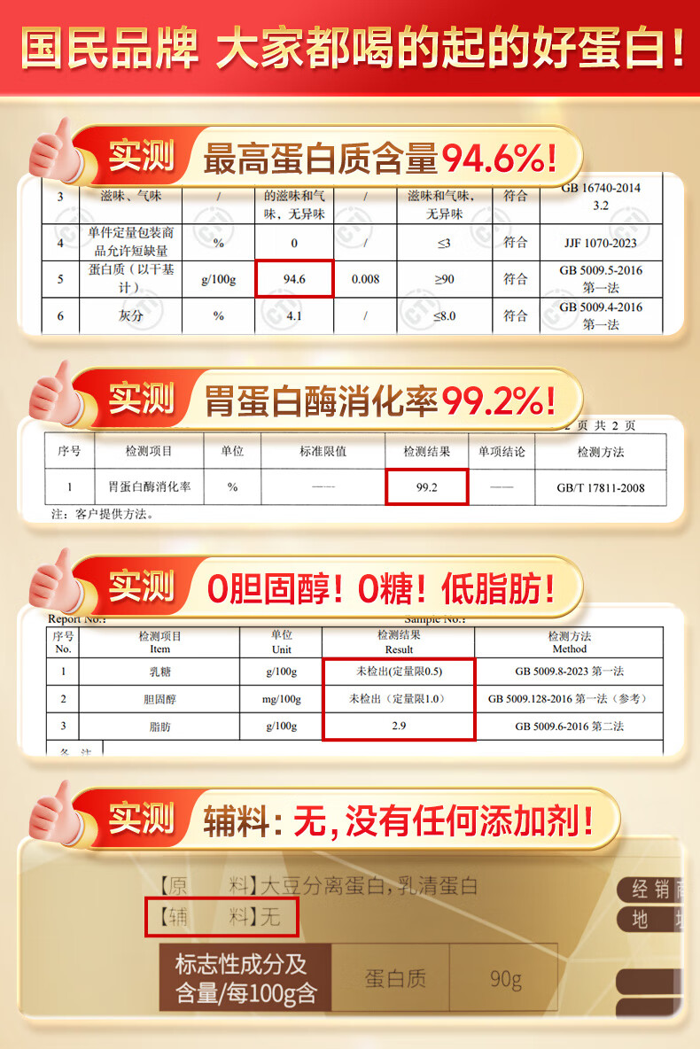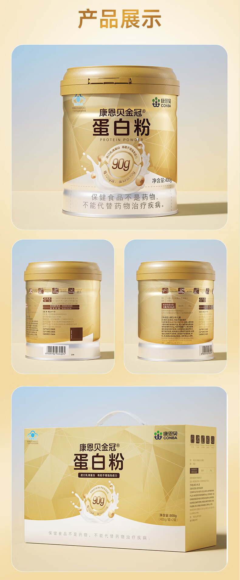 康恩贝金冠蛋白粉800g礼盒 乳清蛋白成人有助于增强免疫力双蛋白90%含量