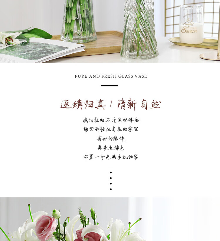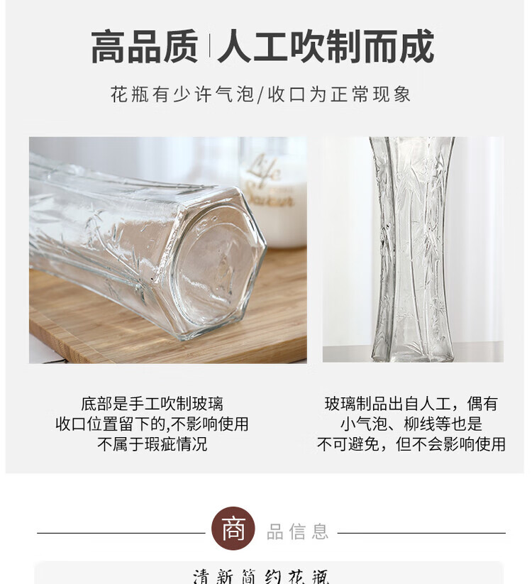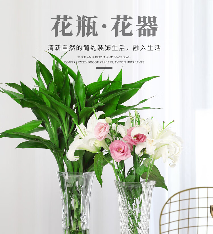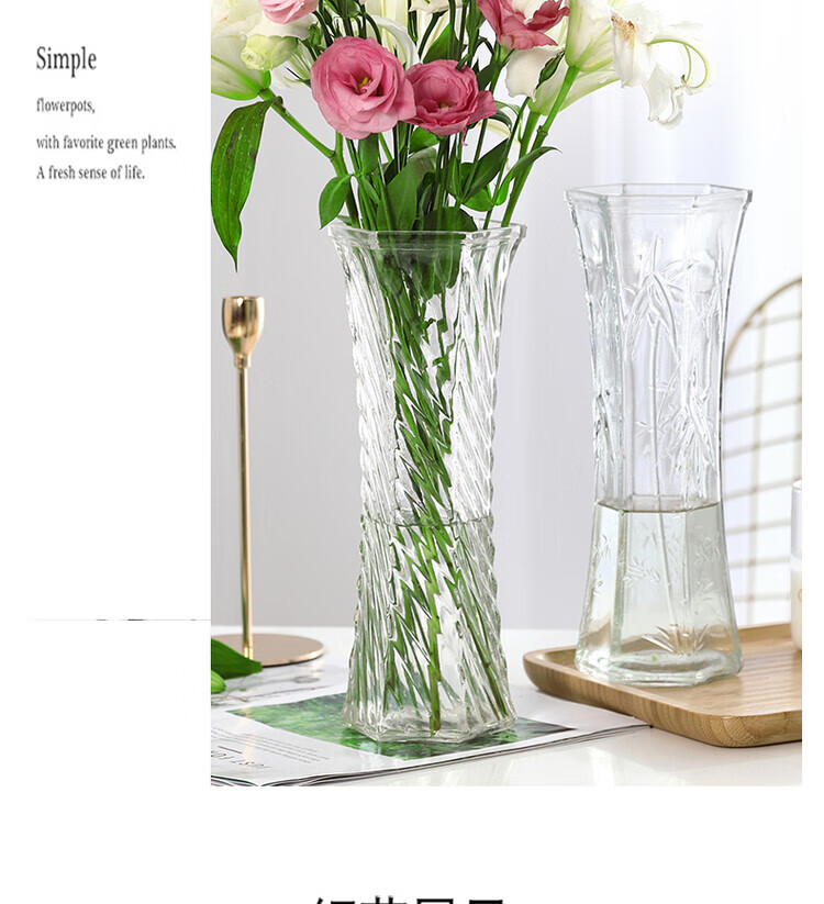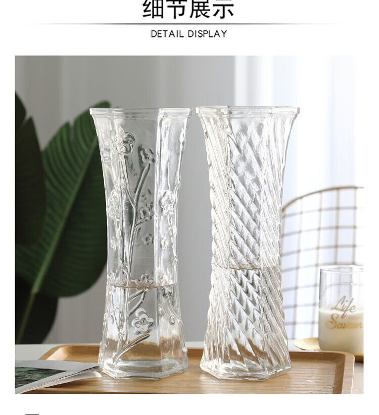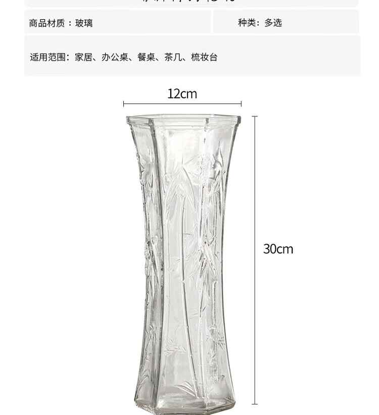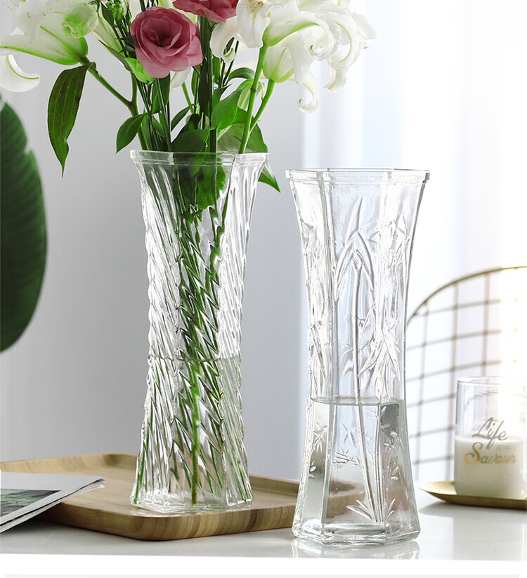 OYKTN【两件套】特大号玻璃花瓶透明水养富贵竹花瓶客厅家用插花瓶摆件 30六角(斜纹款) 大
