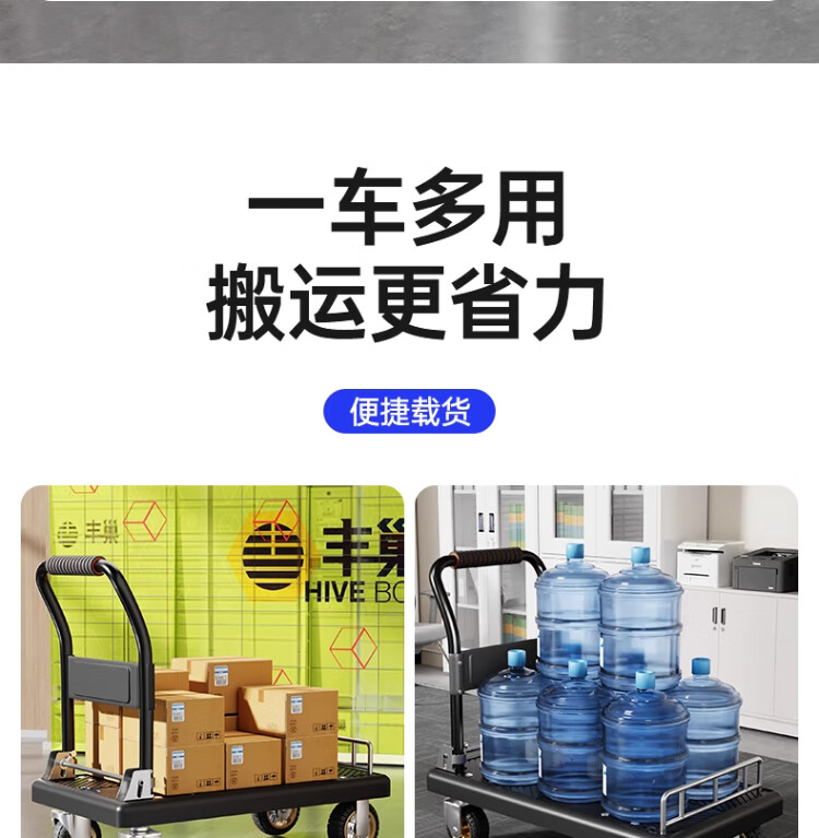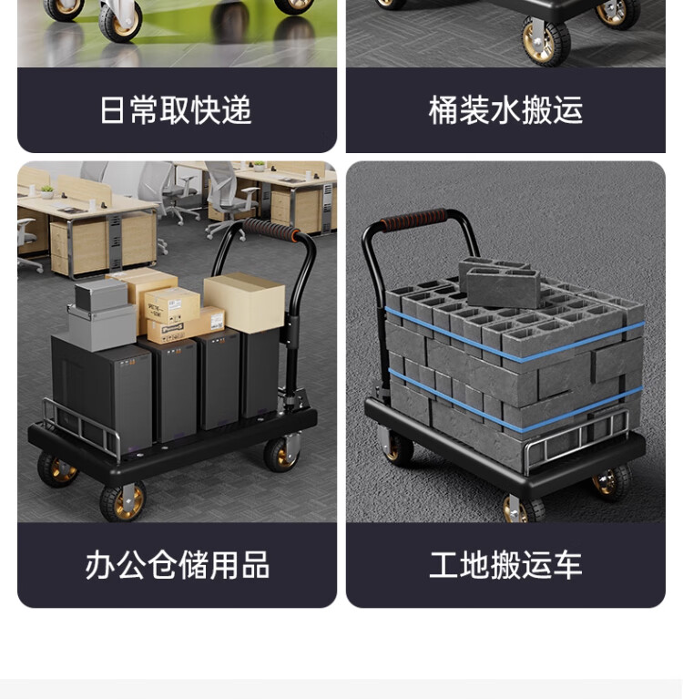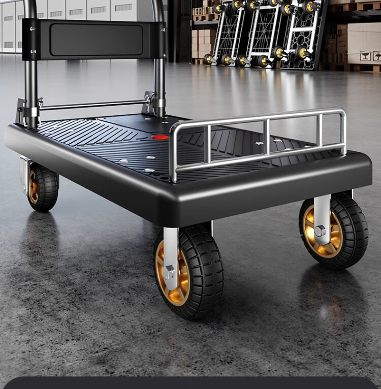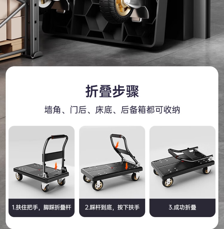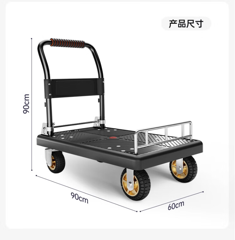 衣炫小推车拉货手推车手拉车便携搬运轻便拖车折叠平板车取快递小拉车 【90*60黑色】5寸烽火轮+2根钢管加固
