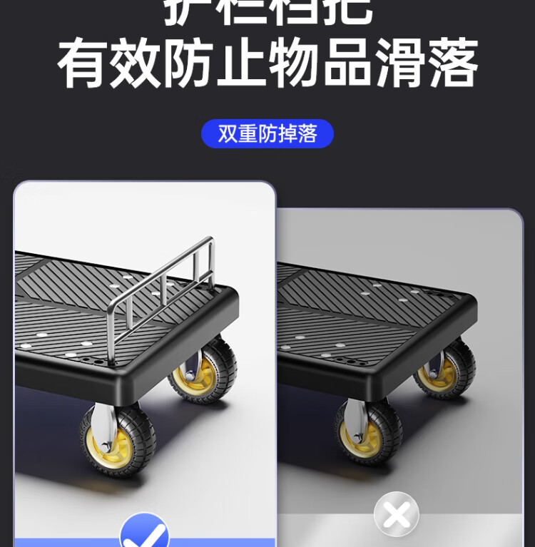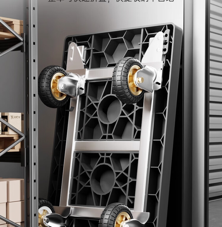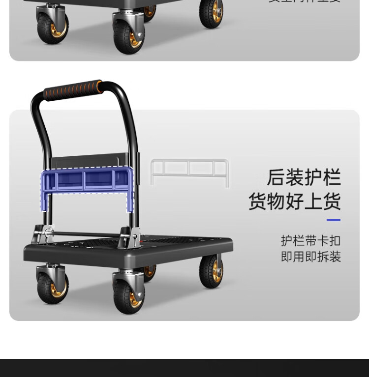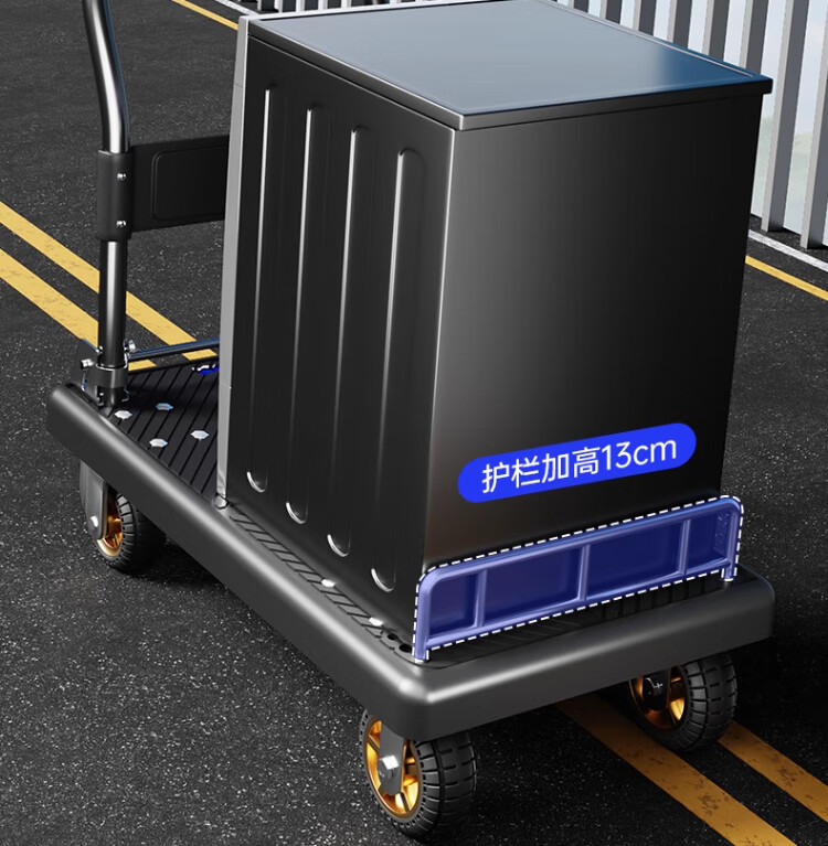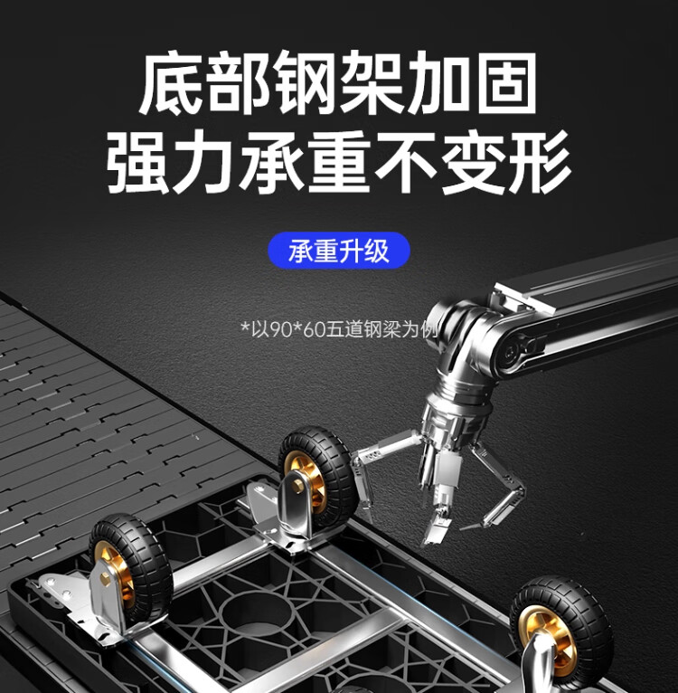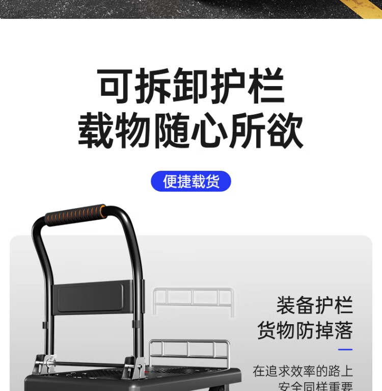 衣炫小推车拉货手推车手拉车便携搬运轻便拖车折叠平板车取快递小拉车 【90*60黑色】5寸烽火轮+2根钢管加固