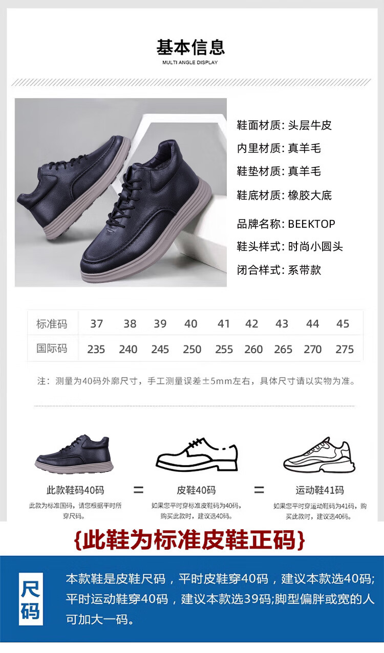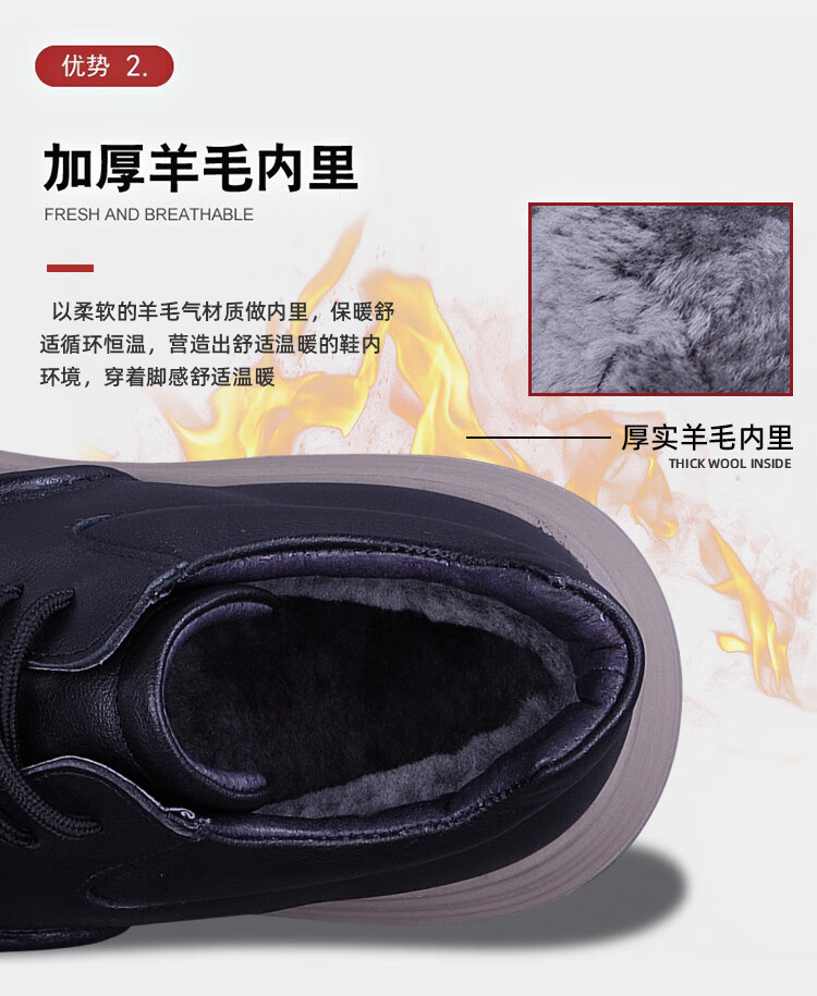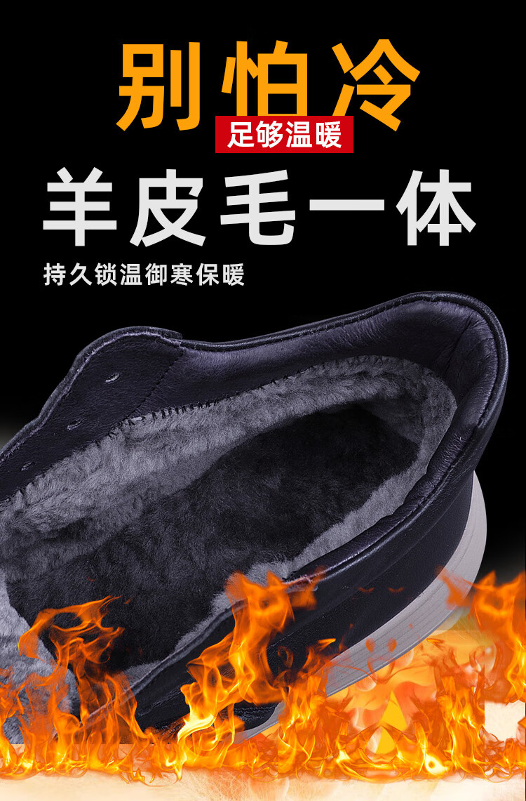 稻草人(MEXICAN)品牌男士真羊毛加绒保暖棉皮鞋头层牛皮羊毛一体雪地靴高帮马丁靴 黑色(羊毛一体) 40