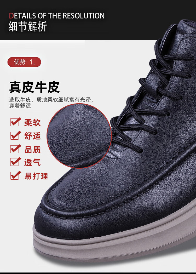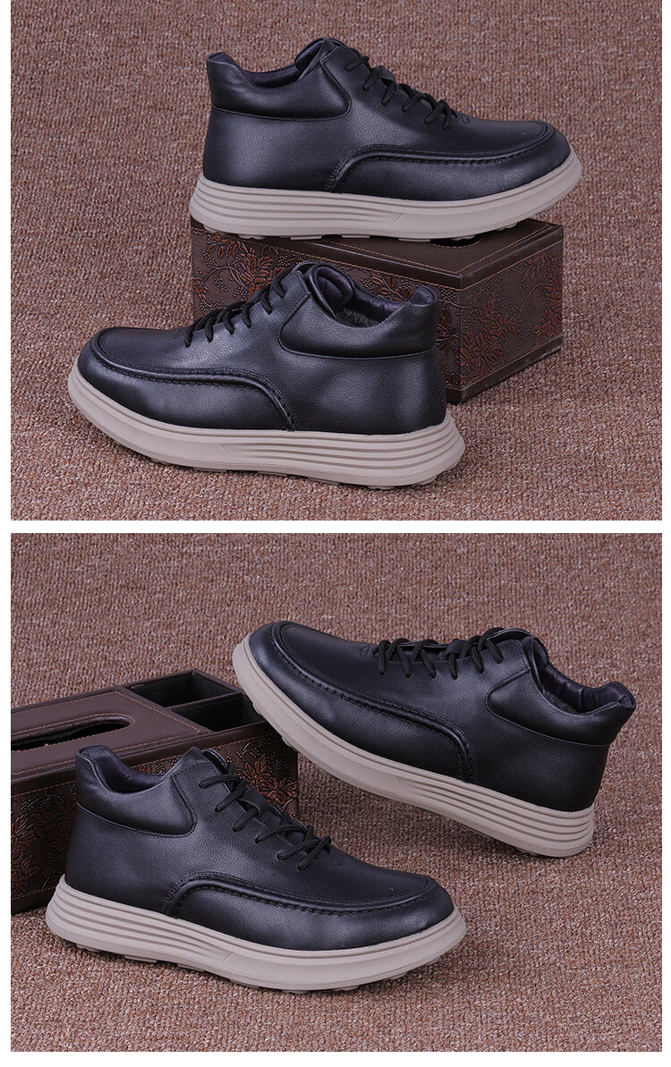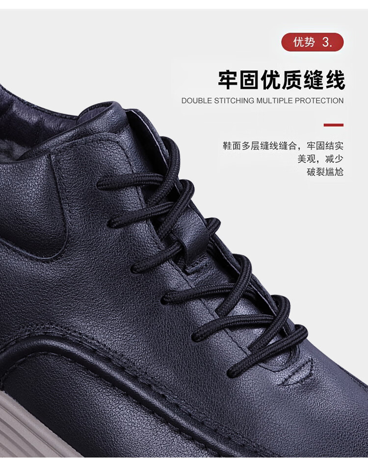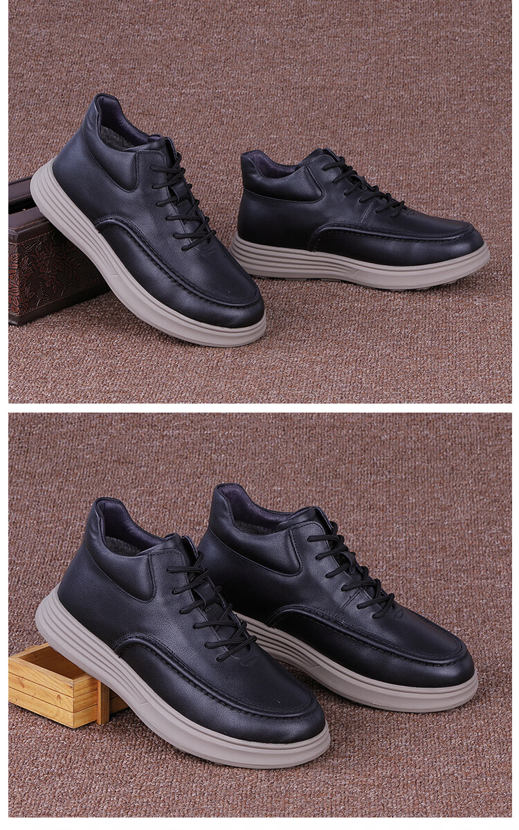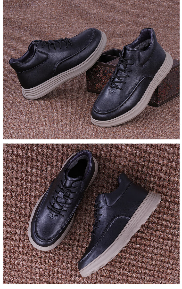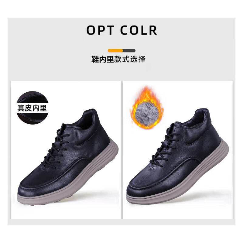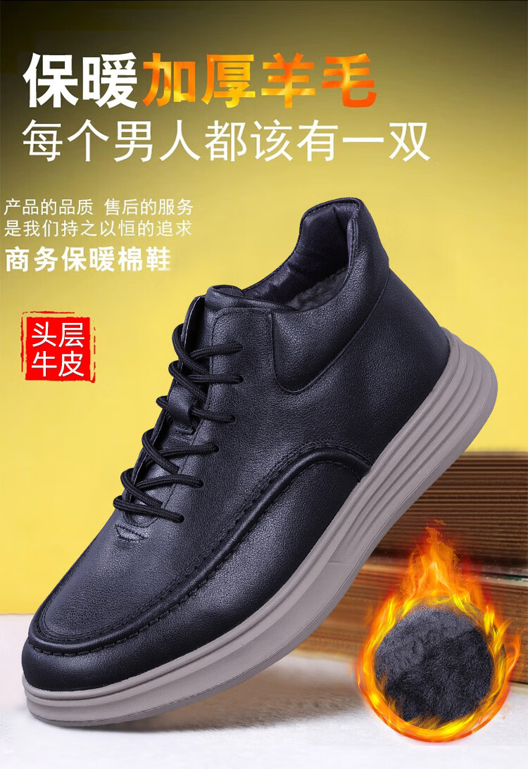 哈森(Harson)牛皮革男鞋秋冬运动皮鞋厚底商务休闲鞋公务通勤健步鞋2025年新款 黑色加绒(6148) 43