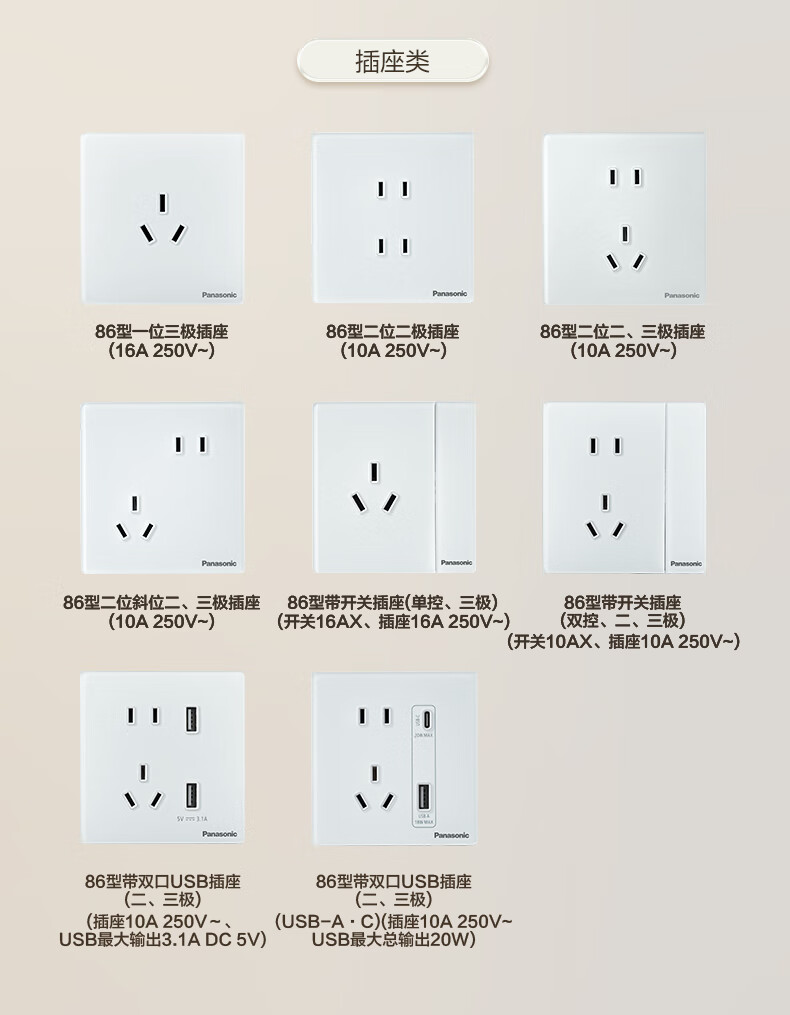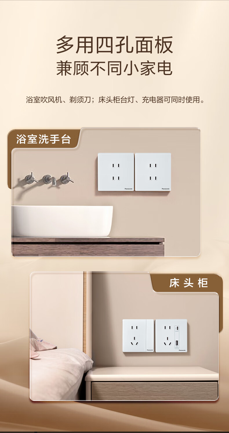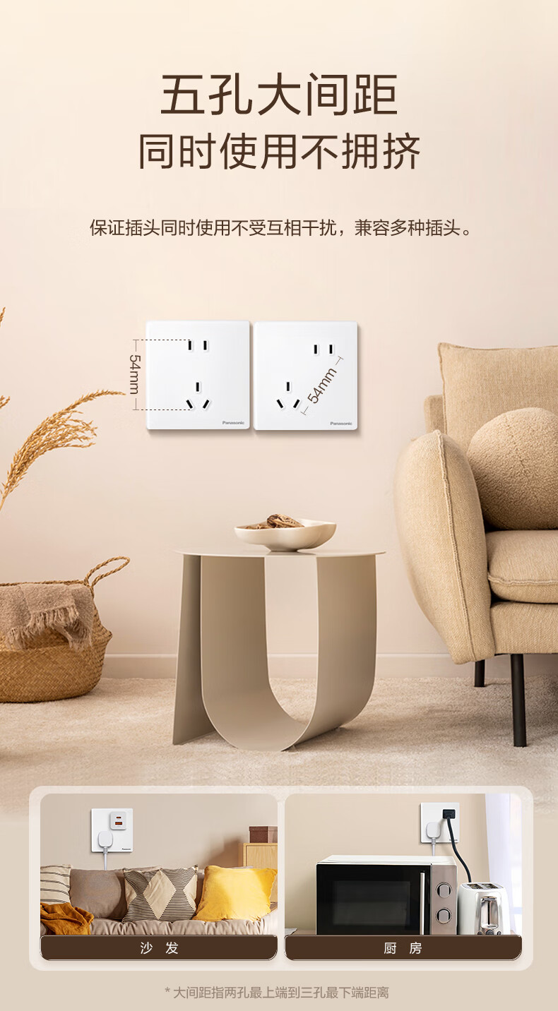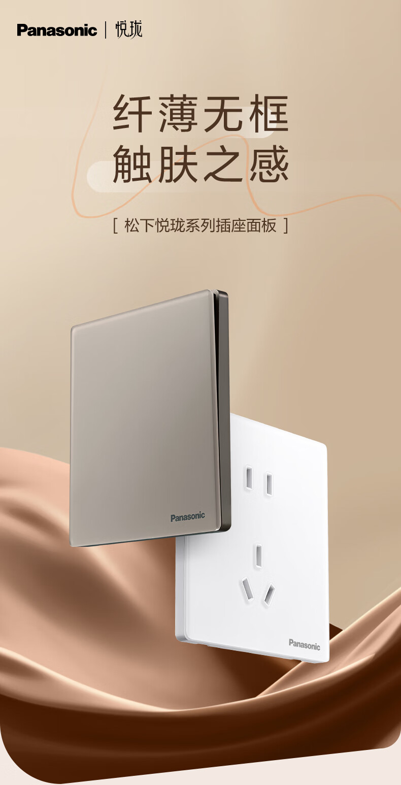 松下插座面板五孔二三插 强电源墙壁插座86型5孔10A 悦珑白色 一开双控五孔插座 WMWE623 插座