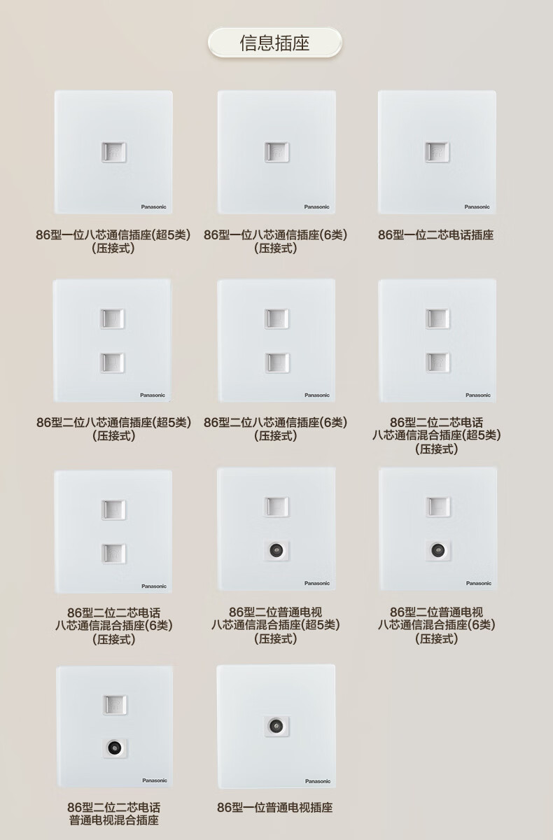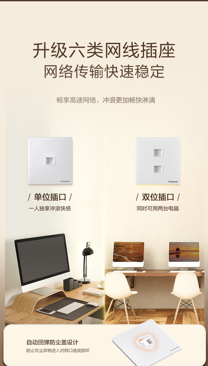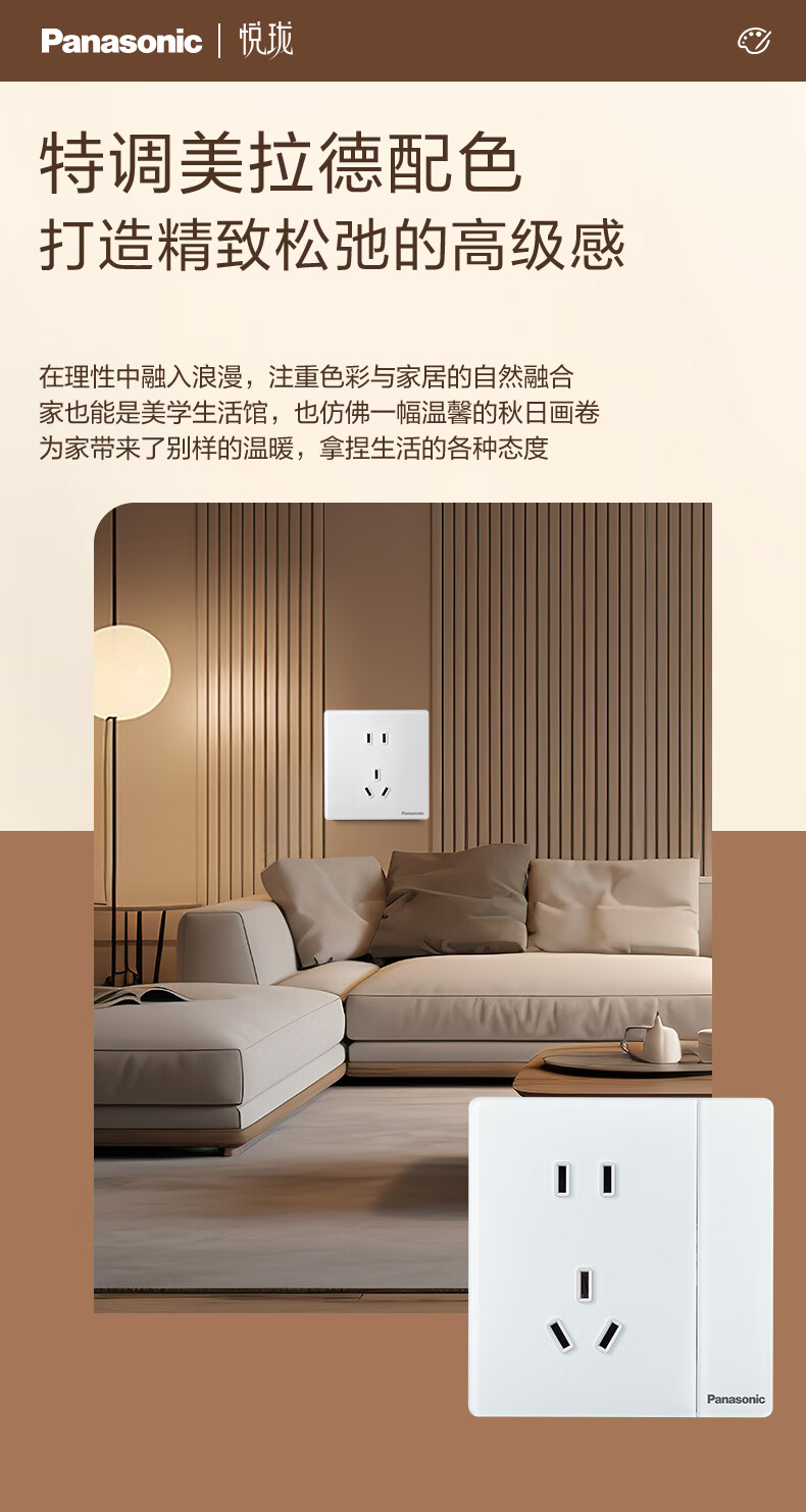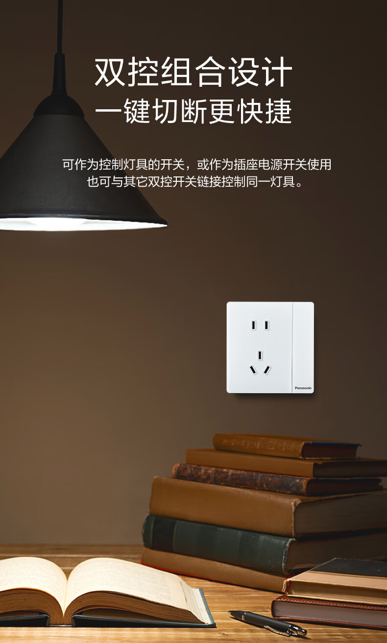 松下插座面板五孔二三插 强电源墙壁插座86型5孔10A 悦珑白色 一开双控五孔插座 WMWE623 插座