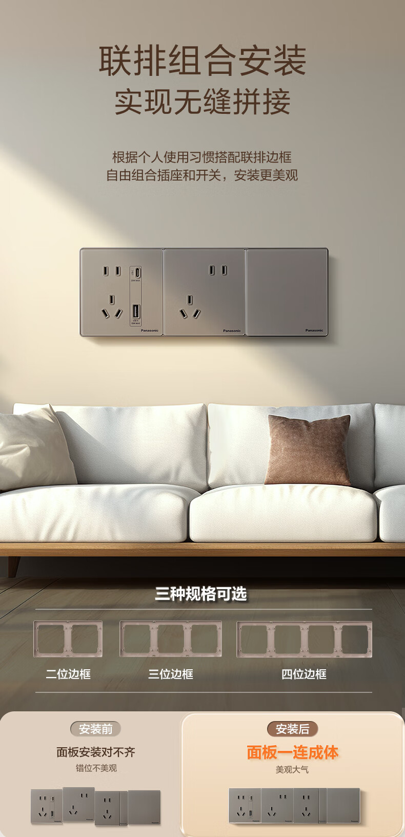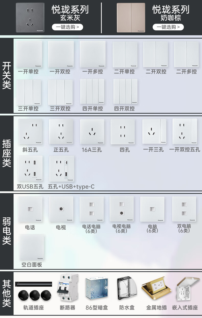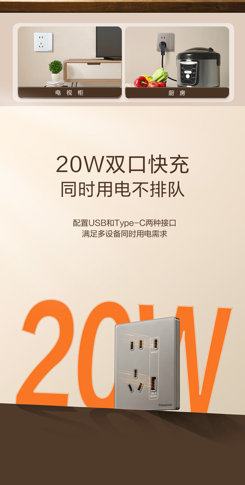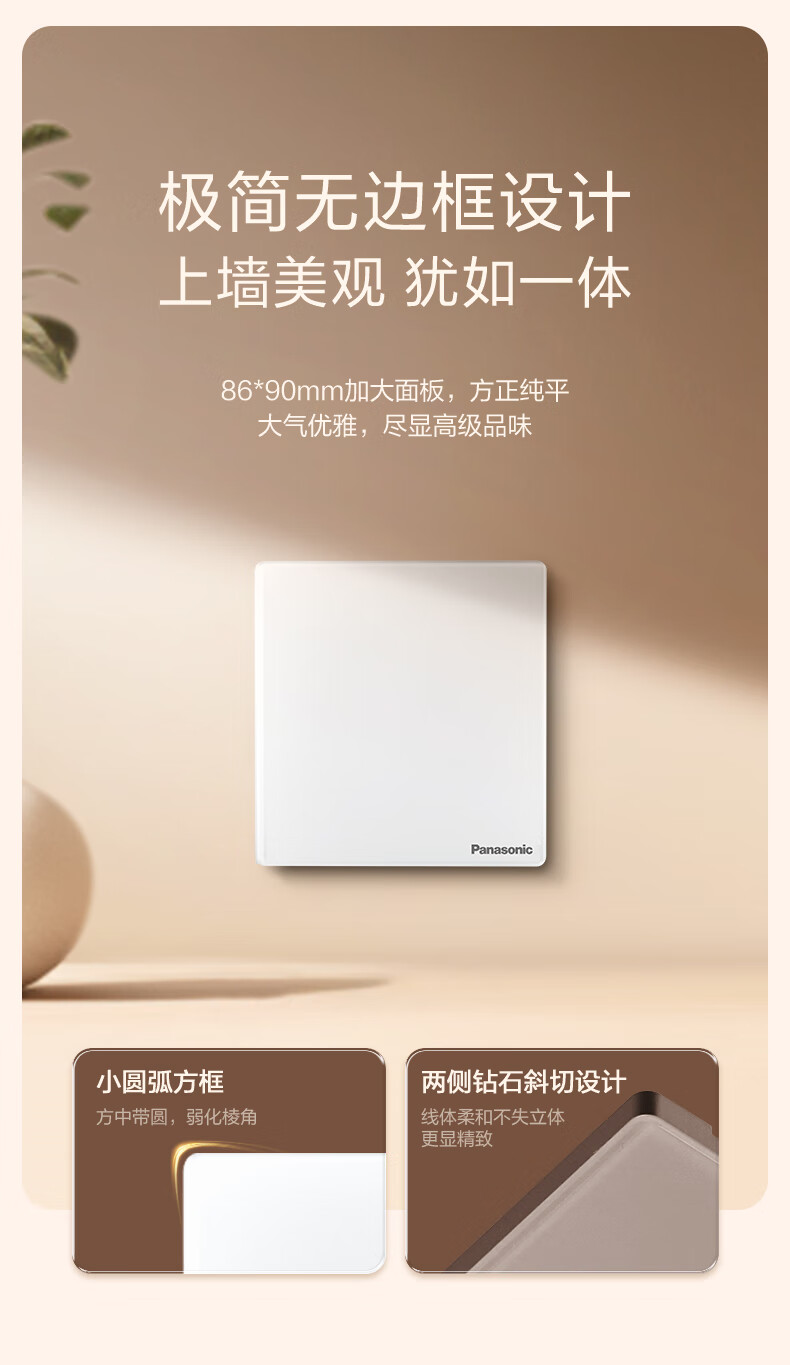 松下插座面板五孔二三插 强电源墙壁插座86型5孔10A 悦珑白色 一开双控五孔插座 WMWE623 插座