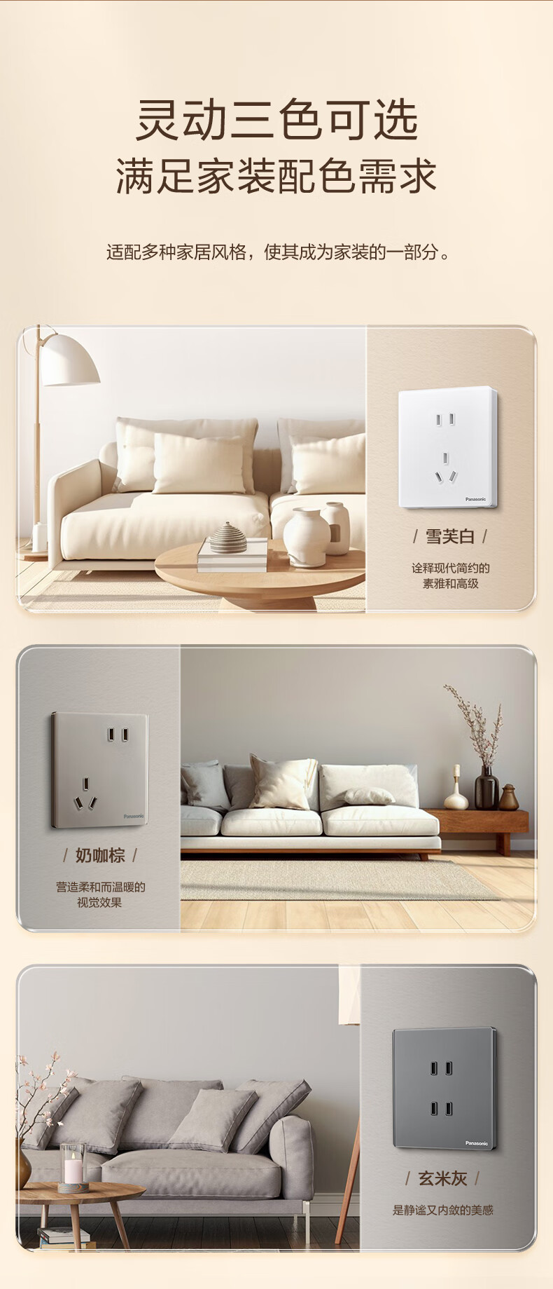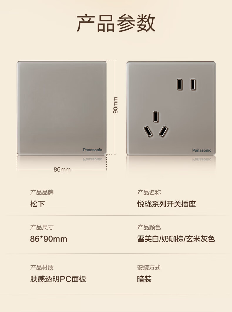 国际电工86型暗装哑光超薄直拨杆开关插座面板可可蛋奶家用奶油风五孔双控 五孔插座【10只装】