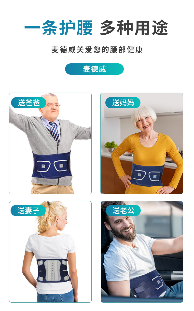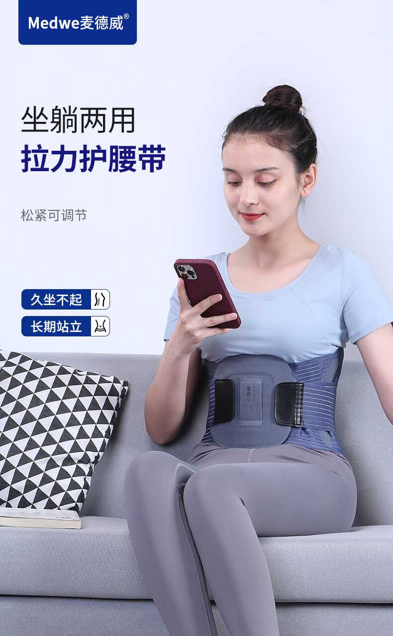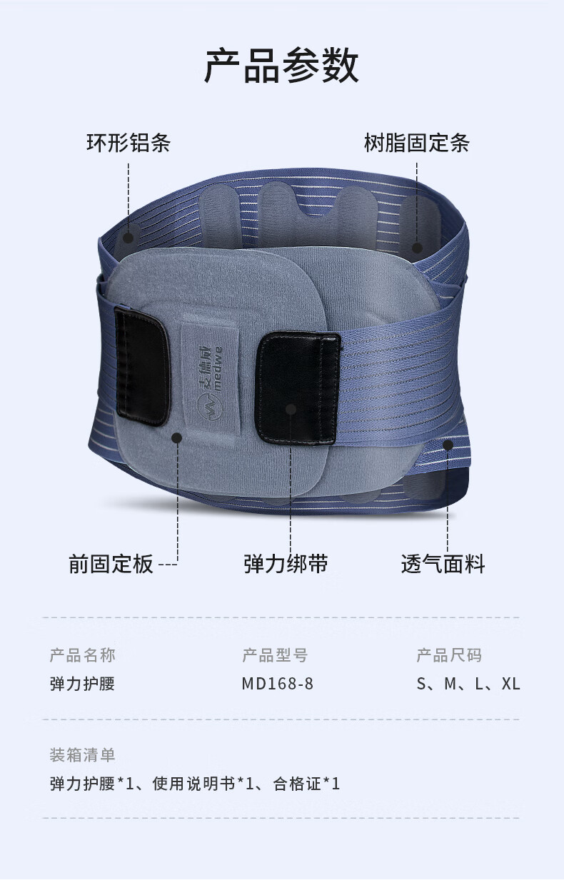 麦德威(medwe)医用护腰带加热腰护腰带暖腰带腰托护腰固定老人男女夏季通用护具 蓝色护腰带 M(2.3尺~2.6尺)