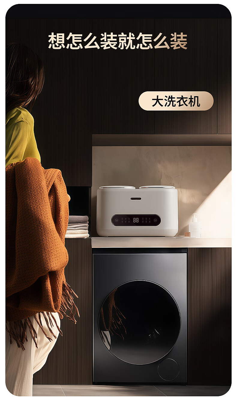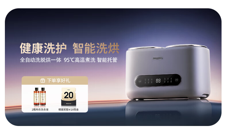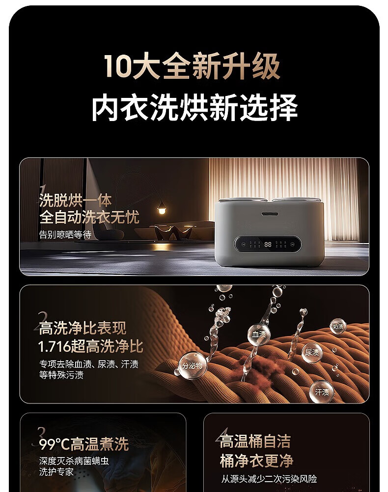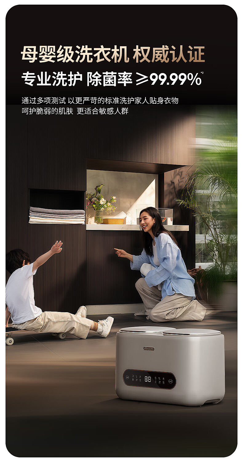拜飞【限时补贴】全自动内衣洗衣机内裤袜子清洗机高温煮洗烘干脱水一体机母婴大容量家用小型洗衣机 双仓烘干款【不锈钢内桶+UV抑菌+煮洗烘干】