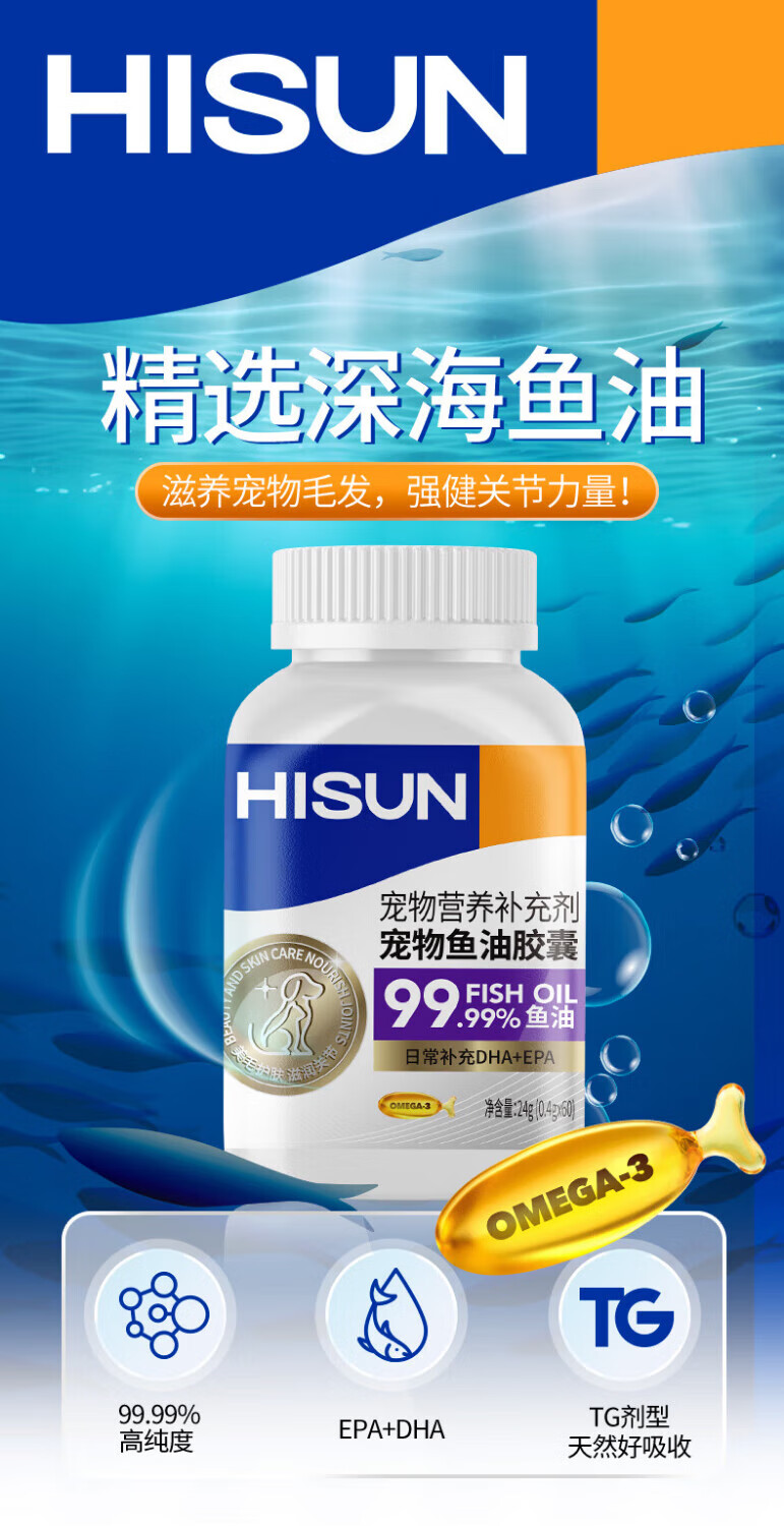 海正动保(HISUN)猫咪鱼油胶囊60粒狗狗通用