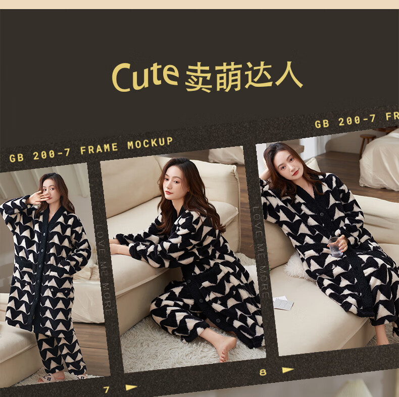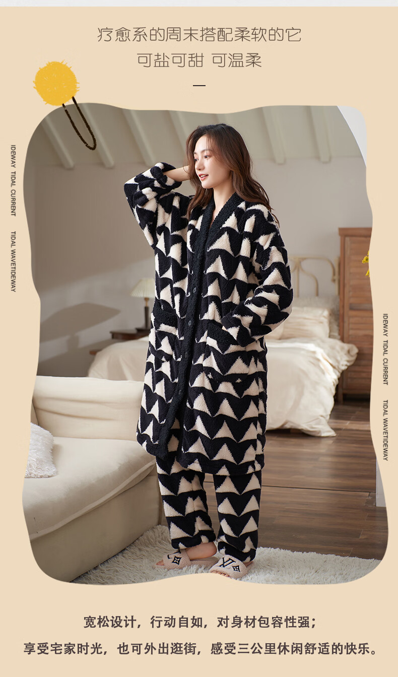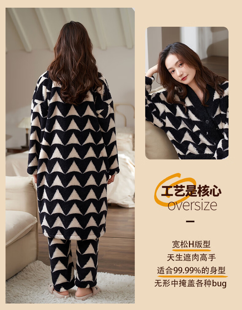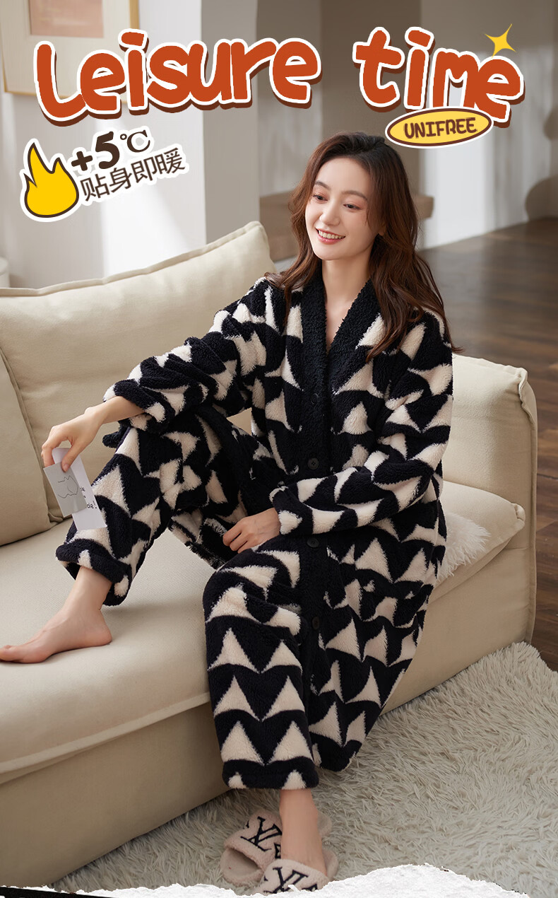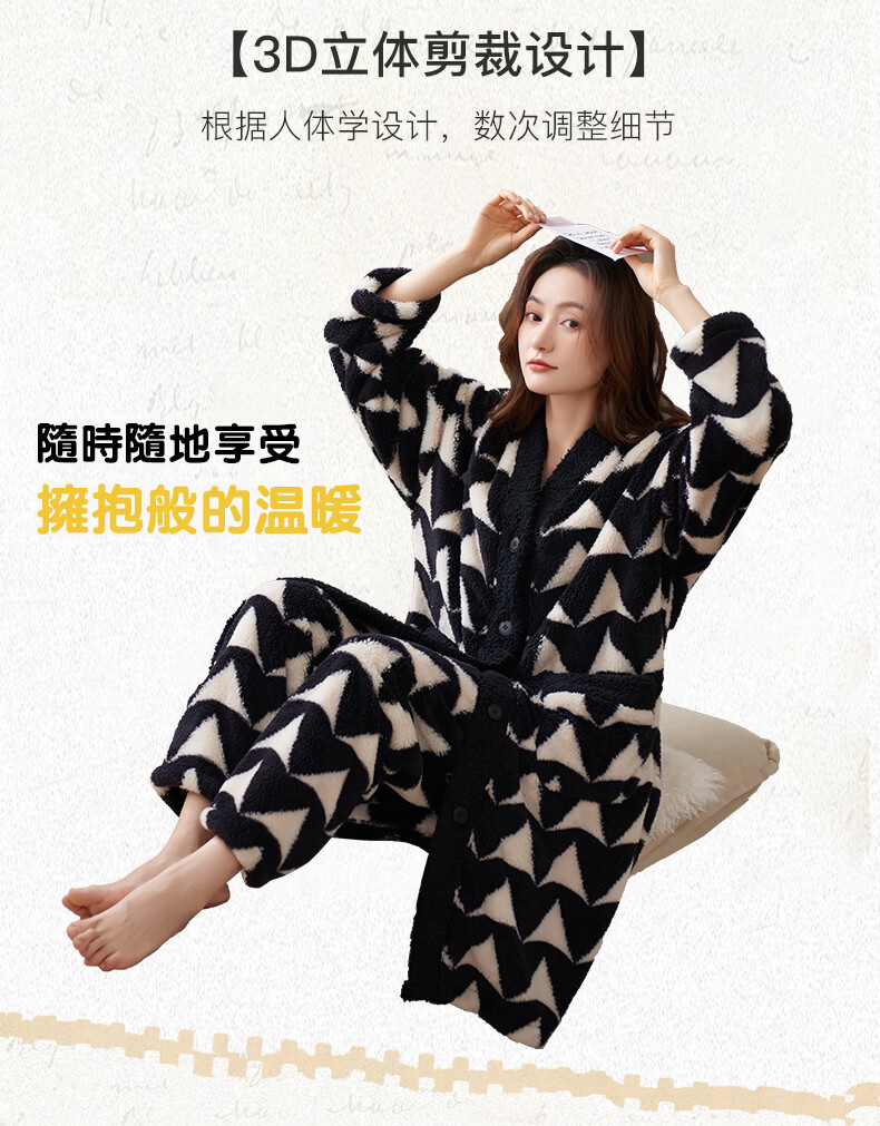 芬腾可安(FENTENGCARE)【N】情侣睡衣秋冬款珊瑚绒冬季女法兰绒加绒加厚 M61052 3XL